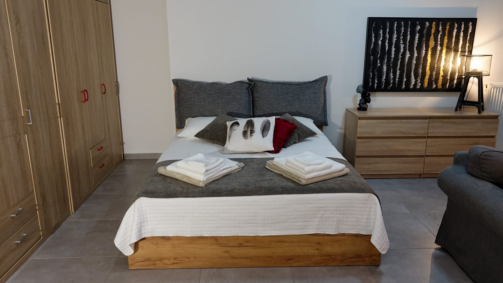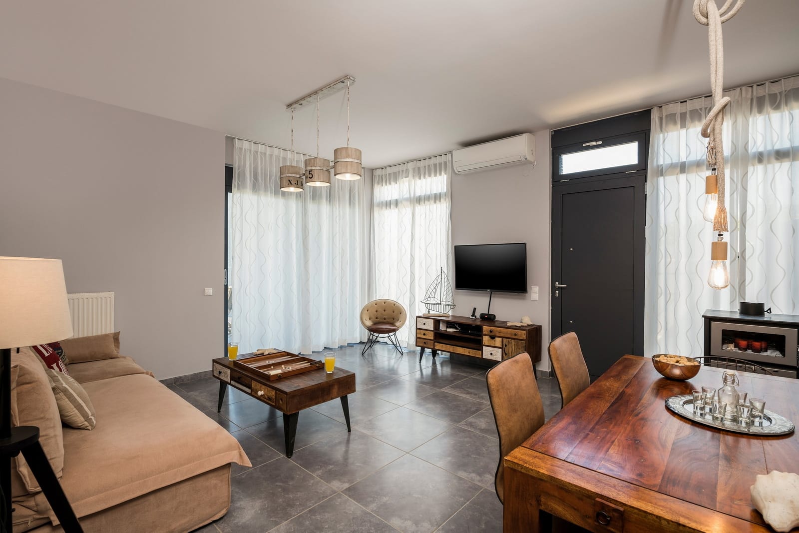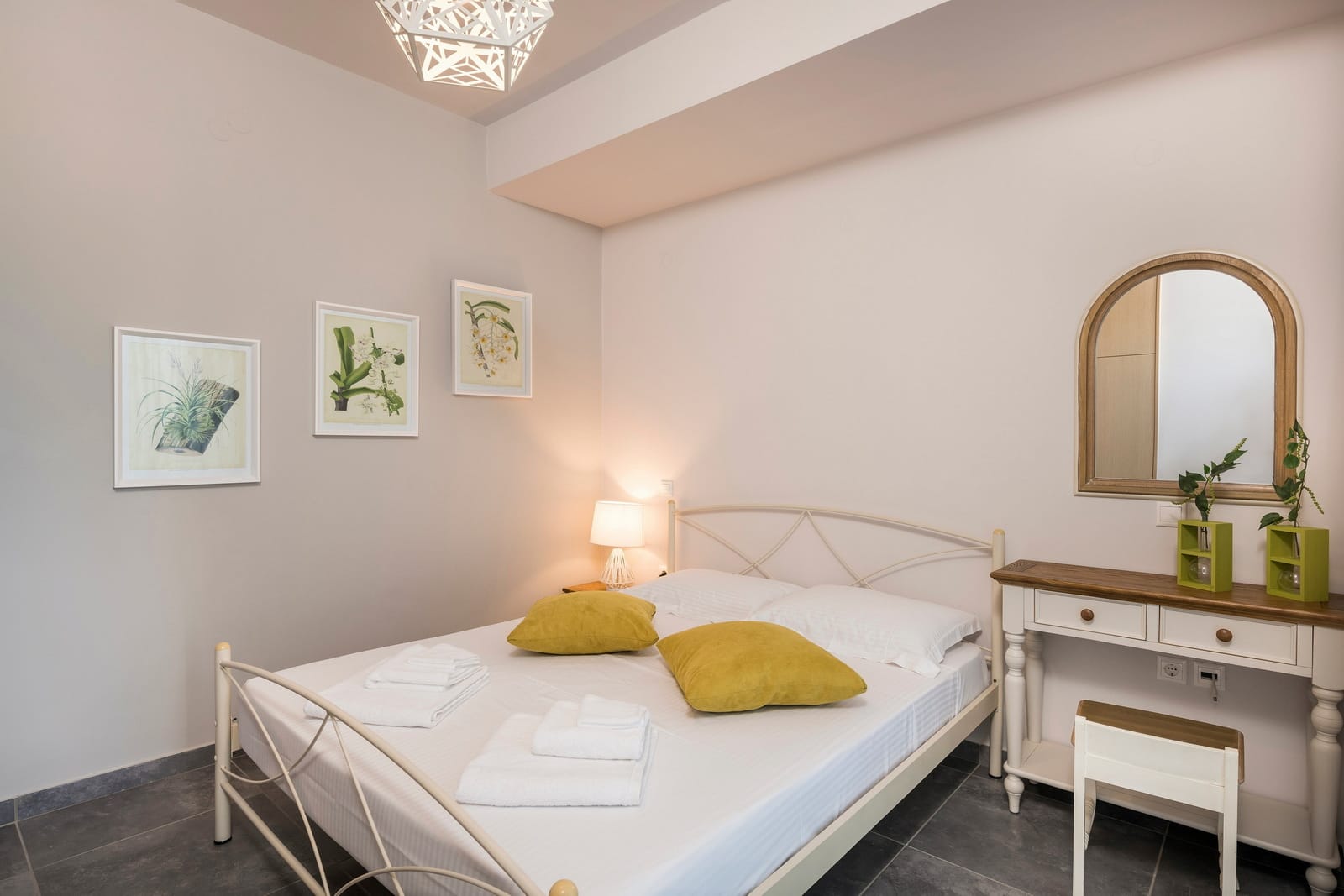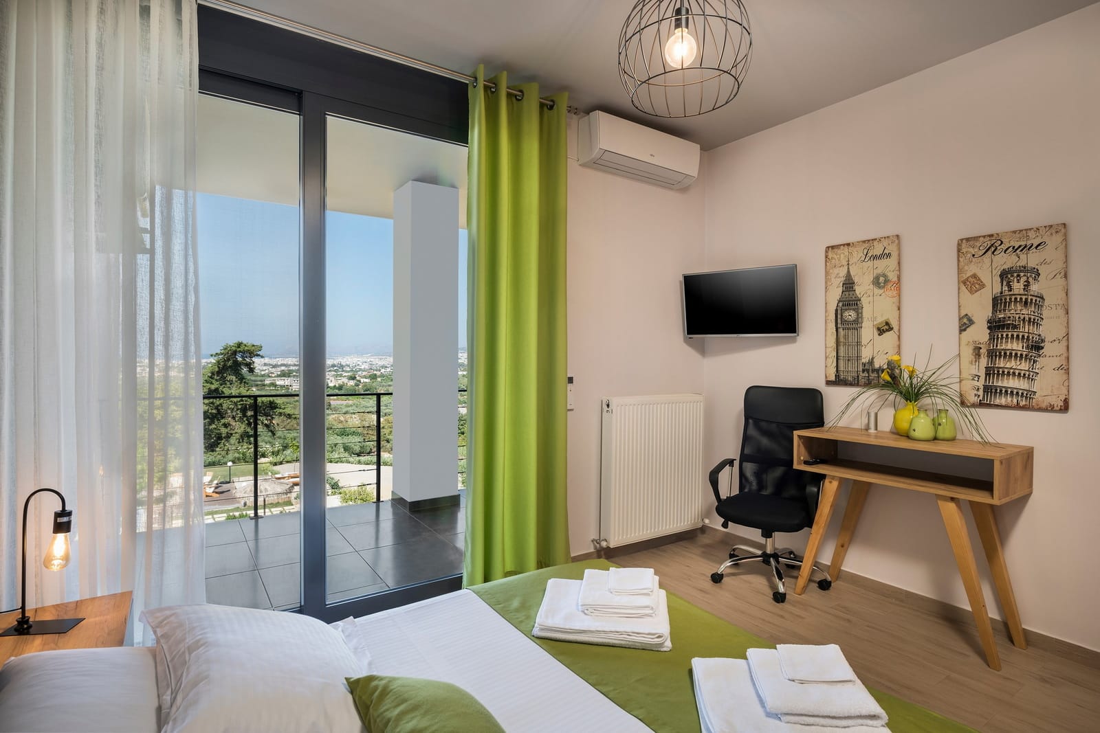 Olivenest Villa is located in Perivolia village, very close to the historic city of Chania (6.1 km), at an altitude of 90 m., In the foothills of the White Mountains, overlooking the city and the Cretan sea. Numerous shops for the daily supplies are located close to the villa. In the picturesque alleys of Chania you can find many souvenir shops, jewelry shops and atmospheric restaurant. Olivenest Villa is found in a strategic location to explore Western Crete’s attractions and more than 50 beautiful beaches. The closest organized beach Nea Chora is only 10 minutes ’drive, but you can head west to discover the turquoise-watered and pink-colored beaches of Falassarna, Balos lagoon and Elafonissi. Visit Paleochora for its six beautiful beaches and amazing local food to taste in tavernas. Samaria and Irini gorges are every nature lovers ’dream in Crete. The view from the archaeological site of Aptera is fantastic, from where you can see the entire gulf of Souda and part of Apokoronas.