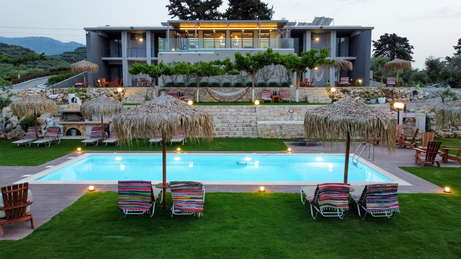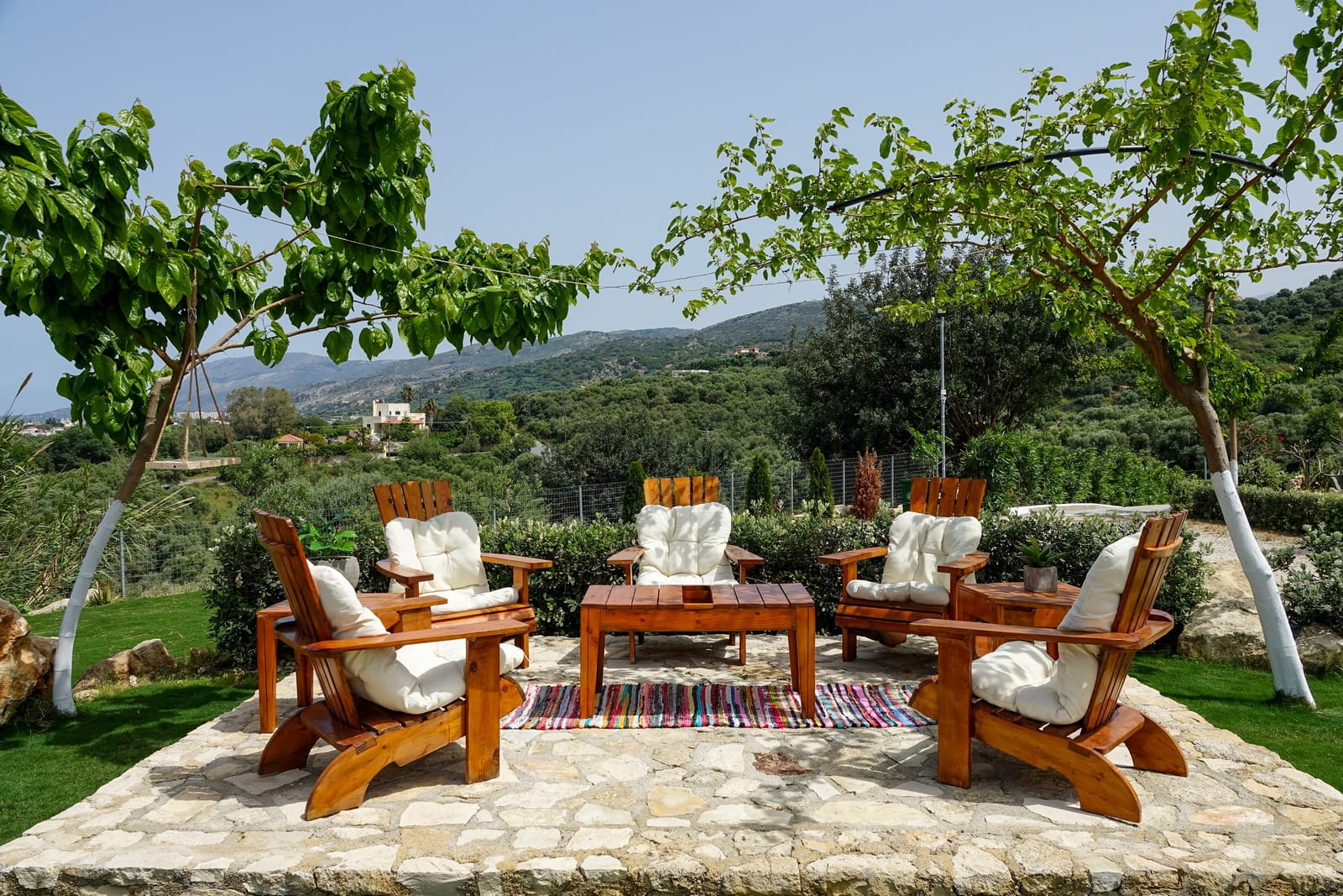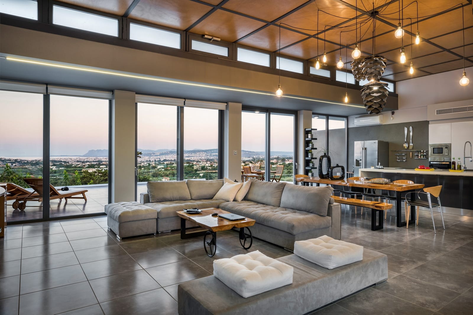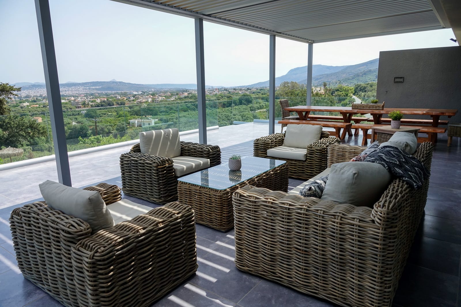 A delightful 7-bedroom vacation villa that embodies genuine Cretan flavor and stunning views, combining 3 separate holiday homes, 3 kitchens and 3 living spaces, ideal to book for your annual family vacation in Southern Europe, very close to cosmopolitan Chania, in a noiseless area of Western Crete.