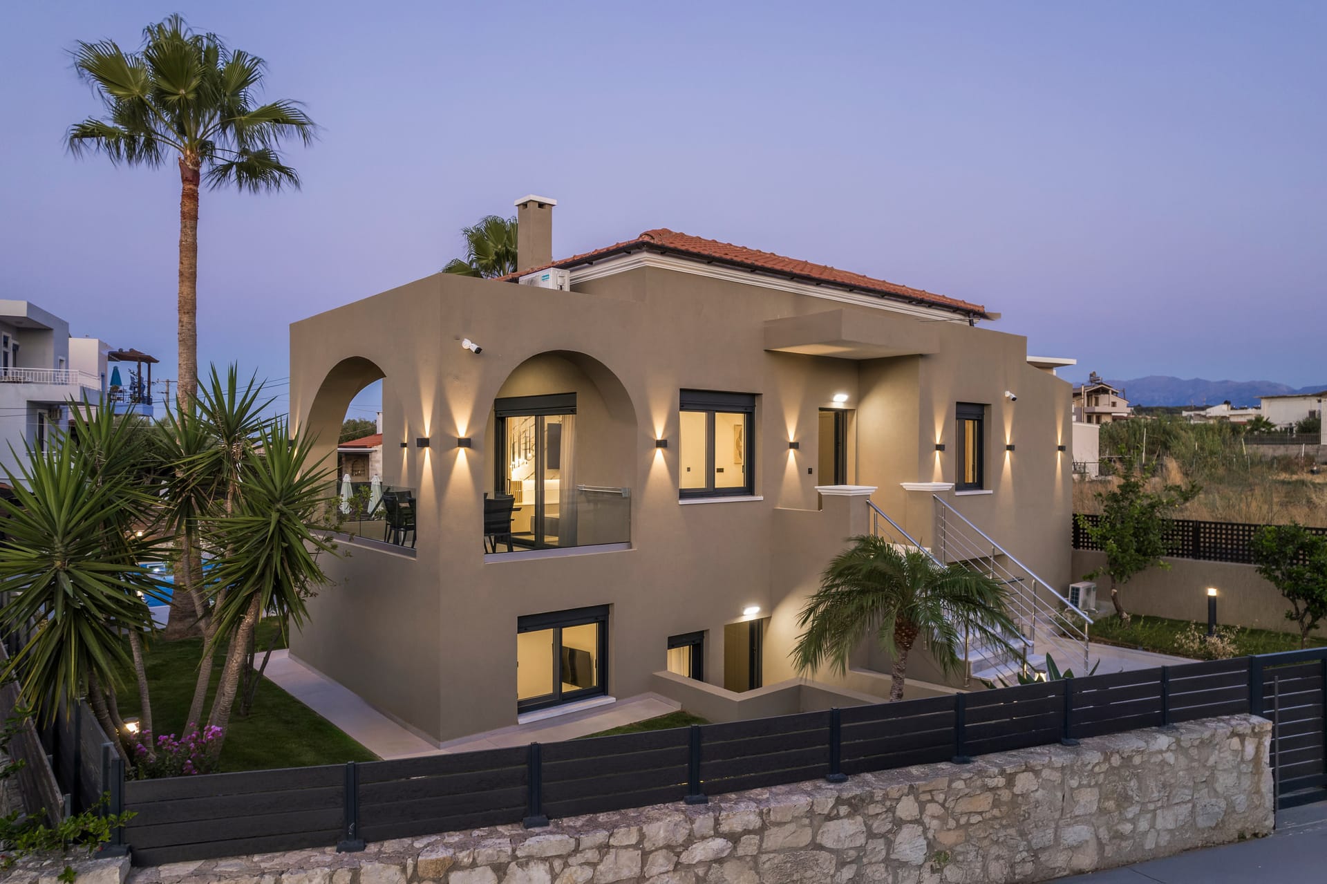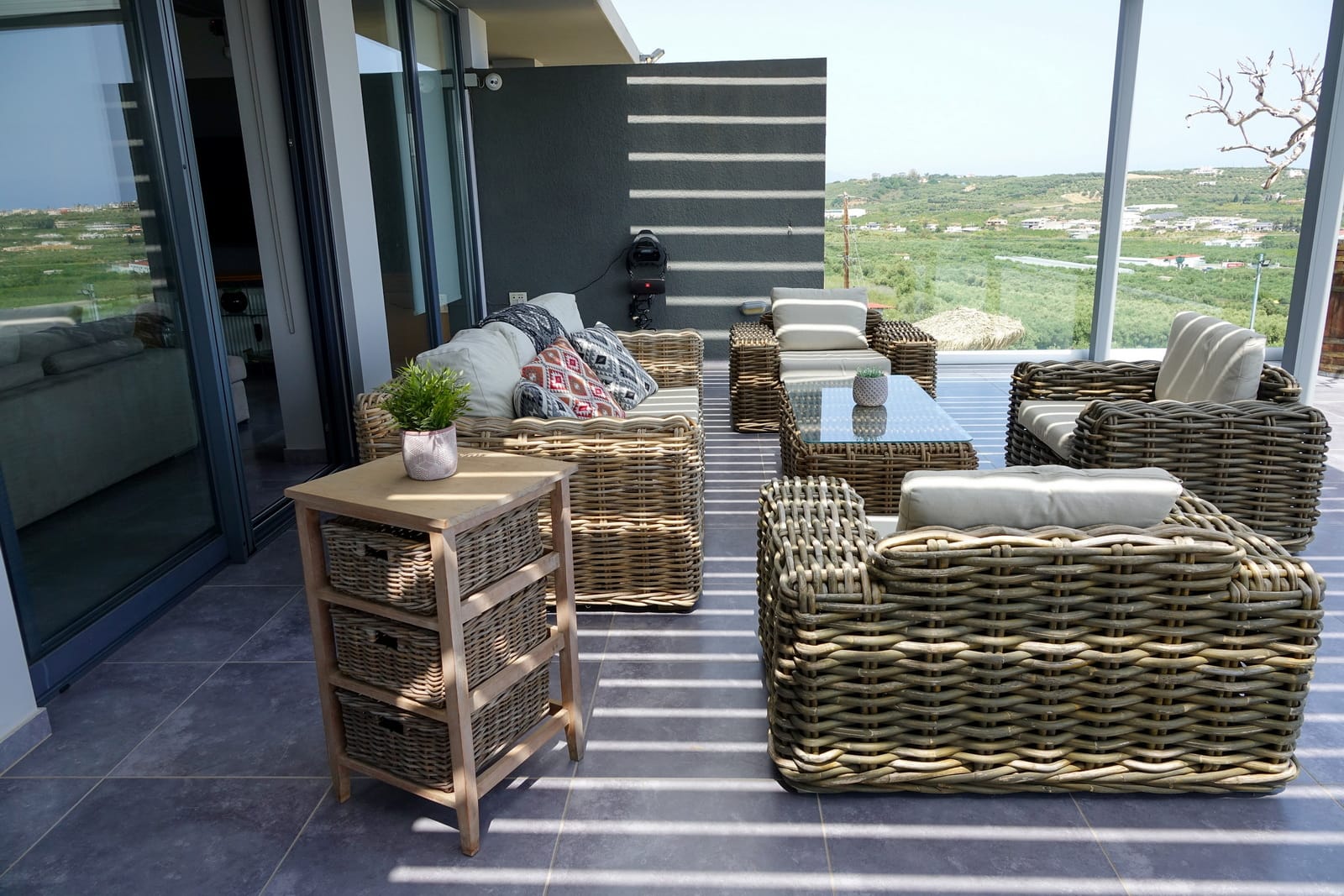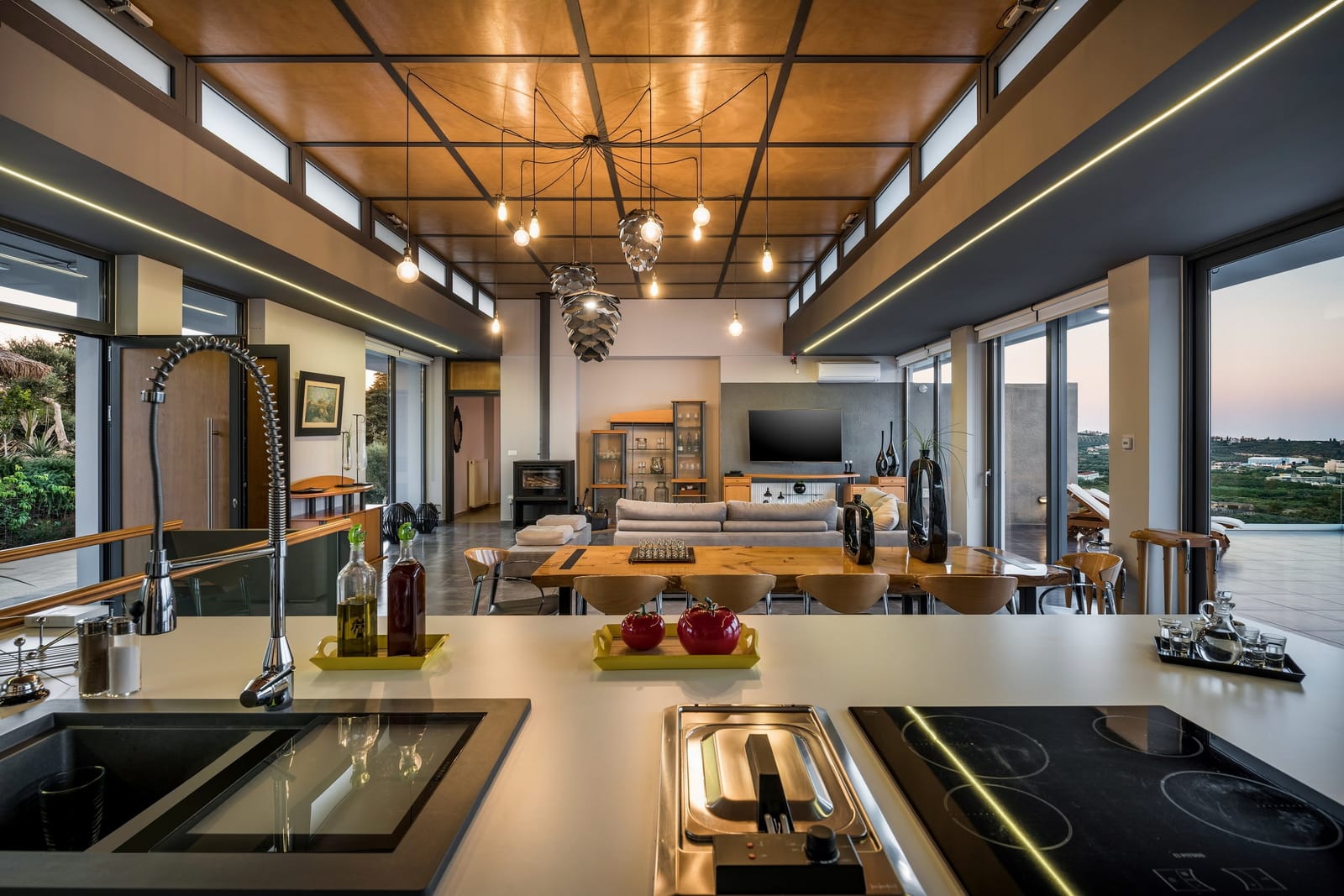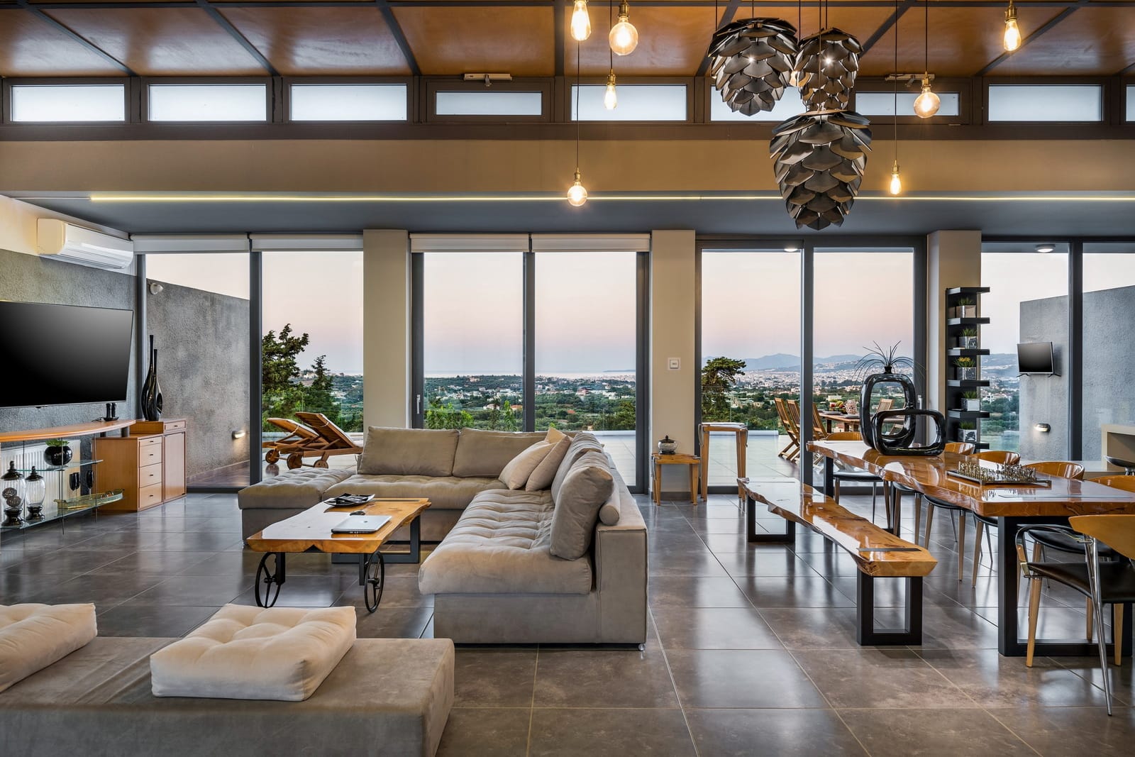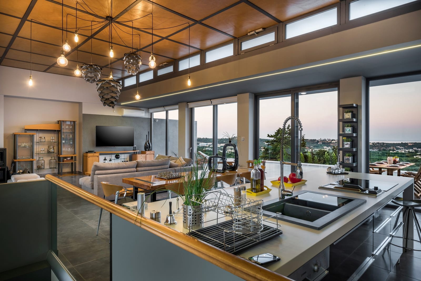 A delightful 7-bedroom vacation villa that embodies genuine Cretan flavor and stunning views, combining 3 separate holiday homes, 3 kitchens and 3 living spaces, ideal to book for your annual family vacation in Southern Europe, very close to cosmopolitan Chania, in a noiseless area of Western Crete.