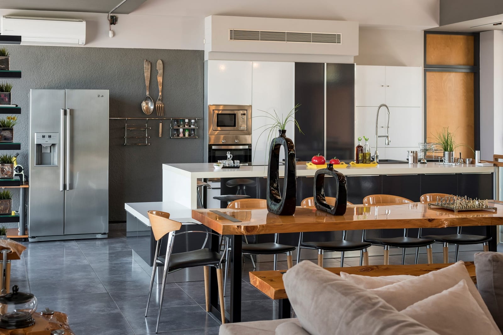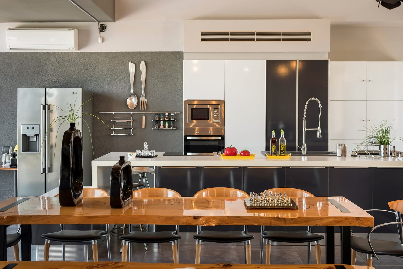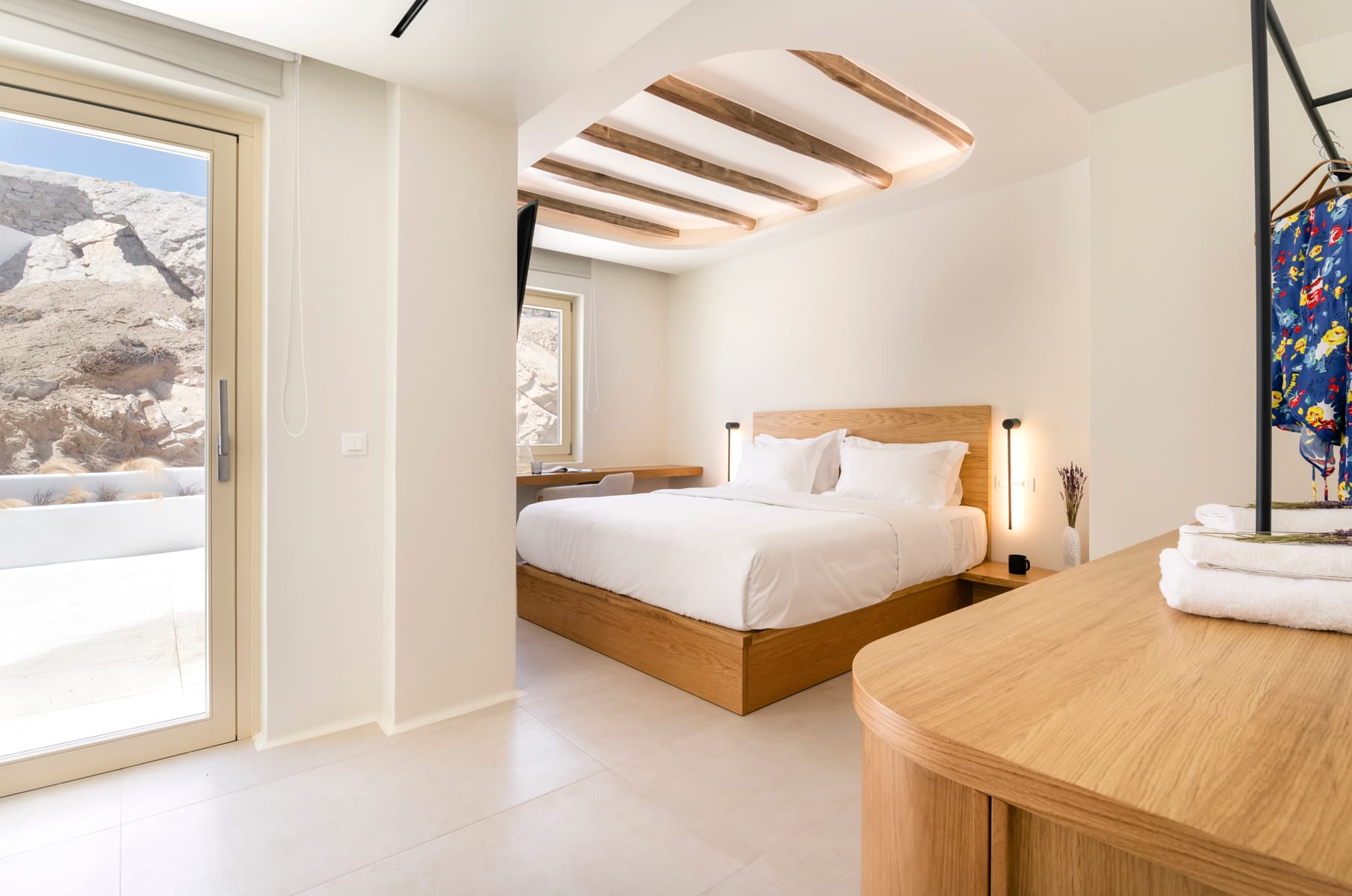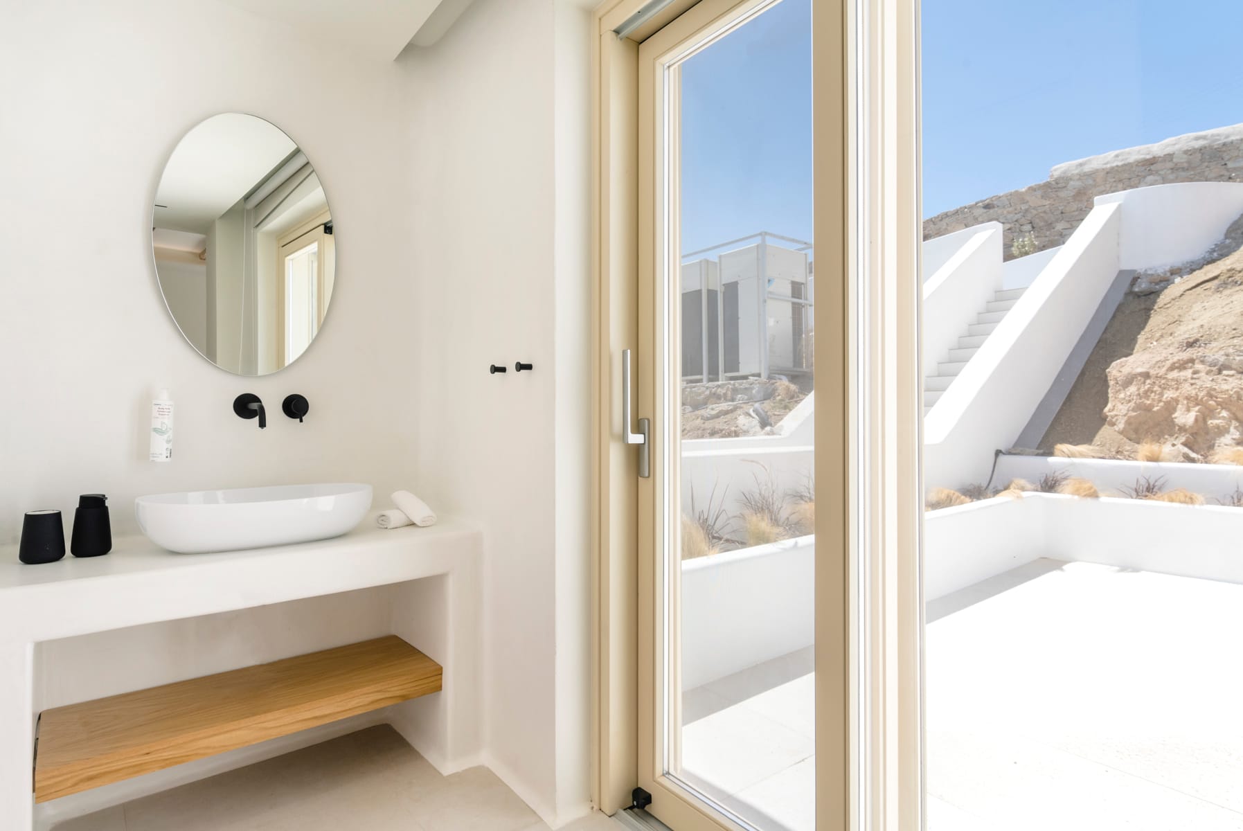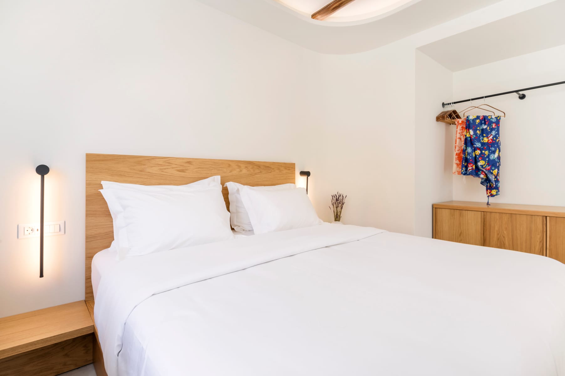 Olivenest Villa presents a picturesque location on the outskirts of Chania, for a family gathering or special occasion with the capacity to host 16 guests, and is outfitted with tasteful furnishing and modern comforts you require for a luxury holiday in Crete. Olivenest villa boasts a 500 m2 luxury living space, which is divided into a central part and 2 wings, functioning perfectly as 3 independent homes. There is an open plan living area with a terrace, plus a dining area and an ample kitchen with fantastic views over the pool and a centuries ’old olive tree. Outdoors, the glossy and comfort atmosphere is well-kept including multiple terraces, a private heated pool and lawn gardens with a BBQ. A small lawned area around the pool offers ample space for sunbeds surrounded by nature that will add value to your special moments. The view from the indoor and terrace is simply stunning, and the living areas are thoughtfully designed to offer maximum privacy and comfort; Olivenest Villa is spit in 3 separate and independent villas; the Royal floor (no stairs), with 3 bedrooms, 1 kitchen, 2 bathrooms, to accommodate 6 guests, the Imperial West Ground floor (no stairs), with 3 bedrooms, 1 kitchen, 1 bathroom to host 6 people and the Imperial East Ground floor (no stairs), with 2 bedrooms, 1 kitchen, 2 bathrooms, to host 4. Sink into the contemporary sofas in the central living room, which is laid out to the highest standards, cozy up to the kitchen’s facilities to prepare food and gather around the monastery type dining table for a special Greek meal with family or friends. You can sit back, relax and take in this fabulous setting from the massive balcony, or dive into the swimming pool and savor a vacation that allows you to connect with yourself at a leisurely pace.
