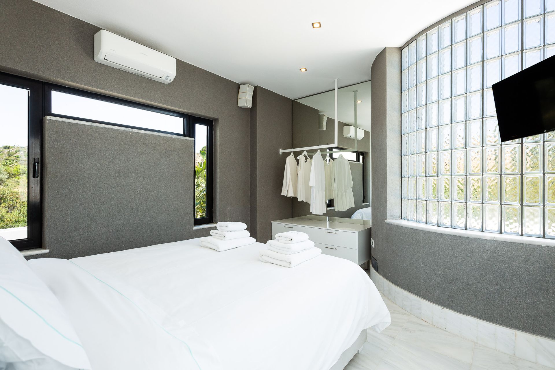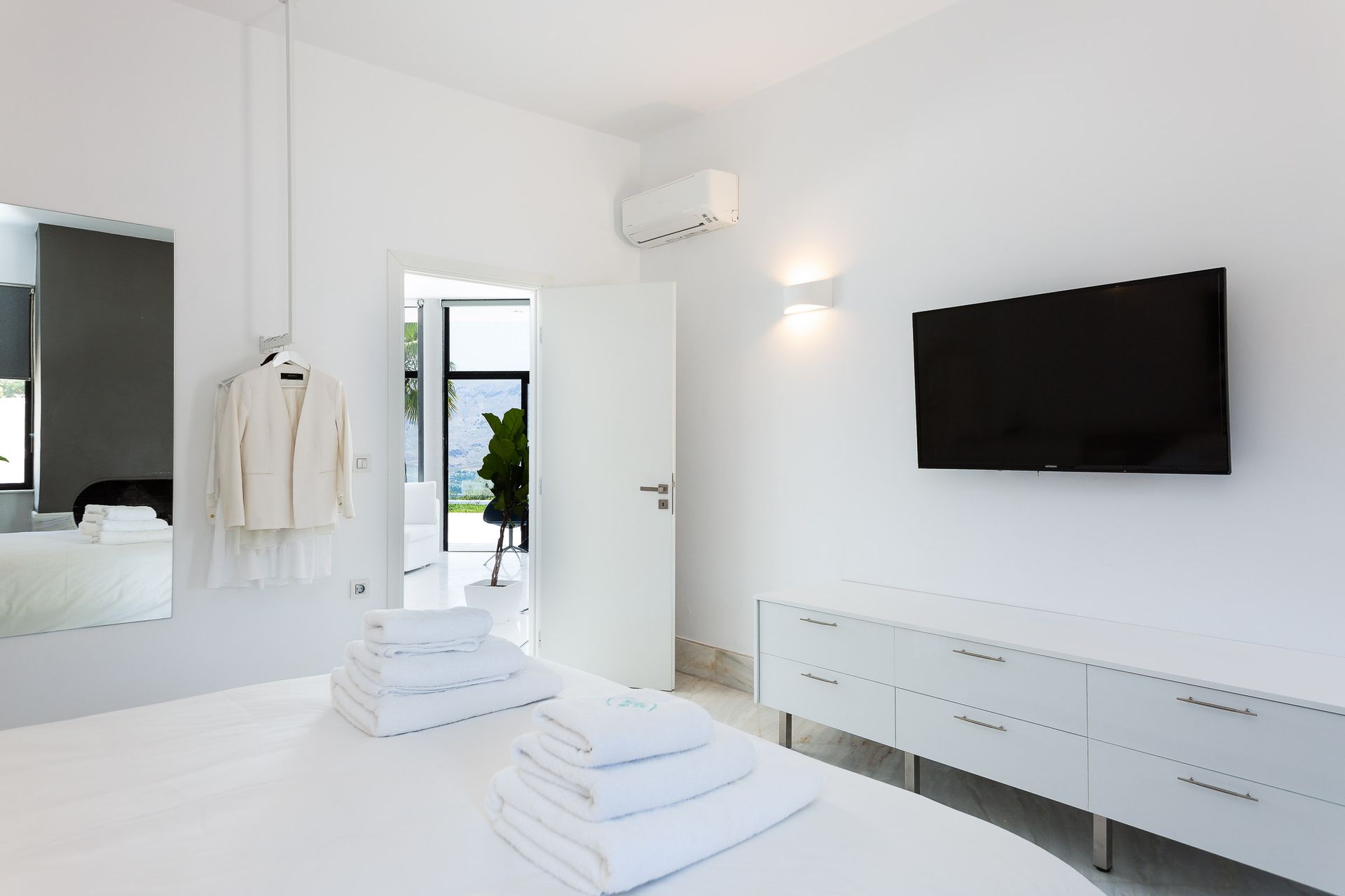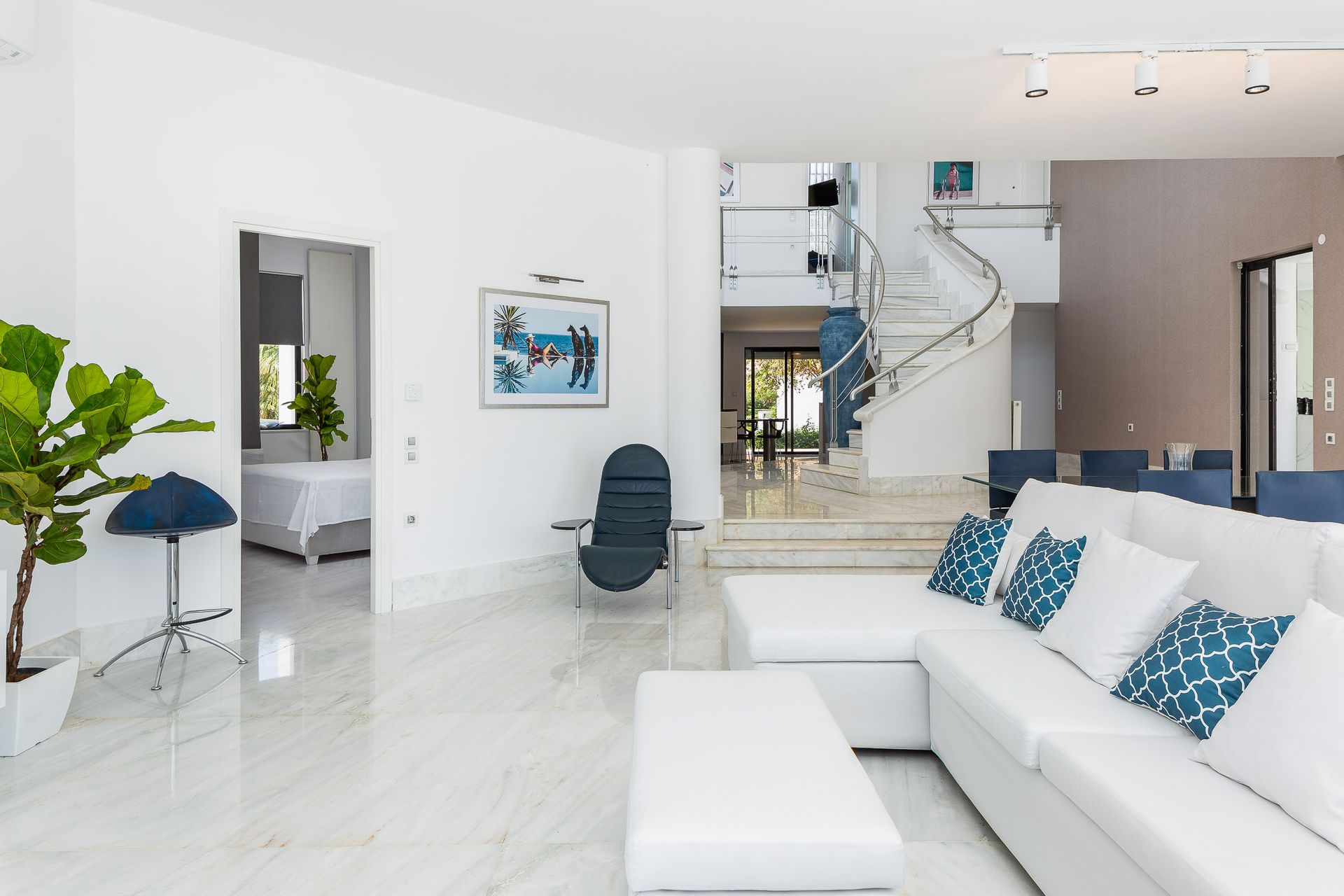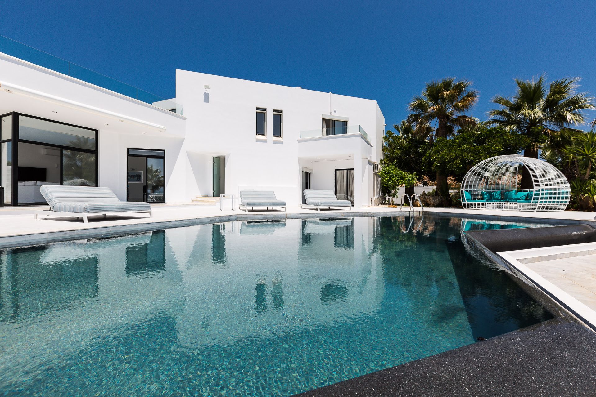 Epic & spectacular in every way vacation villa offering sensational blue sea and mountain vistas from the edge of a secluded hill-top with stylish finish, white interiors and sleek exterior spaces, also capable of hosting memorable wedding events. The concept was to design a pearly spacious luxury villa with exquisite architecture that create the feeling that guests are on board, facing the calm waters of the Souda Bay.