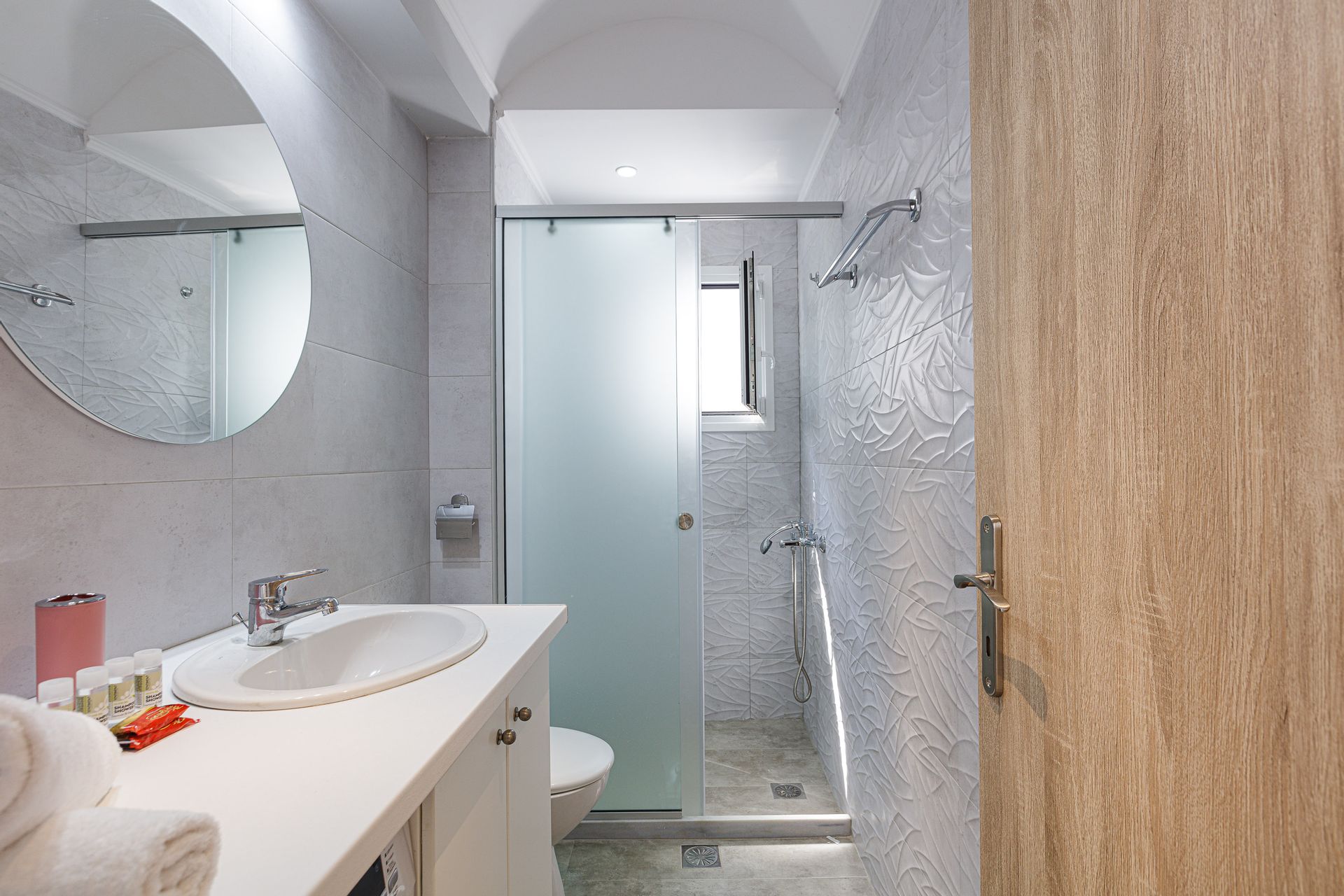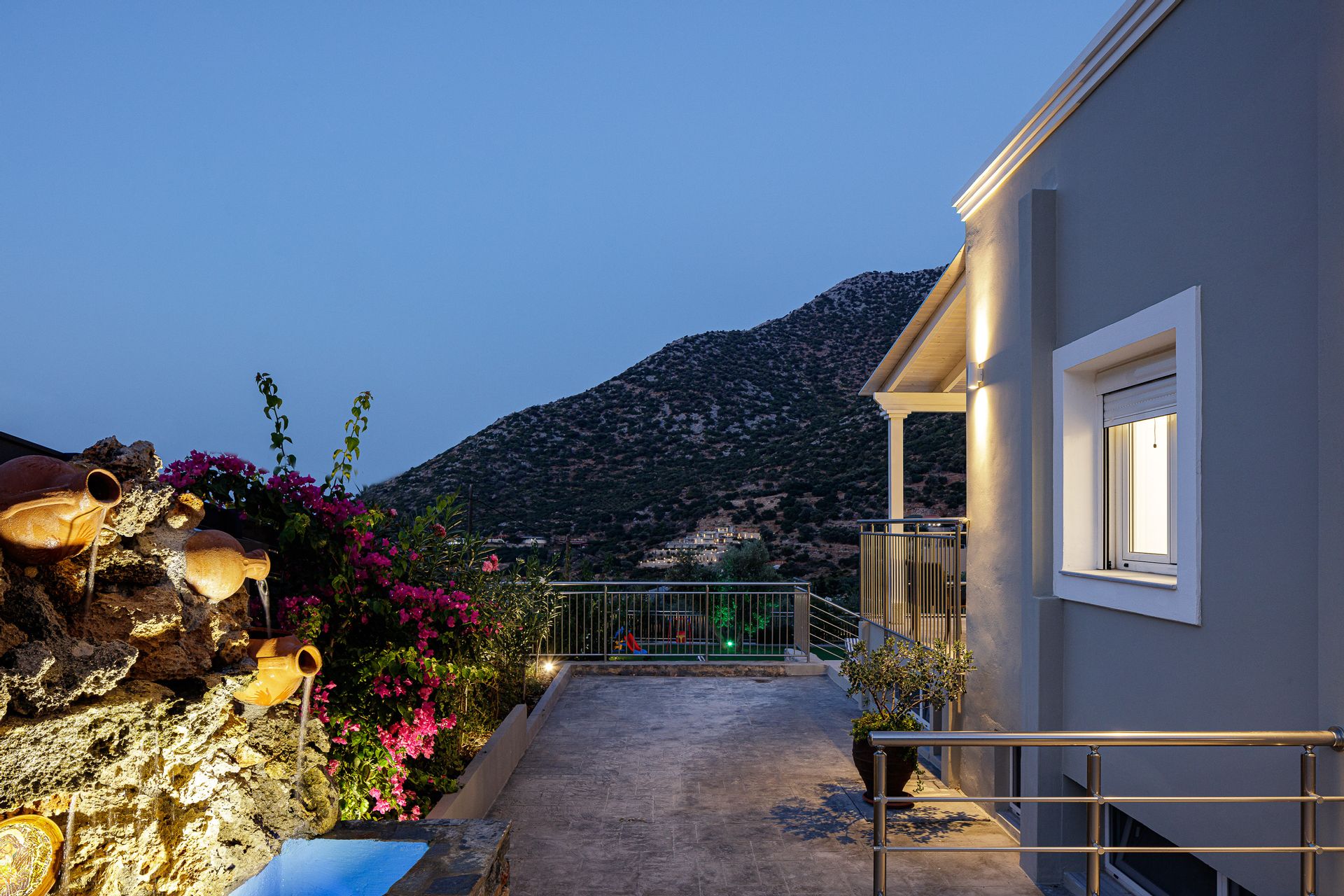 The spacious outdoor area is host to a swimming pool in a restful garden setting, the ideal place for families to spend some quality time while on vacation in Crete. There is a large outdoor entertainment area with a gas grill BBQ and a dining area, as well as casual seating and a children’s play area. Additionally, there is a football table for guests’ enjoyment. There is parking space for 2 cars at the Salmostro holiday villa.