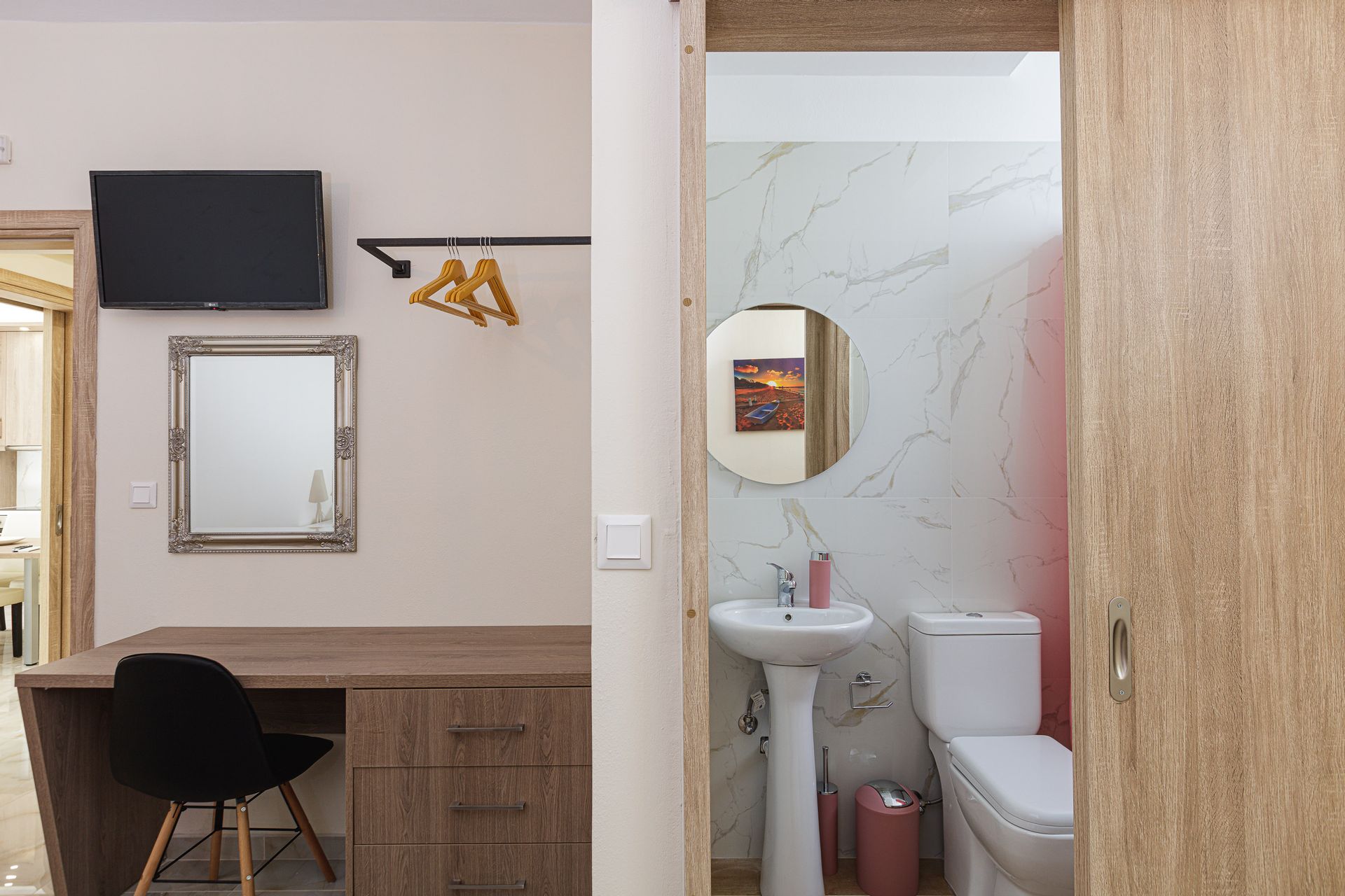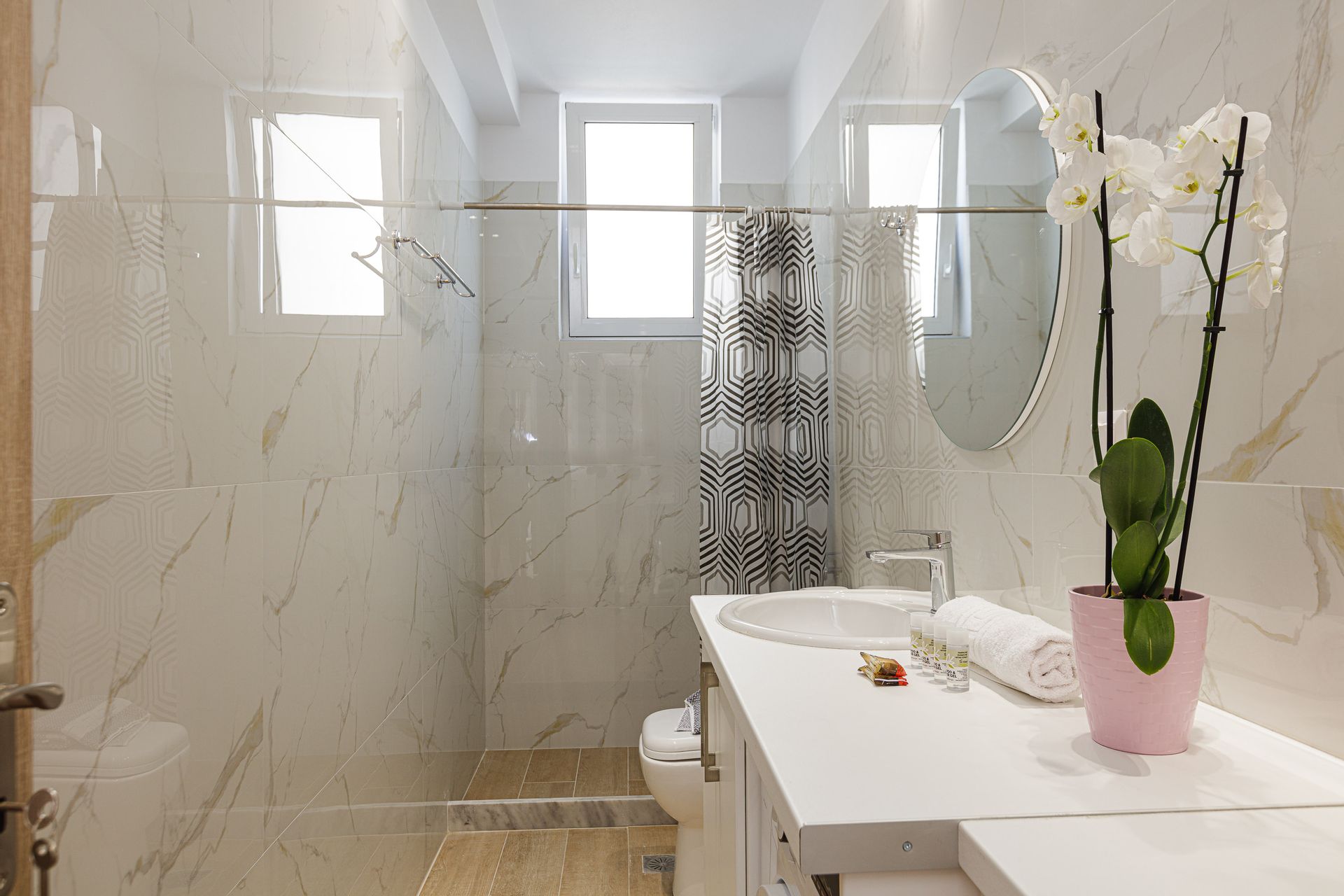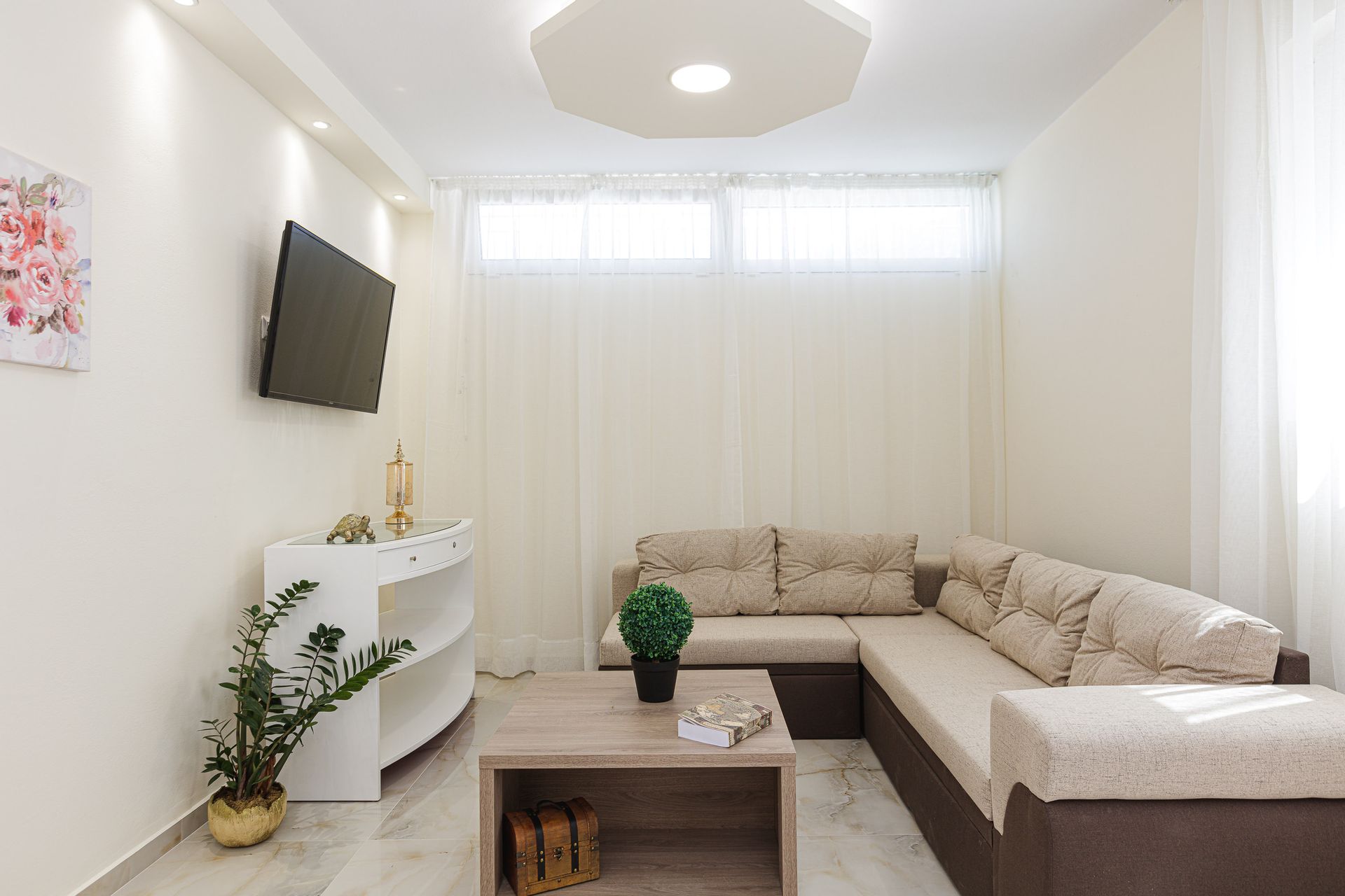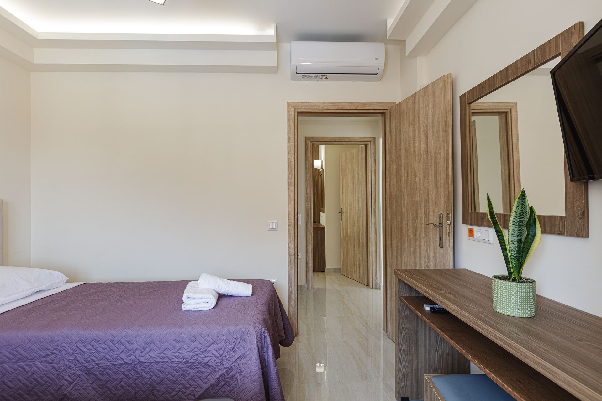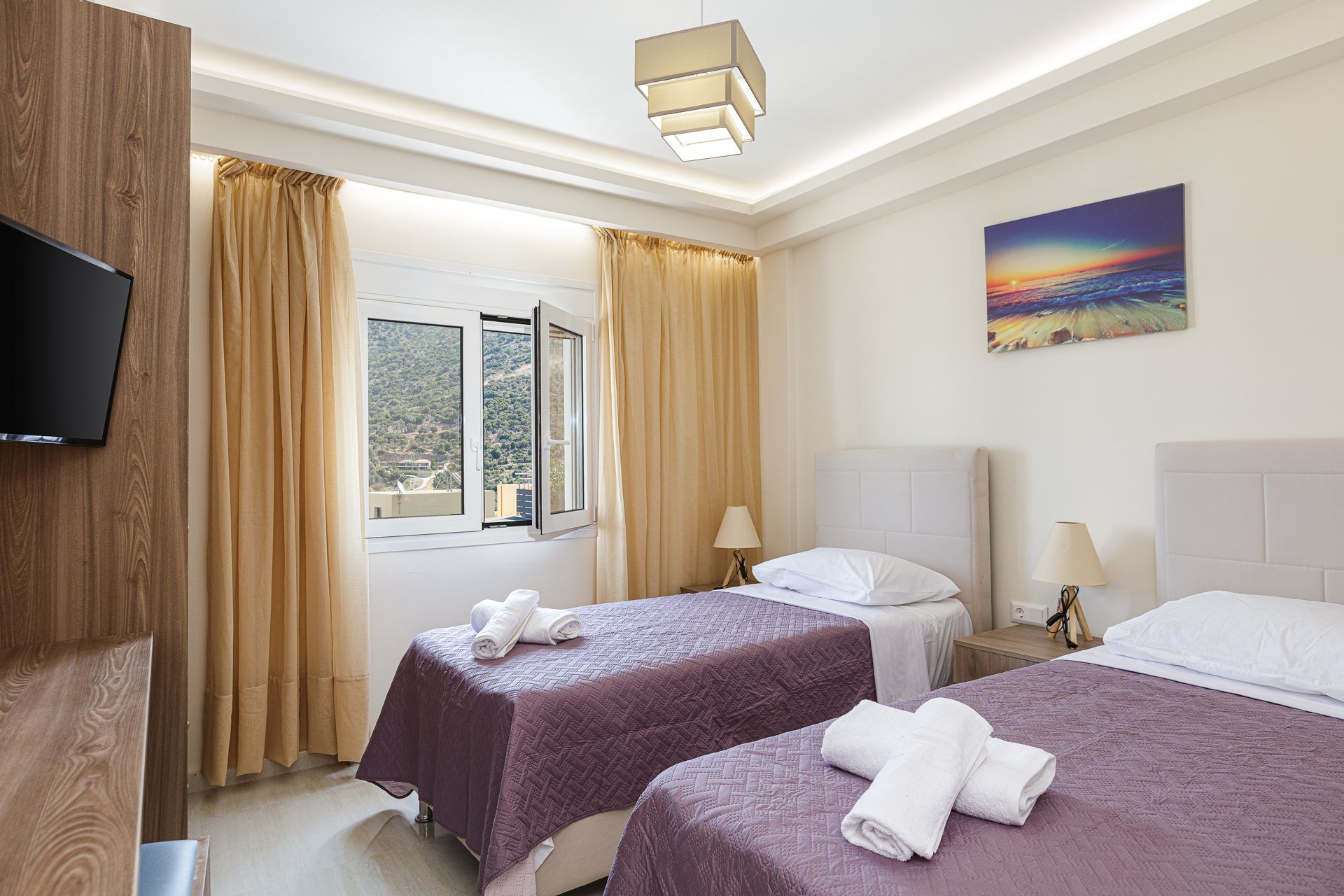 1 living room ,1 kitchen, 1 double bedroom with ensuite bathroom, 1 bedroom (with 1 double & 1 single bed ) & 1 big bathroom