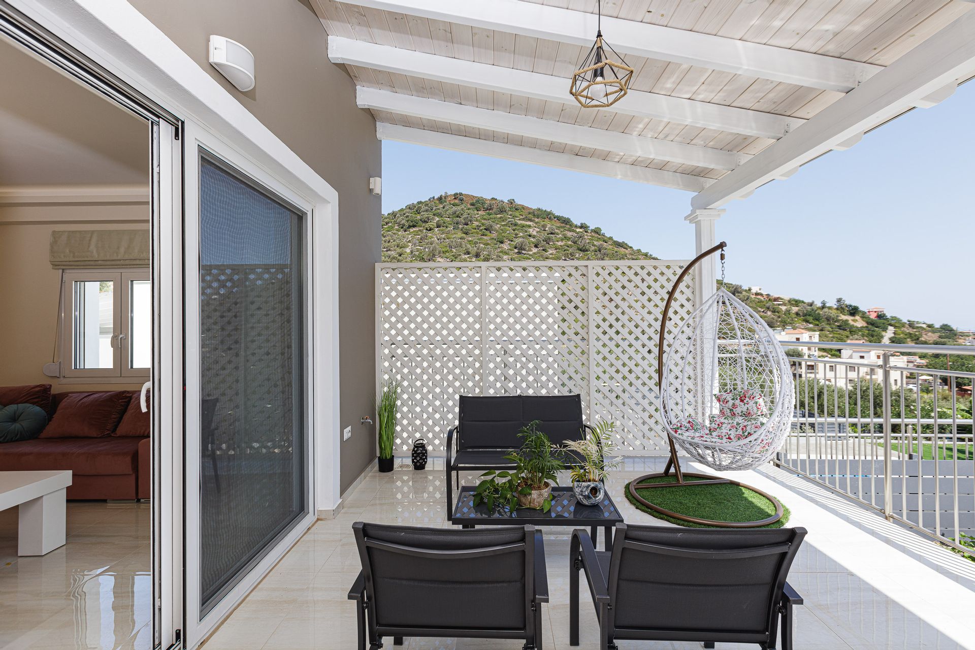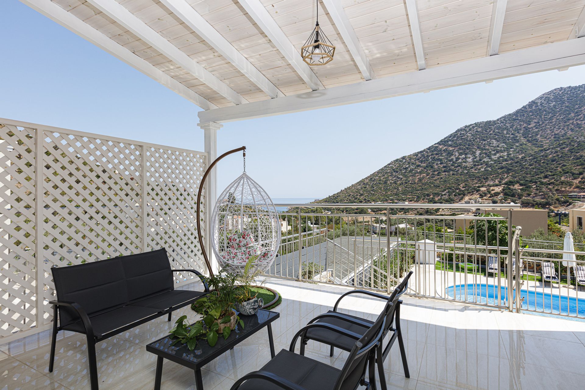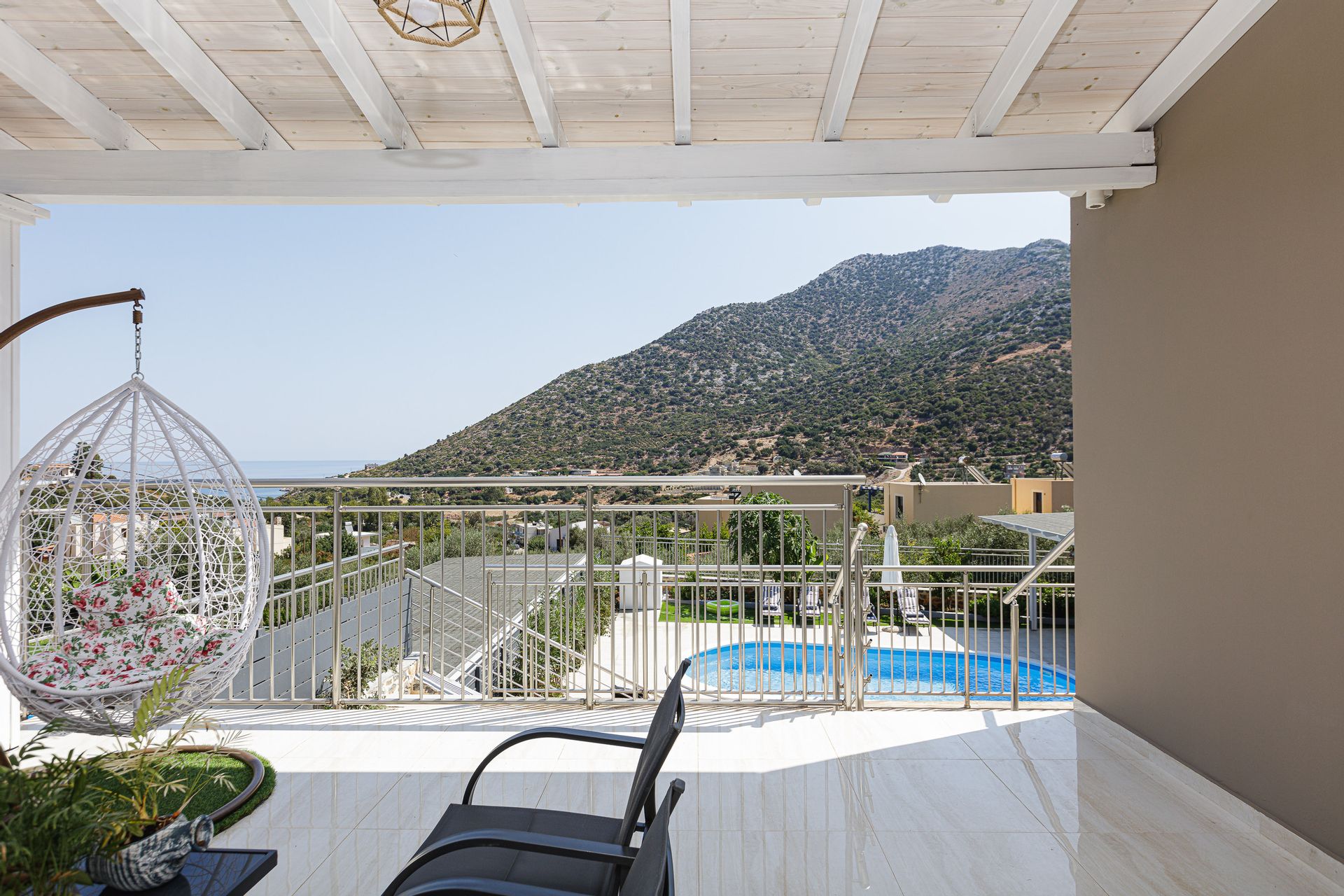 The family holiday villa is home to 2 double bedrooms and 2 twin bedrooms, with additional bedding to sleep up to 12 guests if required. All bedrooms have private balconies, air conditioning, and a safe for guests of the villa to utilize. There are 3 full ensuite bathrooms, with 2 towels per guest and a hairdryer. Additionally, there is a cleaning service once a week. Other amenities for guests include a washing machine, iron, and ironing board.