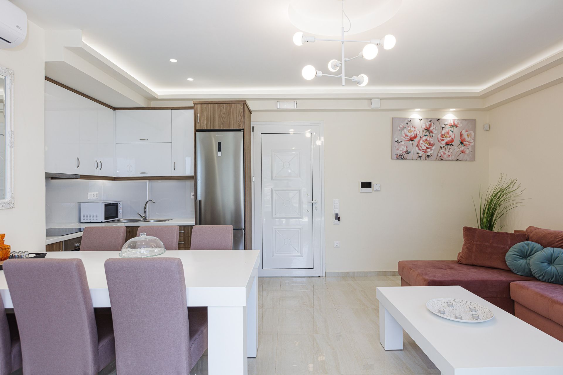 The family holiday villa offers a comfortable living area, stylishly furnished with ample seating for guests, a 53-inch smart TV, and a sound system with Bluetooth speakers. In addition, there is air conditioning available to keep friends and family comfortable during their stay.