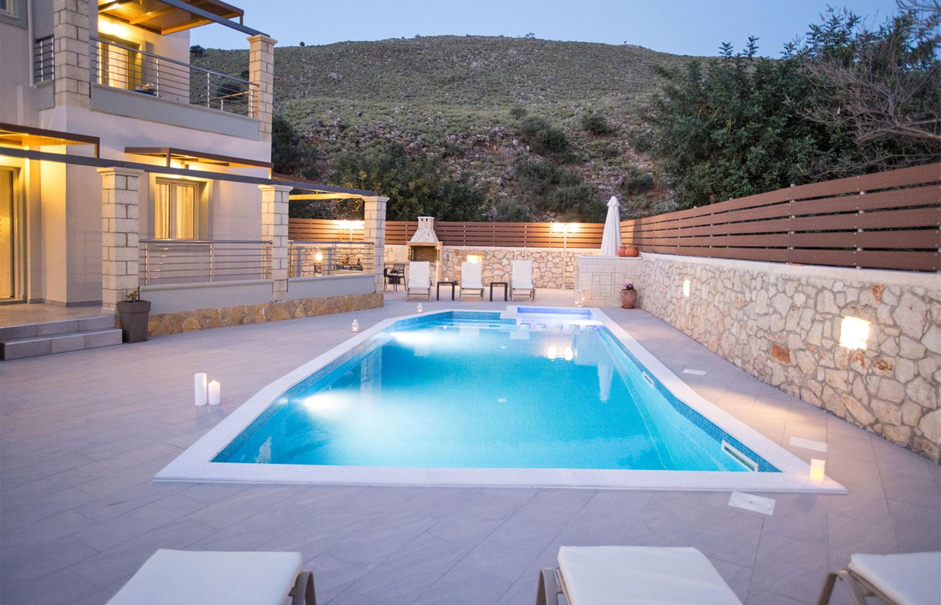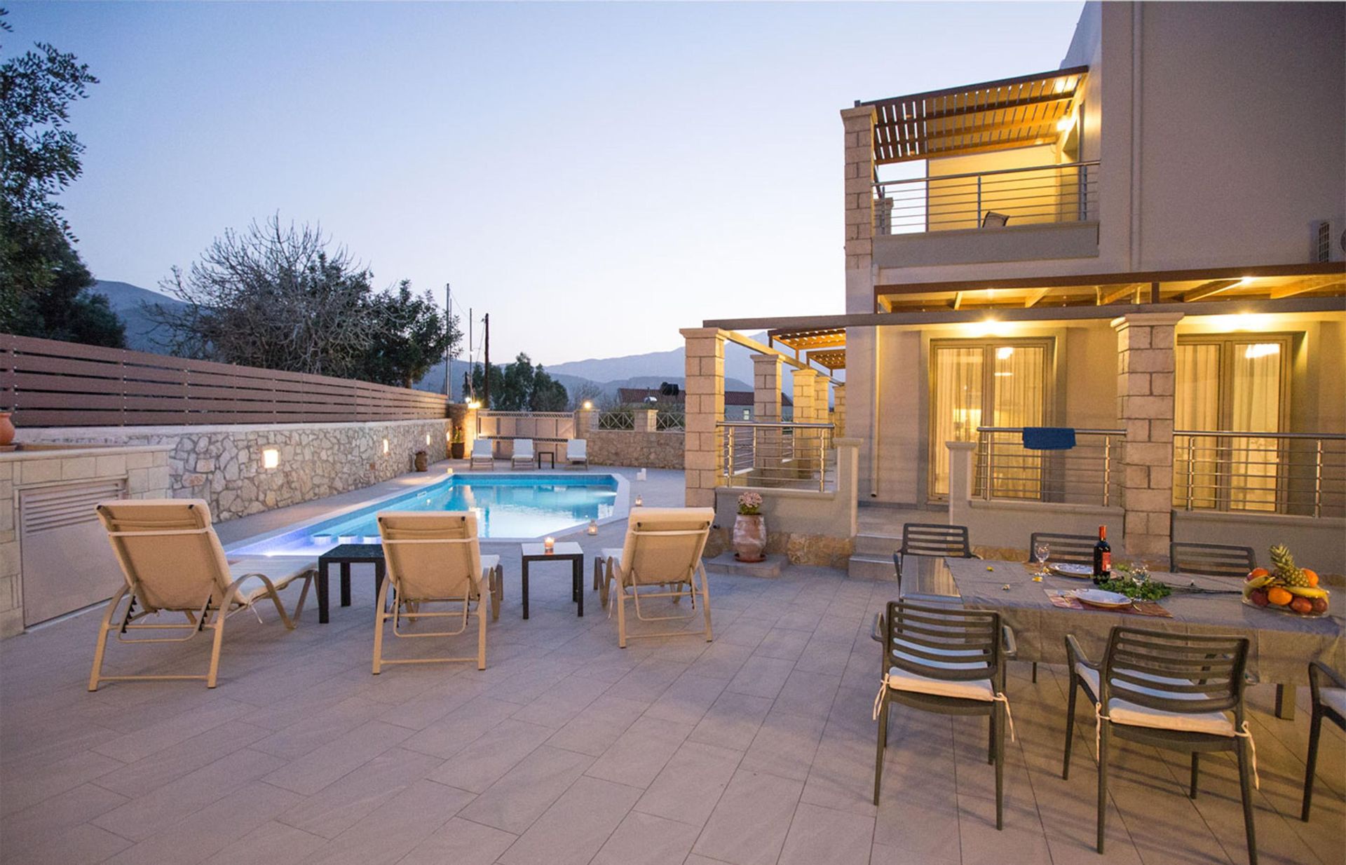 Brand new villa with large private swimming pool and childrens area is located at Georgioupolis village, 27 kilometers from Rethymno. Within a walking distance of 3.5 km there is a sandy beach, a very cozy place for summer relaxation in Crete. There you can find many taverns, bars and shops, but in case you want more, Chania city is only 20 min drive away.