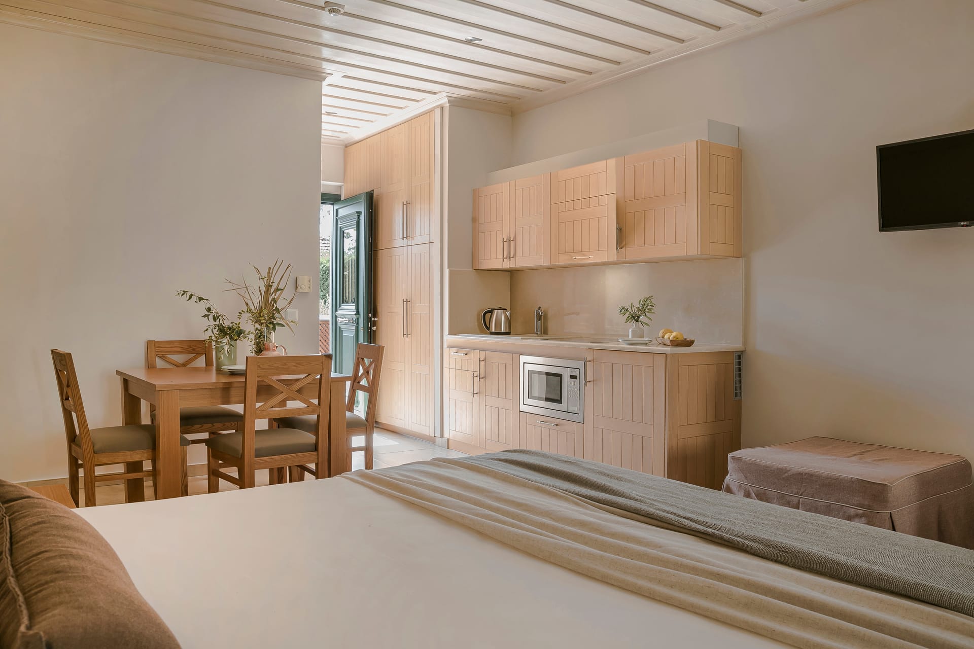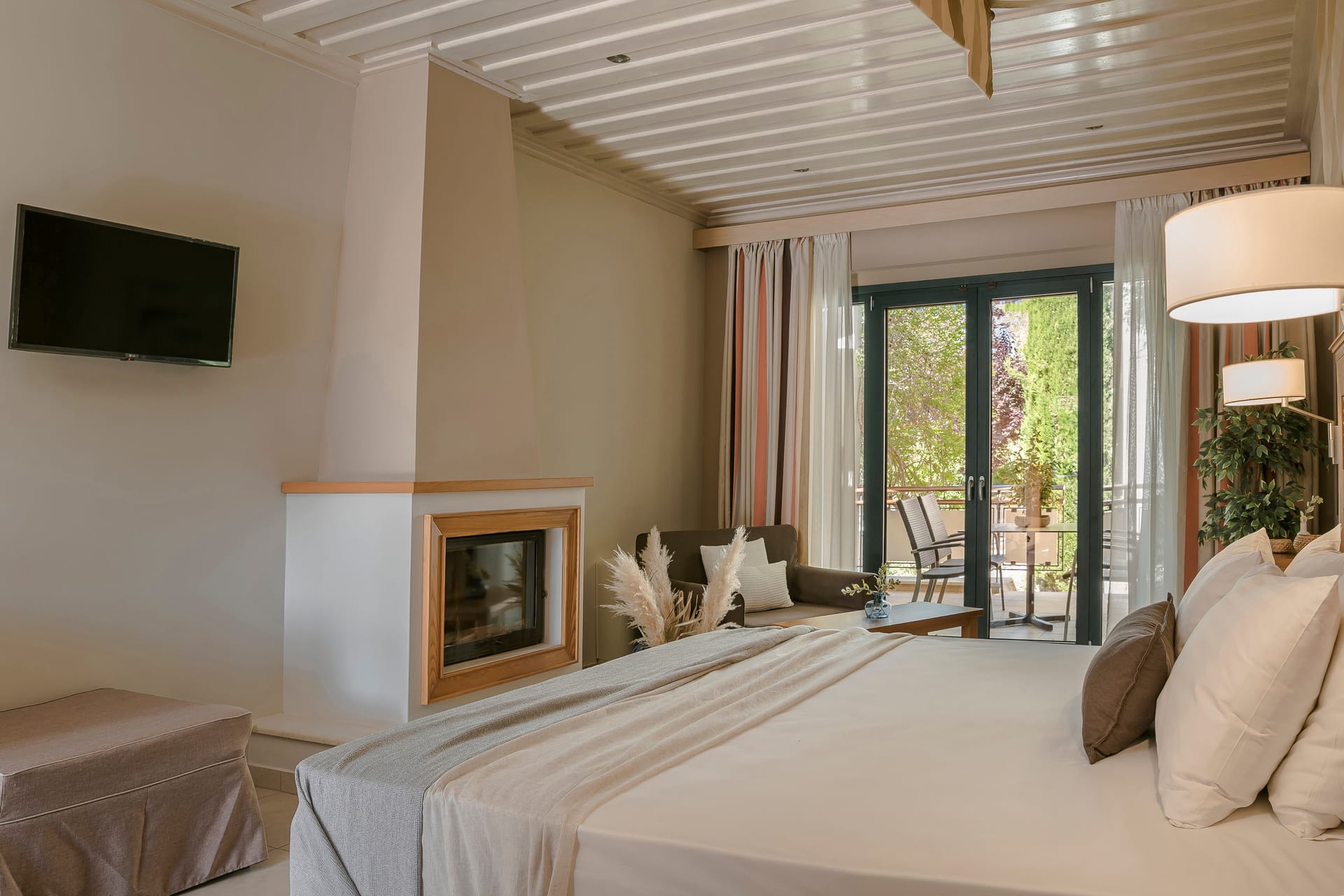 This spacious double room opens to a patio with garden views. Room size 35m2