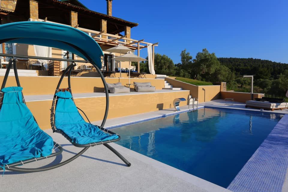 The property spreads over several hectares, in a quiet and secluded part with beautiful nature and not so far from the nearby town of Pefkohori. It has swimming pools, private parking, and gives you complete privacy and comfort. Also, nearby are the most beautiful beaches on Kassandra such as Xenia, Chrusso, Porto Valitsa This apartment is within the villa has a private entrance and is located in the lower part of the villa overlooking the pool and garden. There is free use of YOUR OWN SWIMMING POOL.
