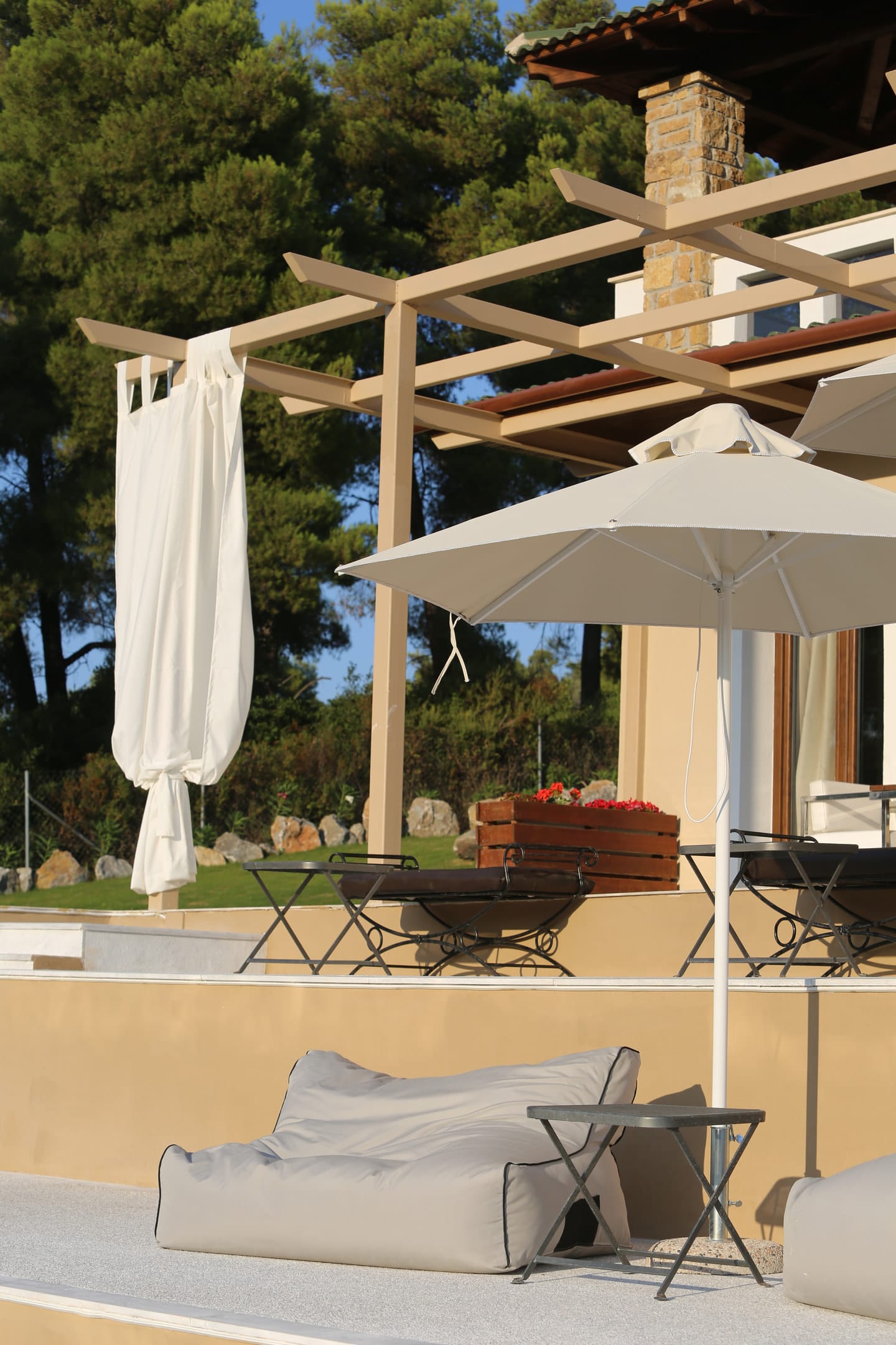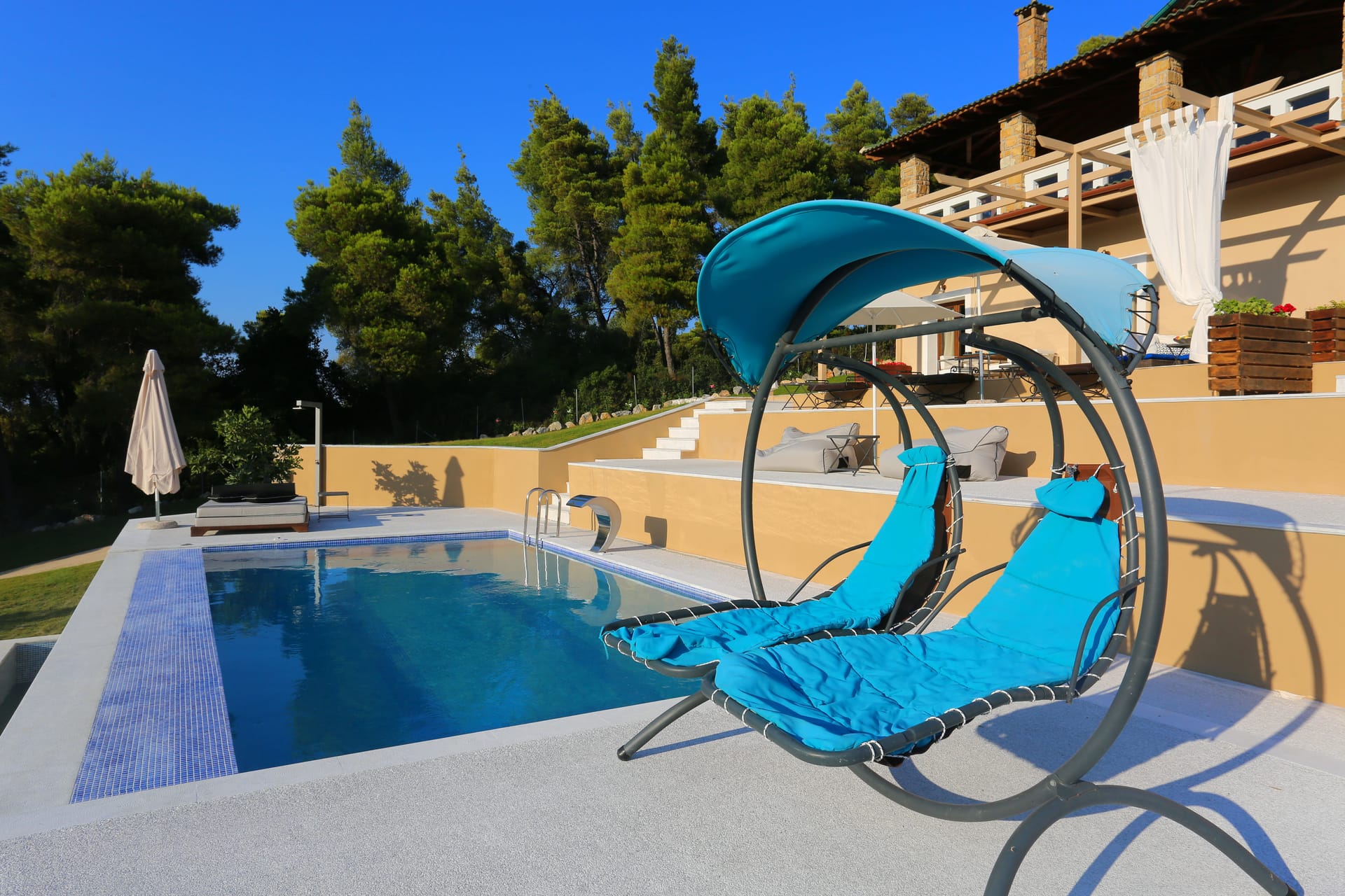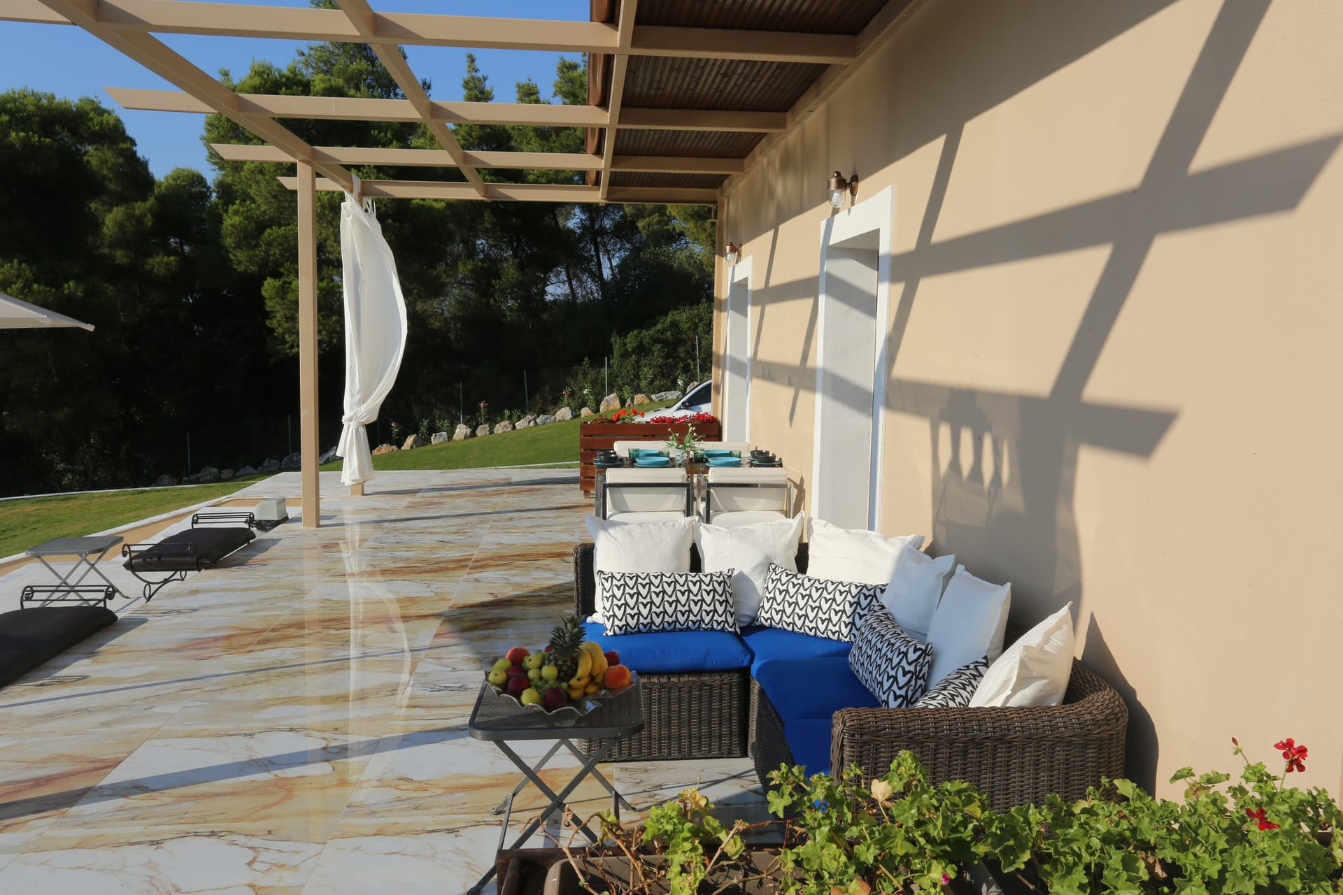 this right side of the residence VILLA VERDE , consists of one vila of 5 bedrooms and a large living room (2 floor vila) and large verandas and terasse , and 1 guest house EXTRA (UNDERNEATH) WHICH CONSISTS of one seperate double bedroom and one living room with kitchenette . it provides a private swimming pool (SO IT HAS A PRIVACY OF ALL RIGHT SIDE OF THE RESIDENCE) and can provide privacy and party areas. in total it can accomodate around 16persons and extra kids, , in total 6 bedrooms, 4 BATHROOMS and sofas. Ideal for long term holiday makers or special events.DAILY SERVICE AND CLEANING .