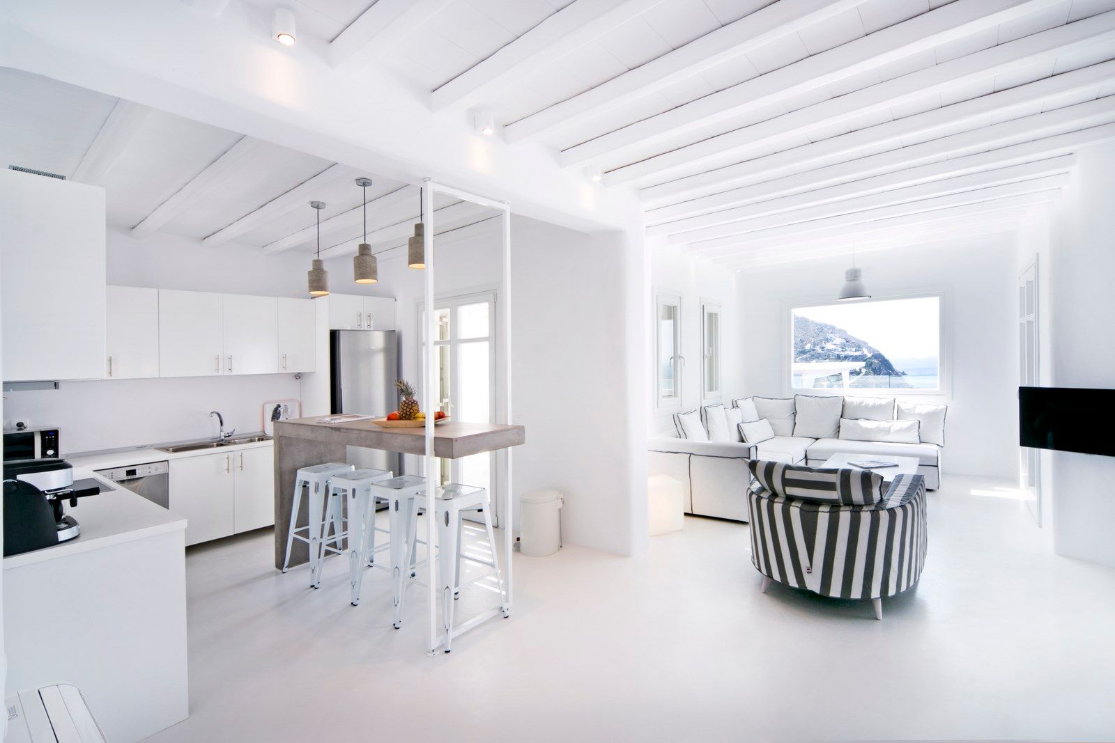 The simplicity of Cycladic architecture aligns perfectly with the modern conveniences of a minimal decoration and combines comfort and tranquility for a relaxing vacation, with the opportunity to get in the midst of Mykonos “life” within a few minutes!