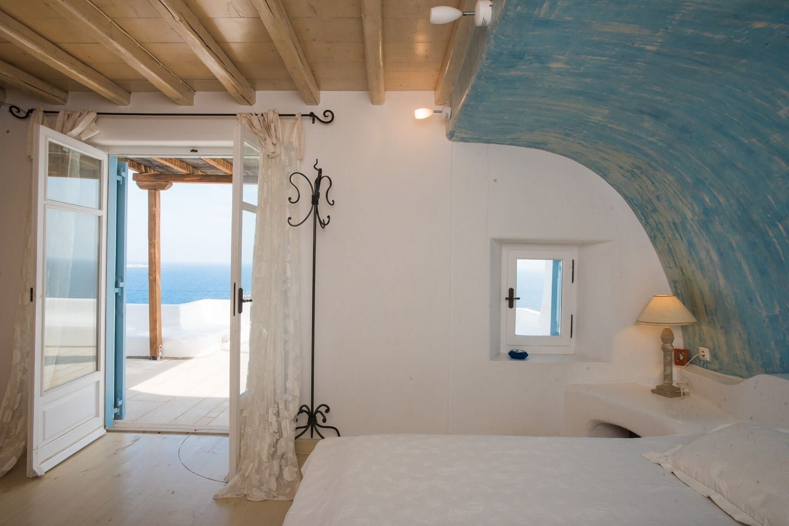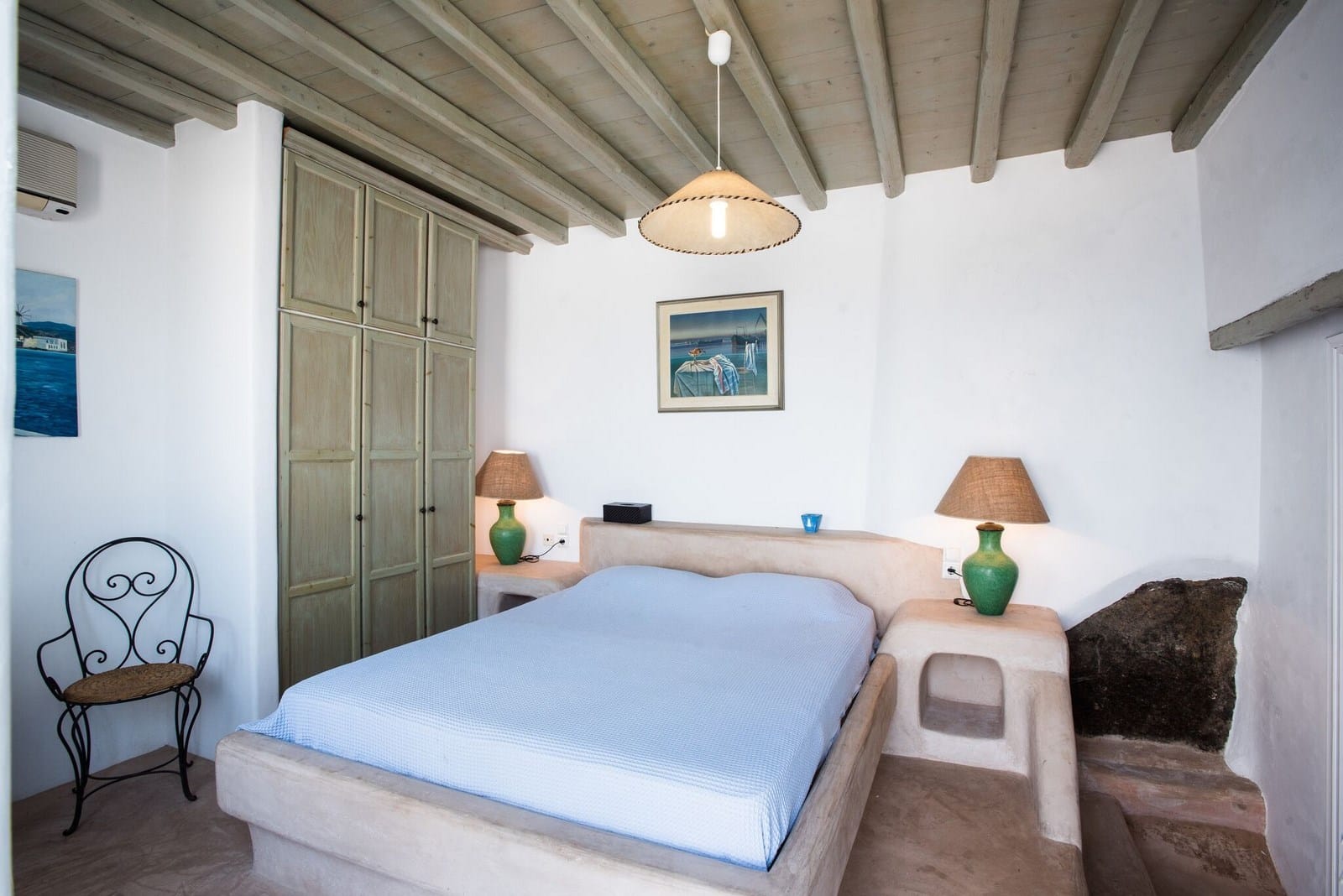 Located in a quite cove at the southwest tip of Mykonos, this Cycladic villa enjoys stunning views of the Aegean Sea and neighboring islands. The villa is part of a luxurious residential complex that features the traditional Mykonian architecture of white-washed cube-shaped residences. It is only 5 minutes easy ride to Ornos bay and 7min drive to Mykonos Town (4km).