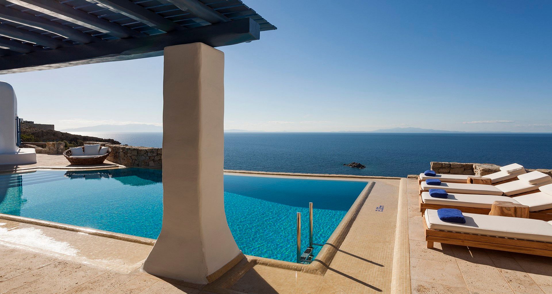 Villa Angelica is part of a luxury complex which offers exclusive luxurious privacy at its 11 Mykonian villas just minutes from the island’s most notorious beaches, most eclectic night-life entertainment and most remarkable dining experiences that Mykonos is so famous for. Spread over the 38,000m2 estate each of the luxurious villas sports a pool, distinctly inspired decoration, satellite TV and Wi-Fi. Back-up generators and water purifiers, 24/7 security, a private jetty and a helipad are available to guests, while chefs, butlers, extra cleaning and catered services can be arranged to never stop.