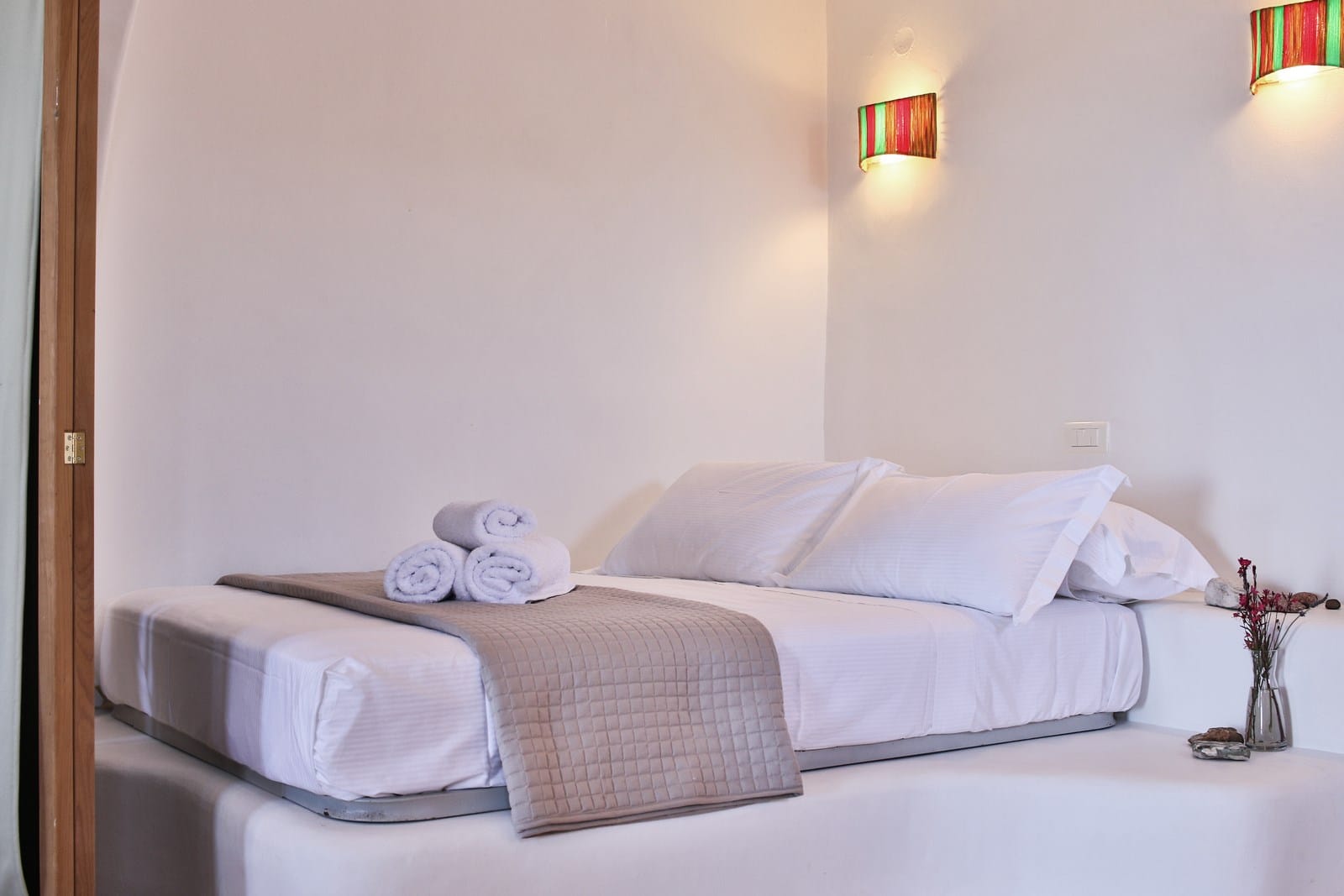 - A spacious master bedroom with a double bed, a living room and a veranda with amazing sea view with two sun beds. Next to the master bedroom there a small auxiliary dressing room with a sofa.
