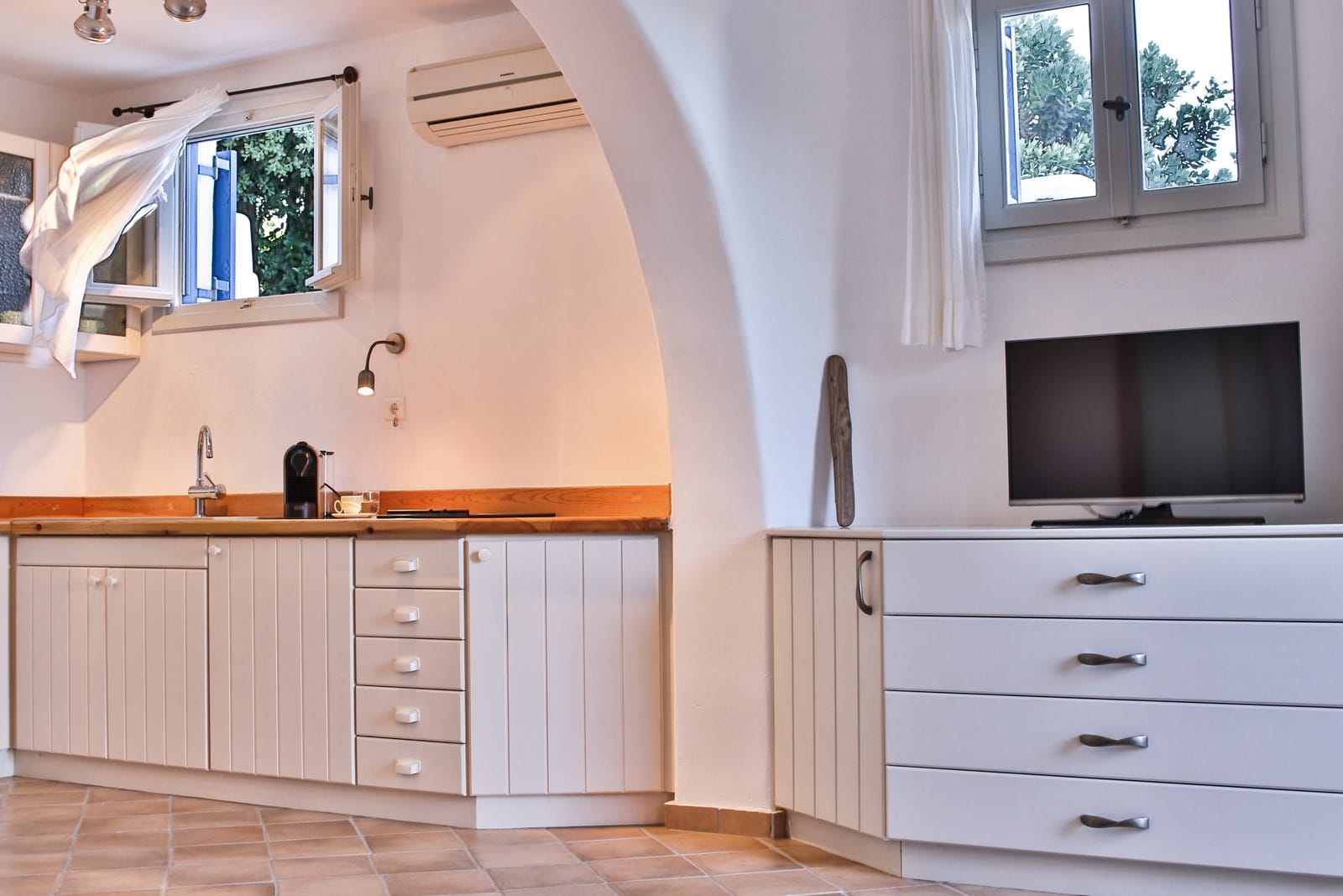 Below the Main House there is an independent guest house with a bedroom with a double bed, a bathroom, a kitchenette and a living room. Guests have direct access to a beautiful, pergolas-covered lounge area with amazing sea and garden view.