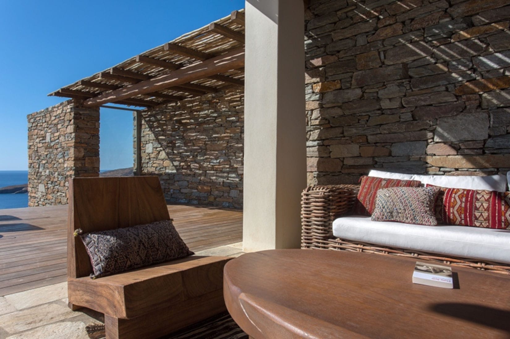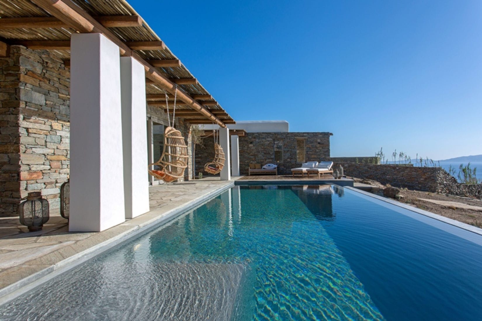 This beautiful maisonette is located in the area of Aleomandra – only 3,5km from Mykonos town – with a distinctive Mykonian style and unique sea view. It is part of a complex in a 900sq.m plot, with an independent entrance and a verdant garden, full of trees and plants. It consists of a two-level, 213 sq.m. main house as well as an independent guesthouse (40sq.m). The maisonette also has a brand-new swim spa pool with sea view.