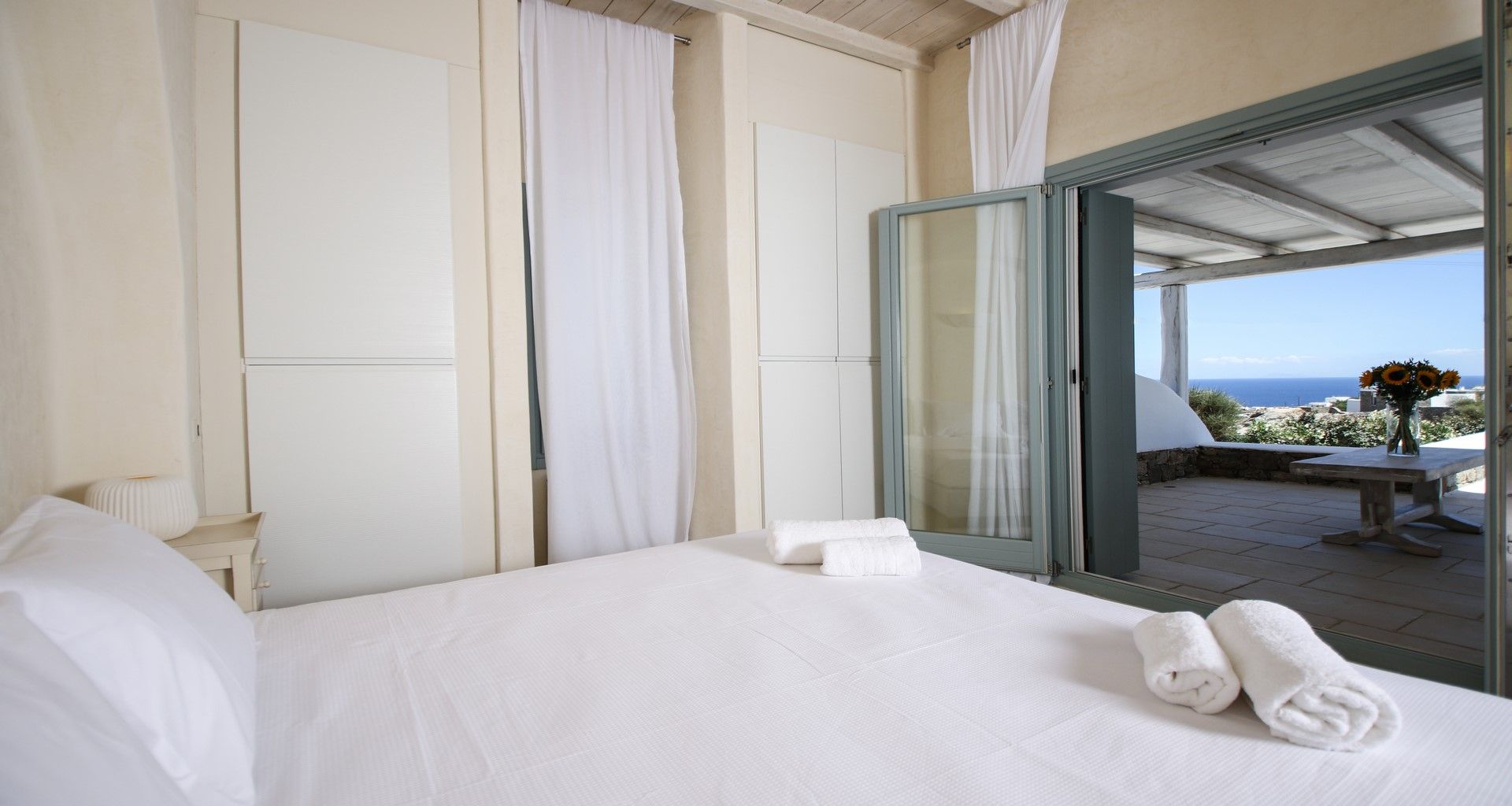 It combines high quality finishes, impressive views, a tranquil ambiance and large indoor and outdoor spaces for a distinctive and elegant experience. The decor successfully fuses minimalist sophistication and Greek color ambience with minimalist furniture and modern materials, which are offset by bold colorful artwork.