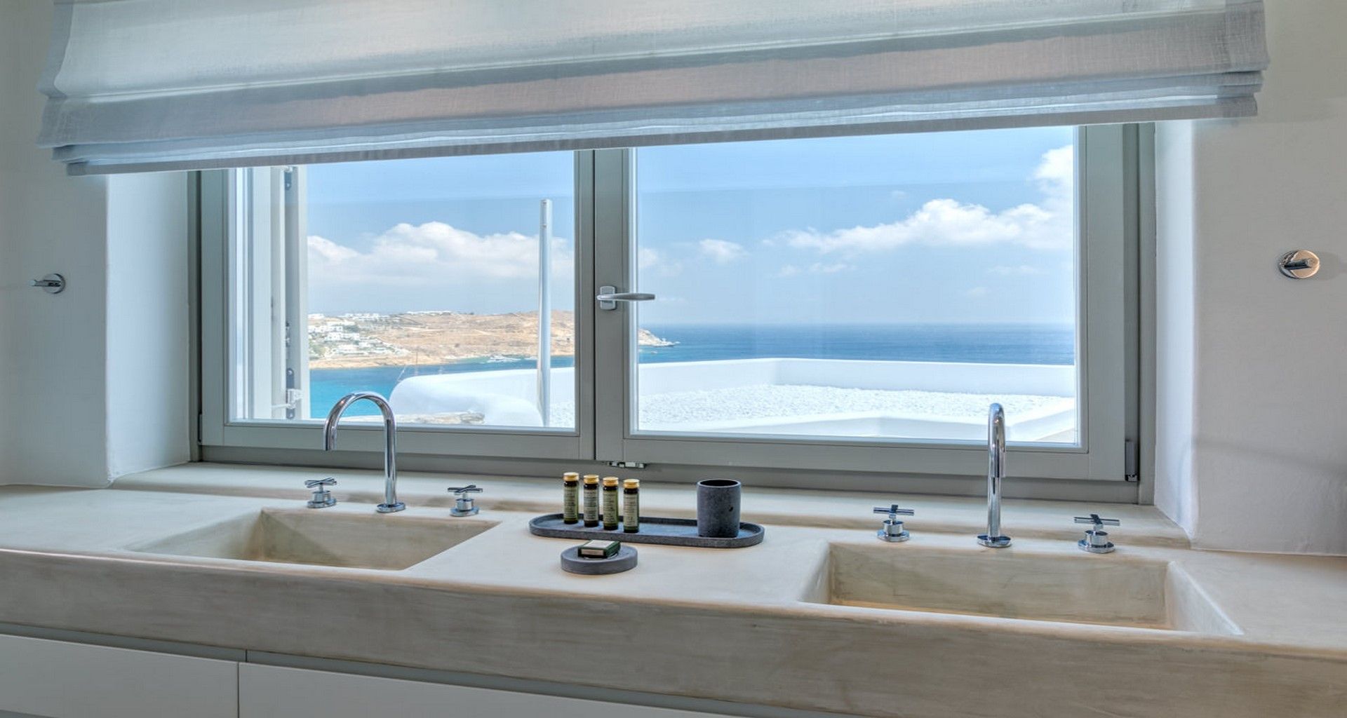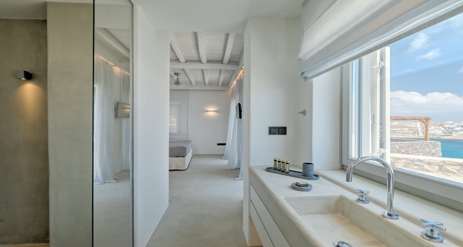 - Level B: Office with breathtaking view to turquoise Aegean Sea and private sunset terrace with external shower