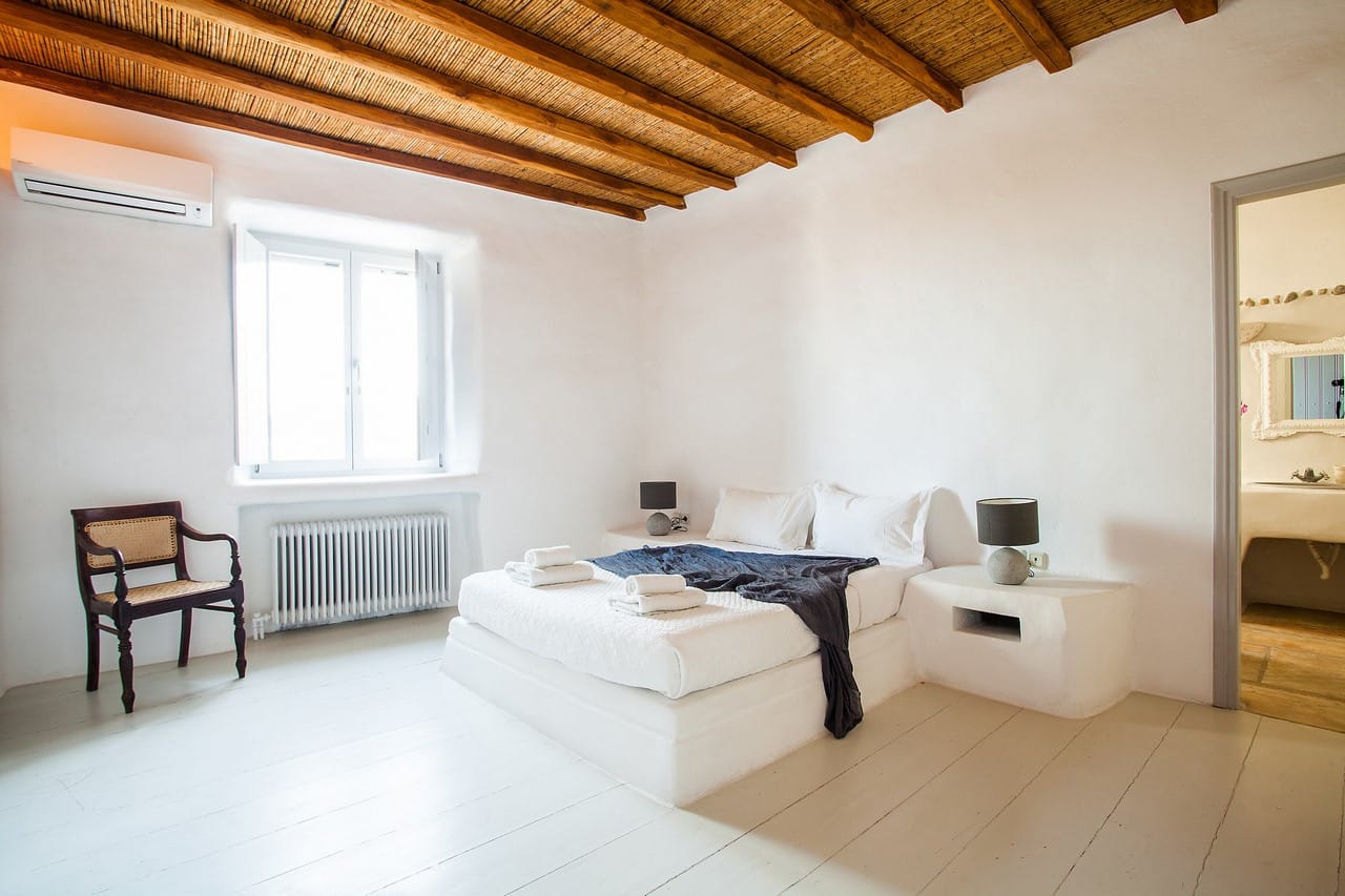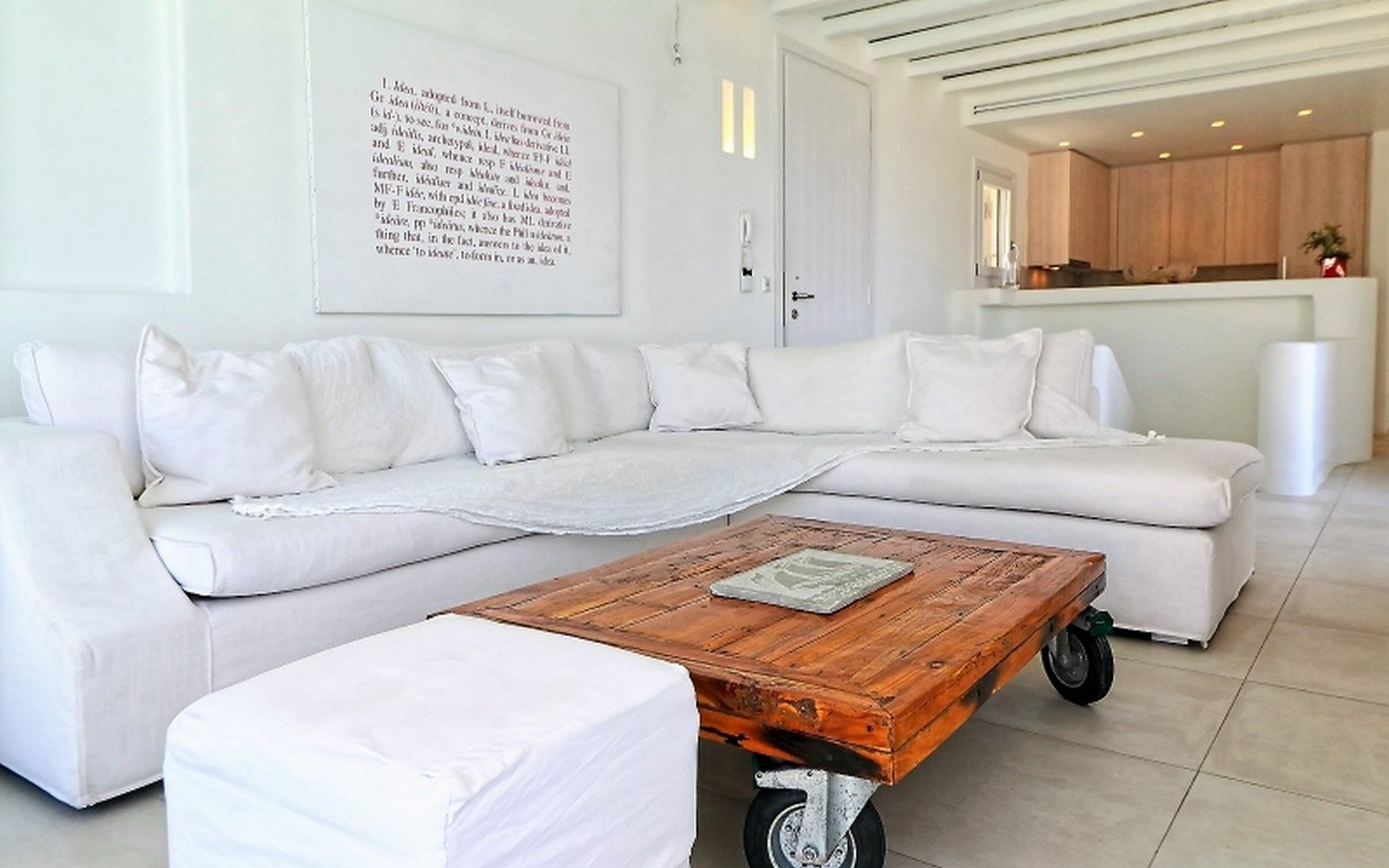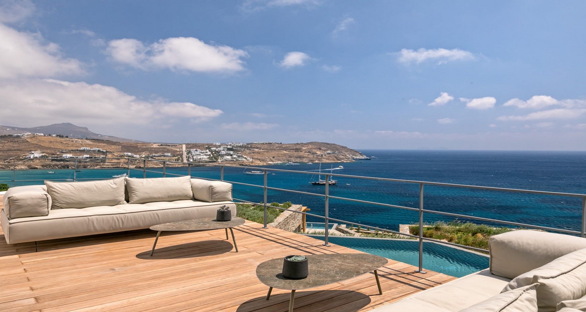 The villa is ideally located on a unique plot of 4,193 sqm, on a hill that oversees the famous golden beach of Kalo Livadi with a breathtaking view to the sea. The 645 m2 complex consists of 3 independent buildings and 2 swimming pools, with 7 bedrooms (accommodates 14 guests). The complex provides all the amenities that anyone could enjoy: Playroom, wine cellar, large external areas with pools, sheltered lounge, outdoor dining areas with pergolas and most of all an astonishing view.
