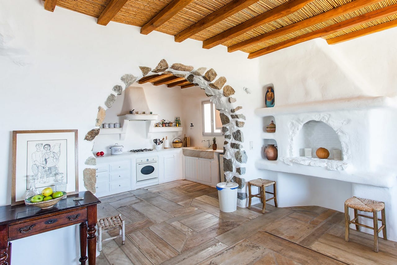- Τypical light grey color cement screed for outdoor and indoor flooring provides continuity from the interior to the exterior part of the house.