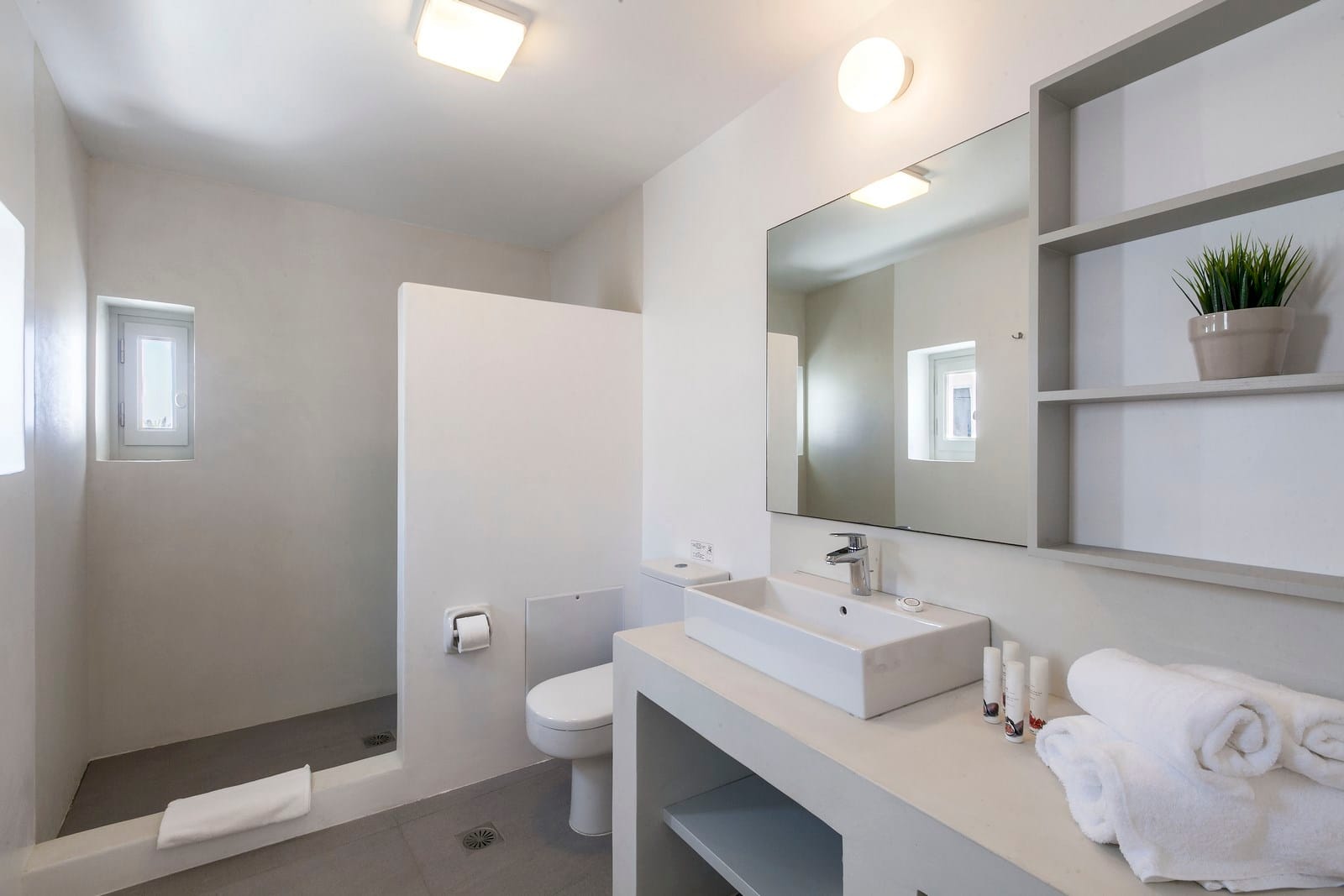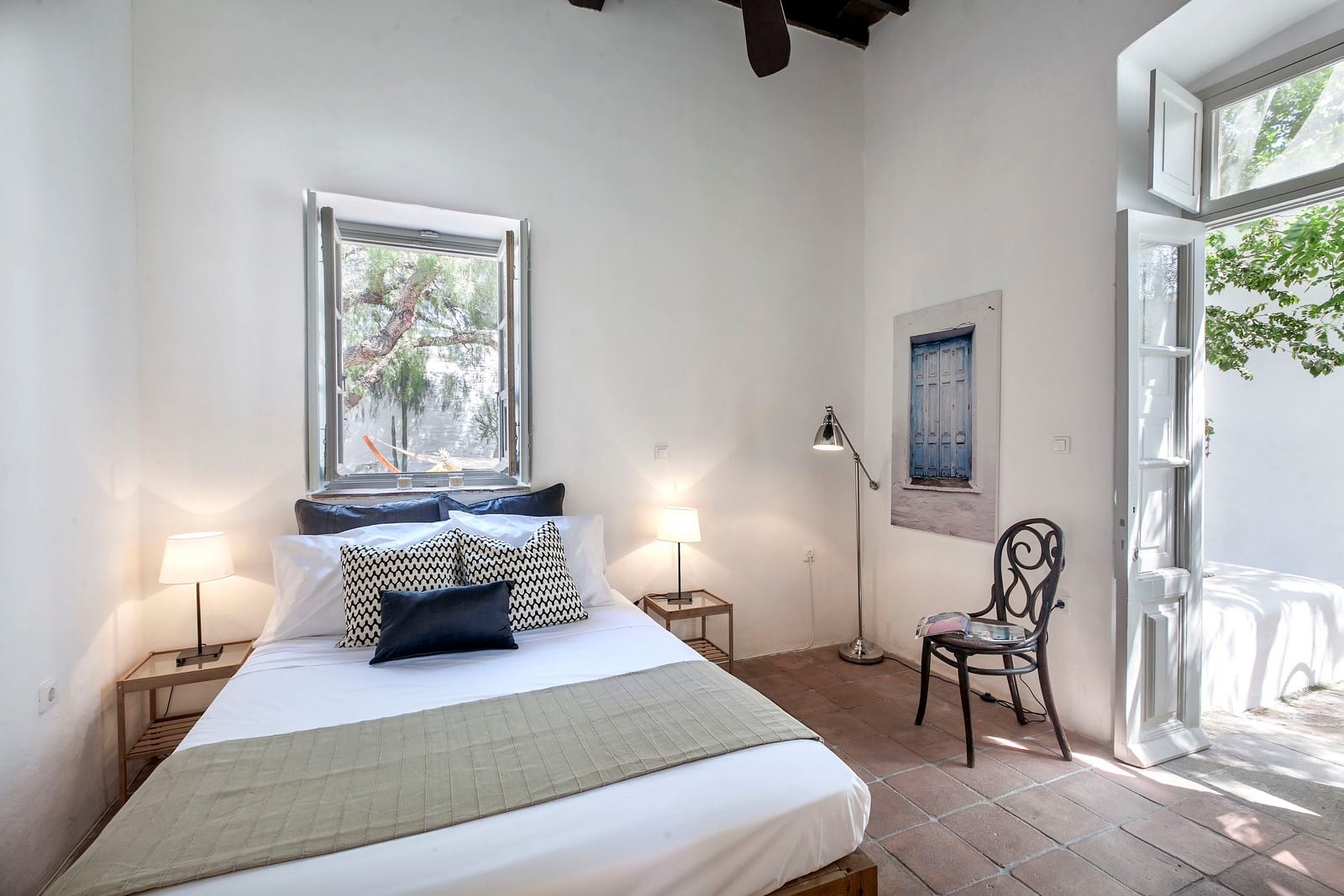 A total of 5 bedrooms and 5 bathrooms, 3 of which are en-suite, will accommodate up to 14 people. The layout of Gialos Mansion consists of a main house with 2 double bedrooms which share 1 bathroom, a spacious living room and dining room and a fully equipped kitchen. The attic suite above consists of 1 bedroom with an en-suite bathroom and a sitting area which features a double sofa bed. All bathrooms are newly renovated and the deluxe eco-friendly Cocomat mattresses through and through will ensure a restful night’s sleep. Sweet dreams are complimentary!