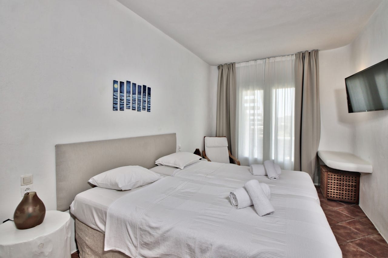 All three bedrooms are equipped with all the modern amenities, including air condition and TV set and have access to the terrace through the staircase that leads to the pool.
