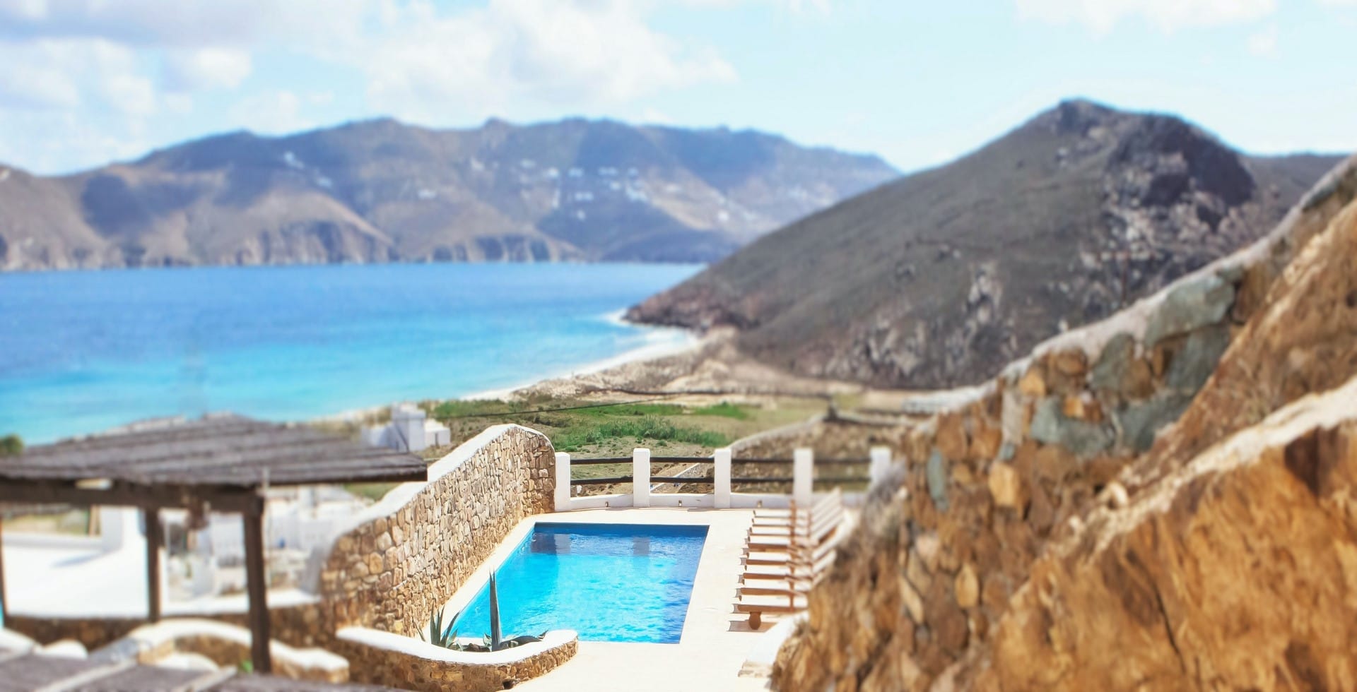 Villa Lexie is the ideal option if your goal is to get the best from vacation on the world-famous island of Mykonos! With spectacular views of the sea, the sand and the untamed hillsides, this 2-bedroom villa is located a short walk away (350m), from Panormos Beach and 5k from Mykonos Town.