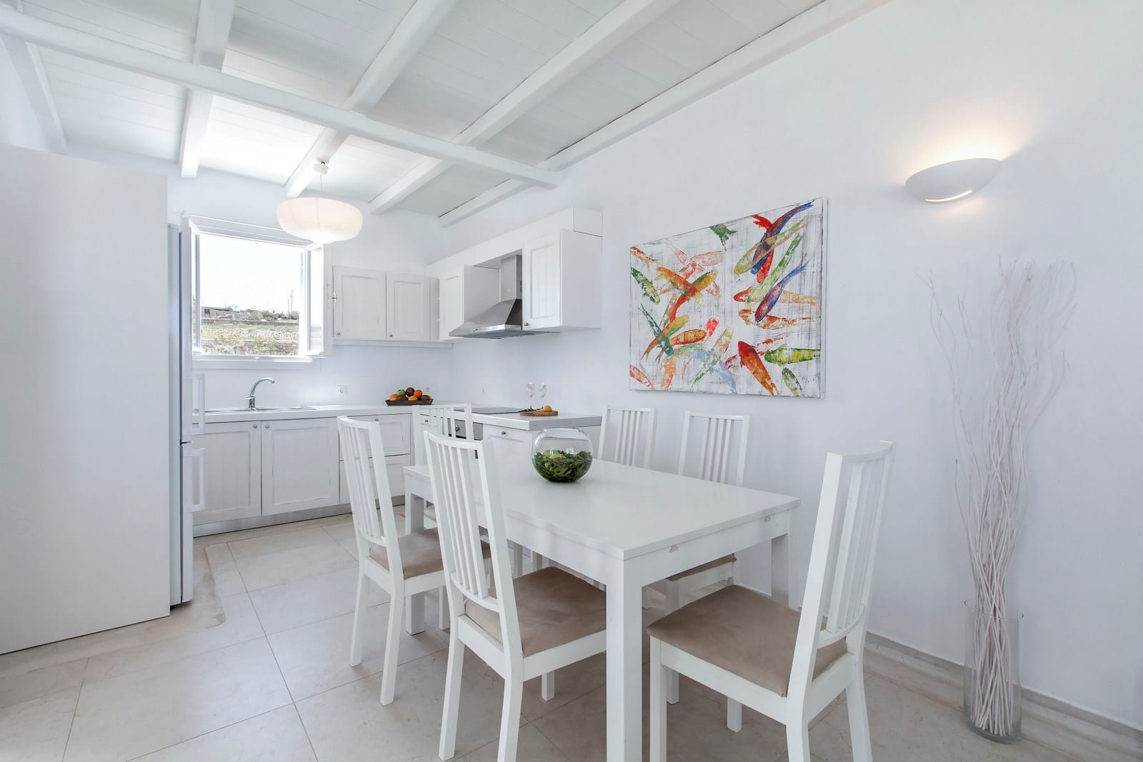 The ground floors in both villas include four master bedrooms with en-suite bathrooms. The crisp white on white interior design is accented with tasteful touches or art, providing a warm home away from home feeling. The upper levels include 4 more double king size bedrooms and 2 bunk beds bedrooms with 4 bathrooms in total. No line-ups for brushing teeth in the morning and lots of space for everybody to completely unwind. All rooms include air-conditioning and the abundant windows invite luminous sunlight and beautiful views.