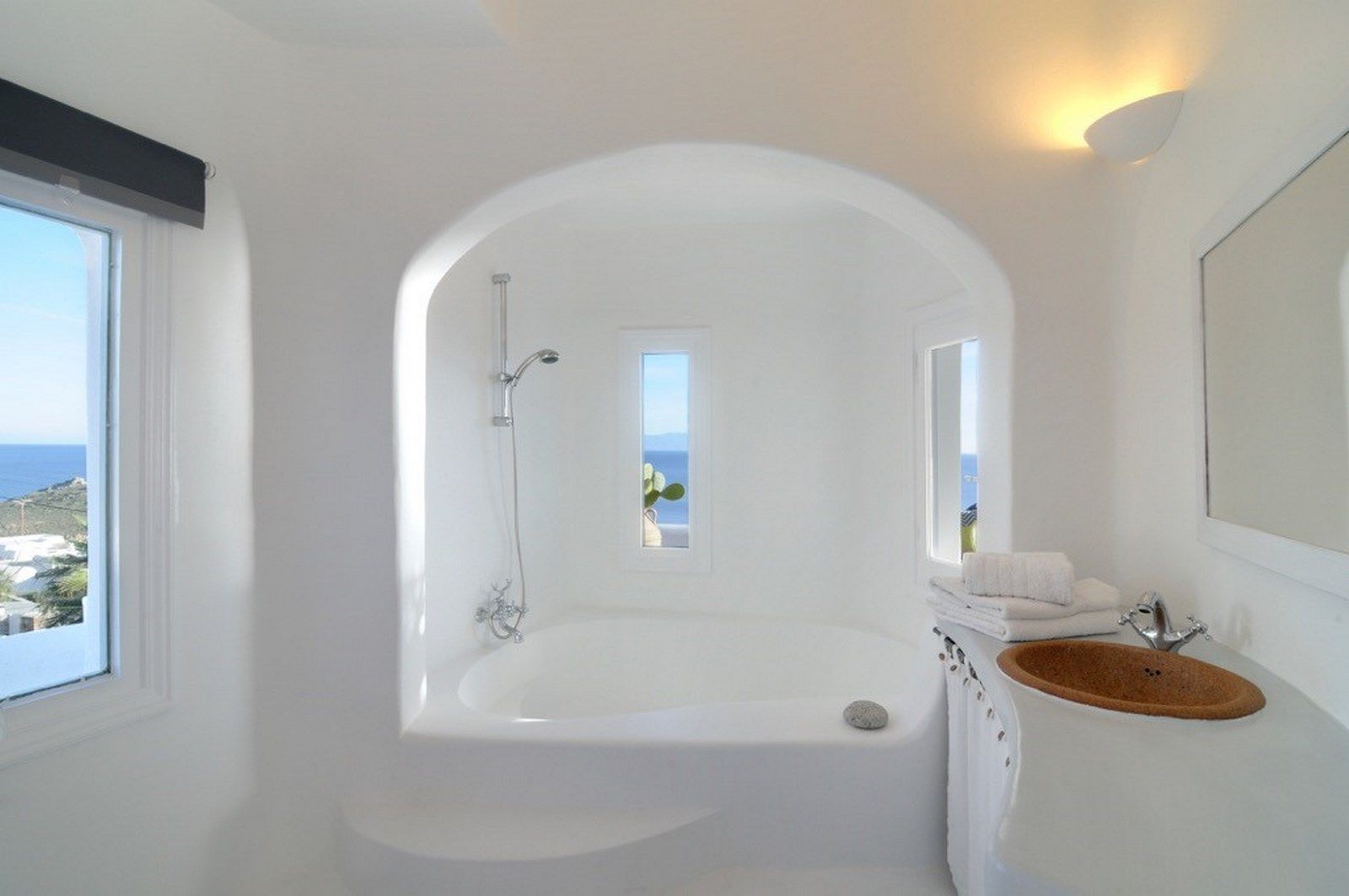The villa is modernly furnished and has a large swimming pool with overflow on its sea view side. There are 4 bedrooms in total, 3 in the main house and one pool adjacent. All bedrooms have en-suite bathrooms, digital HDTV, silent refrigerators with glass doors (mini-bars), high quality safes both well hidden inside the closets and air-conditioning. The house has wi-fi internet support.