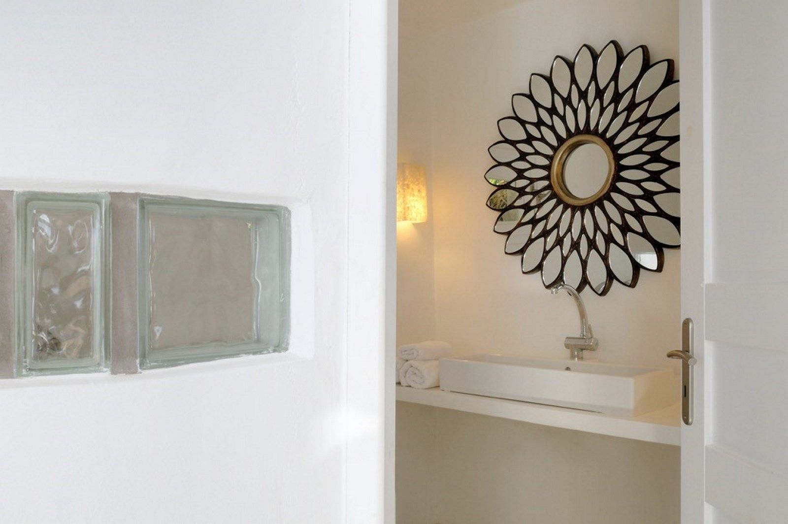 There are plenty of open spaces and verandas with pergolas and at the pool side there are umbrellas and deck-chairs. The villa has also parking space. The nearest beaches are Nammos, Ai-Yiannis, Glyfadi and Ornos beach. The distance from the town centre and airport is between 4 and 5 kilometres.