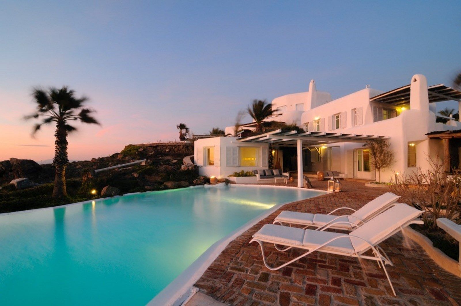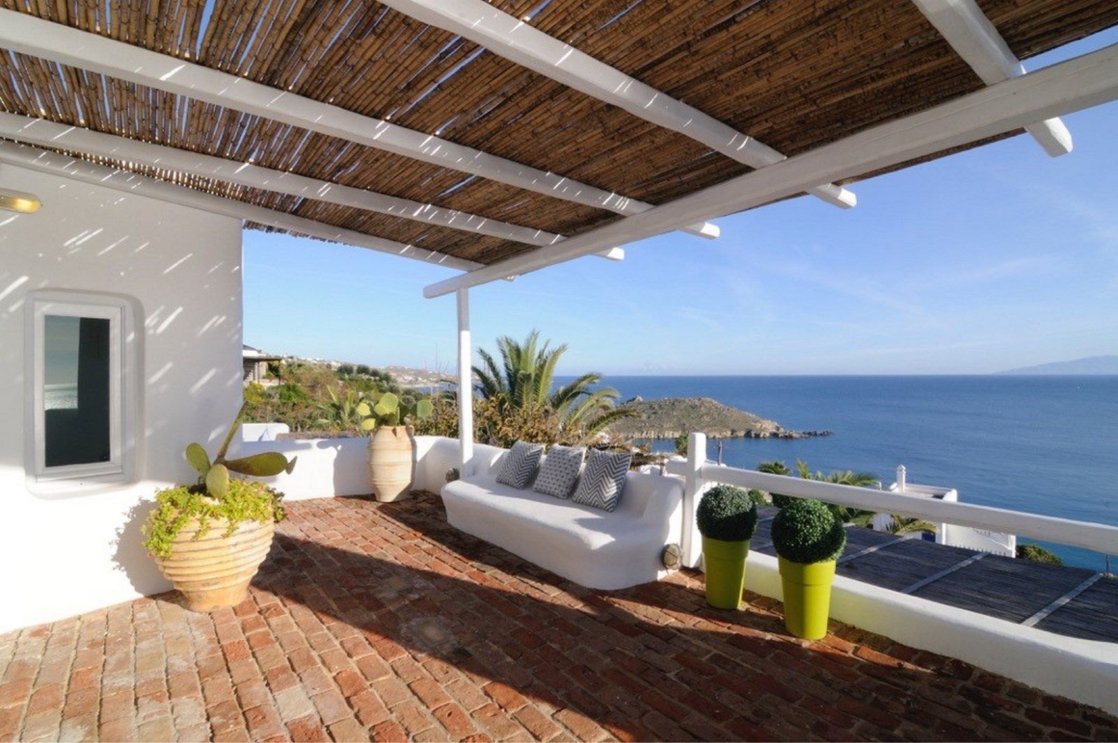 A luxurious villa in Mykonos situated in the southwest of the island in the area of Aleomandra, 80 meters from the sea front. It offers magnificent views, a great sunset overlooking the Aegean in the direction of Delos island and is well protected by the strong northern winds.