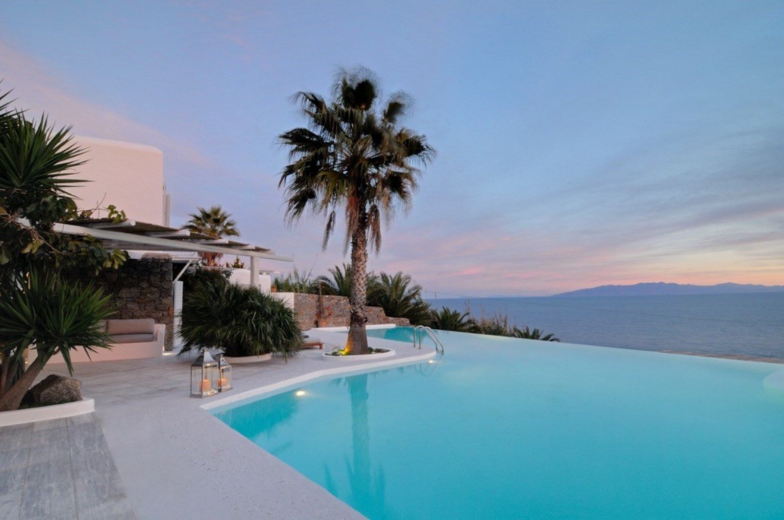 A luxurious villa in Mykonos situated in the southwest of the island, in the area of Aleomandra, 80 meters from the sea front. It offers magnificent views, overlooking the Aegean in the direction of Naxos island and is well protected by the strong northern winds.
