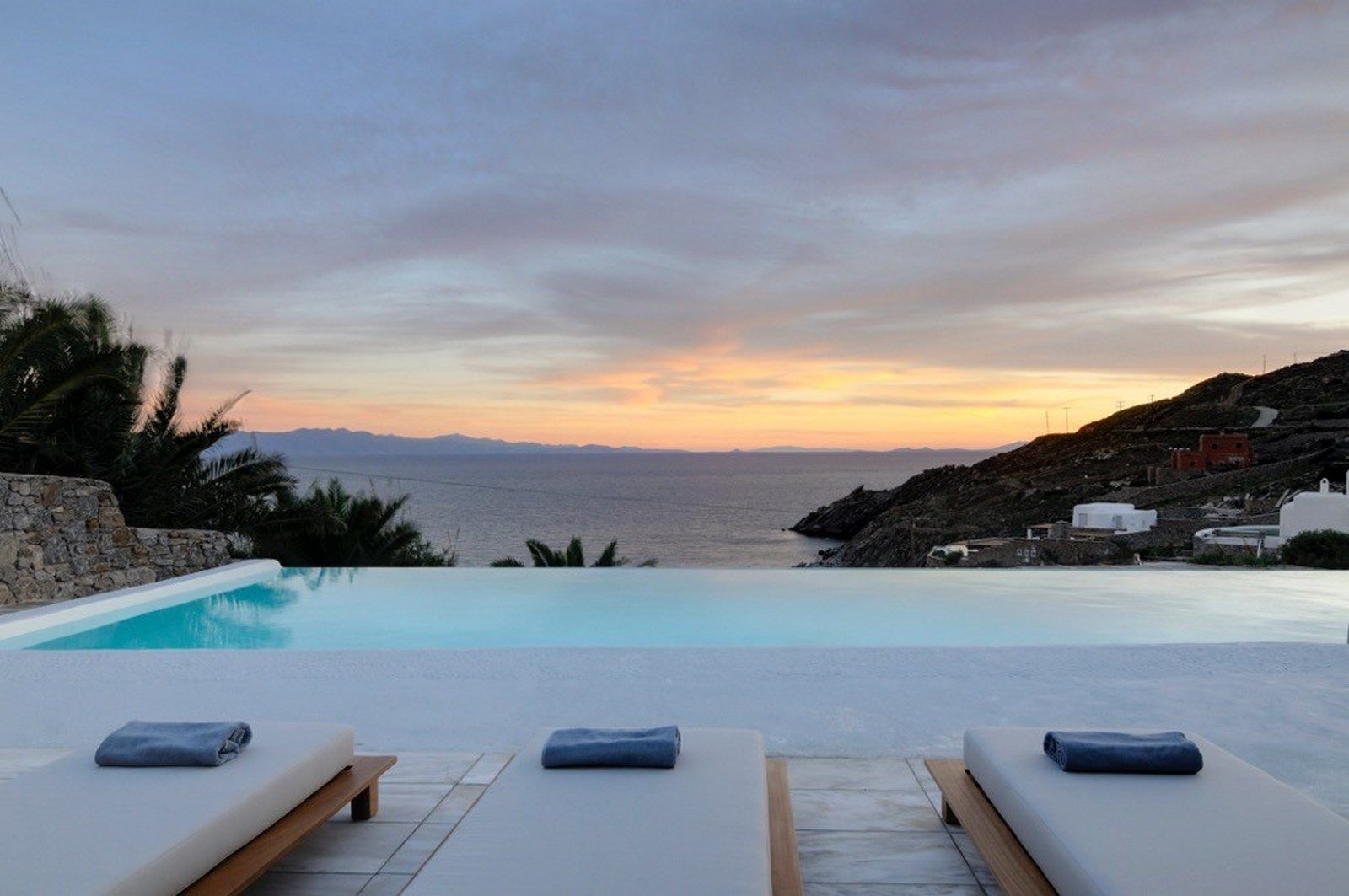 The villa is modernly furnished and has a large swimming pool and also a second smaller one designed for young children, both with overflow on their sea view side. There are 4 bedrooms in total, 3 in the main house and one pool adjacent. All bedrooms have en-suite bathrooms, digital HDTV, silent refrigerators with glass doors (mini-bars) and high quality safes, both well hidden inside the closets and air-conditioning. The 4th bedroom has an independent entrance and has a large corner sofa that may sleep 2 young children if necessary.