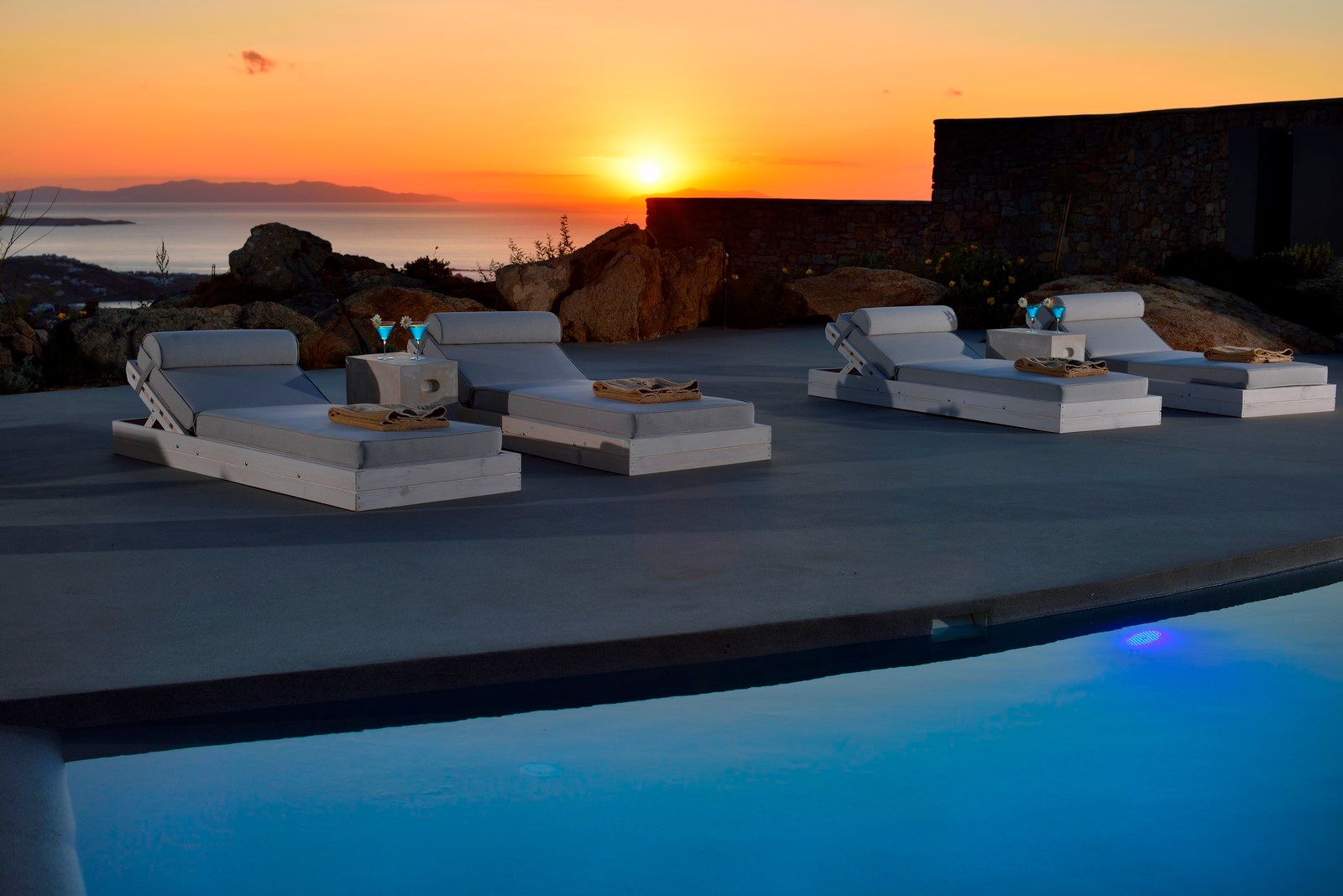 Inspired by the colors of nature the villas blend in the landscape making them almost transparent. Infinity pools, state of the art interiors, minimal designs, unique gardens combining all shades of the island, incredible panoramic-view exteriors are only some of the villas irresistible traits. Privacy is beyond mention. Each property holds its own private infinity pool with Jacuzzi, elegant outdoor dining and sitting and master bedrooms with en-suite bathrooms.