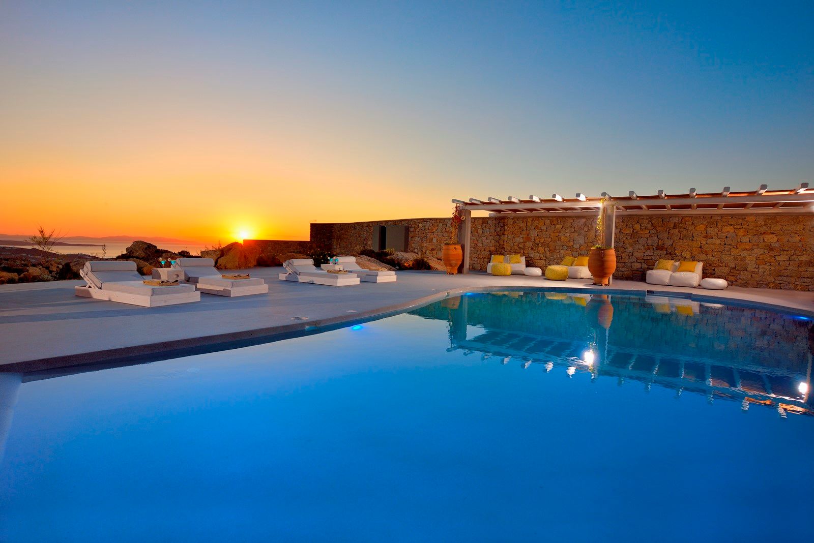 Villa Primrose is part of a brand-new VIP exclusive complex of five villas located at the peak of the island's hill named Kounoupas, leaving you breathless with the exquisite endless view of the Aegean Sea and almost all the Cyclades islands including the ancient sacred island of Delos.