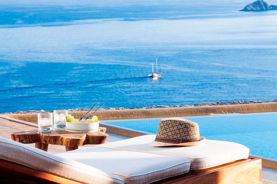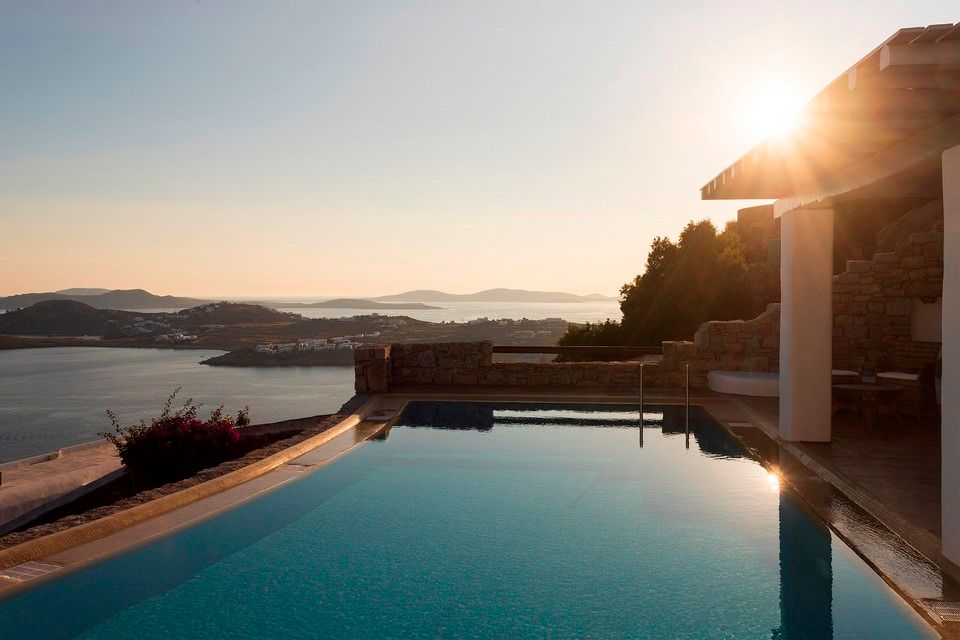 Villa Sante is one of the 11th private Villas estate and enjoys a bird’s eye view of the islands of Delos and Rhenea, a majestic drop to the sea and the picture – perfect Mykonos sunset. The brilliant view of the villa is all in front of the 55 sqm infinity pool that flows off into the Aegean horizon and you are still less than a three minutes’ walk to the sea.