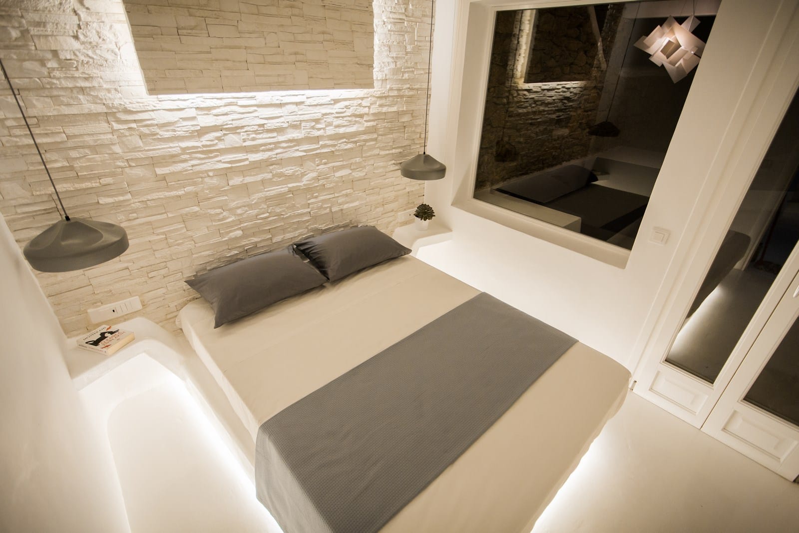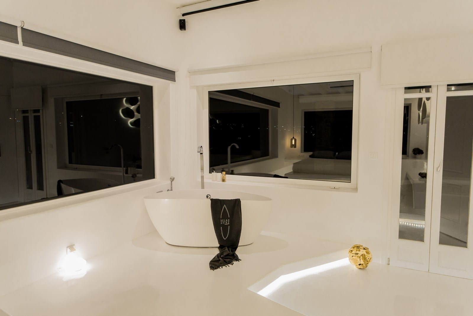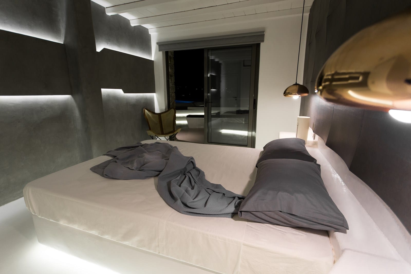 Spend evenings relaxing on the terrace lounges and gaze at the horizon in awe as the majestic Myconian sunset unfolds. At night the numerous lighting options including LED architectural lighting throughout the villa help you set the right mood. Shhhh. Let the sound of the waves sooth you as you slowly drift away in the comfort of your bed and dream of the care-free days to come.