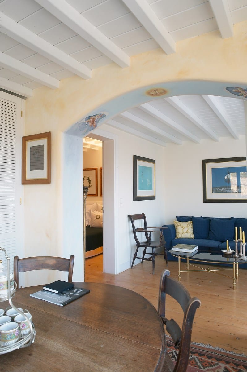 2nd bedroom (1st level): One bedroom with a King size bed, a private marble bathroom with bathtub and shower, an open plan sitting room and a dining area with a kitchenette; a card playing corner furnished with beautiful antique pieces and an authentic English card table. Only a drop away from the morning pool splash.