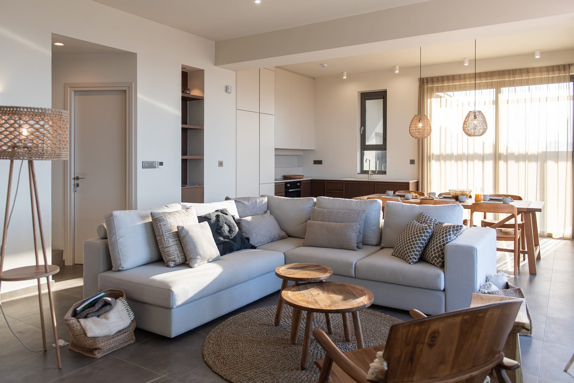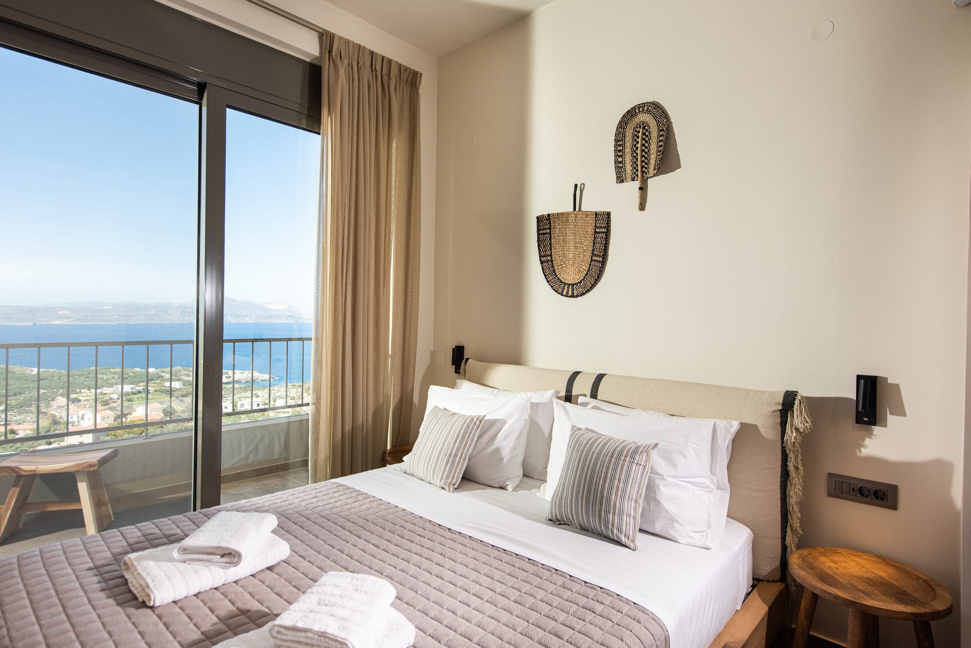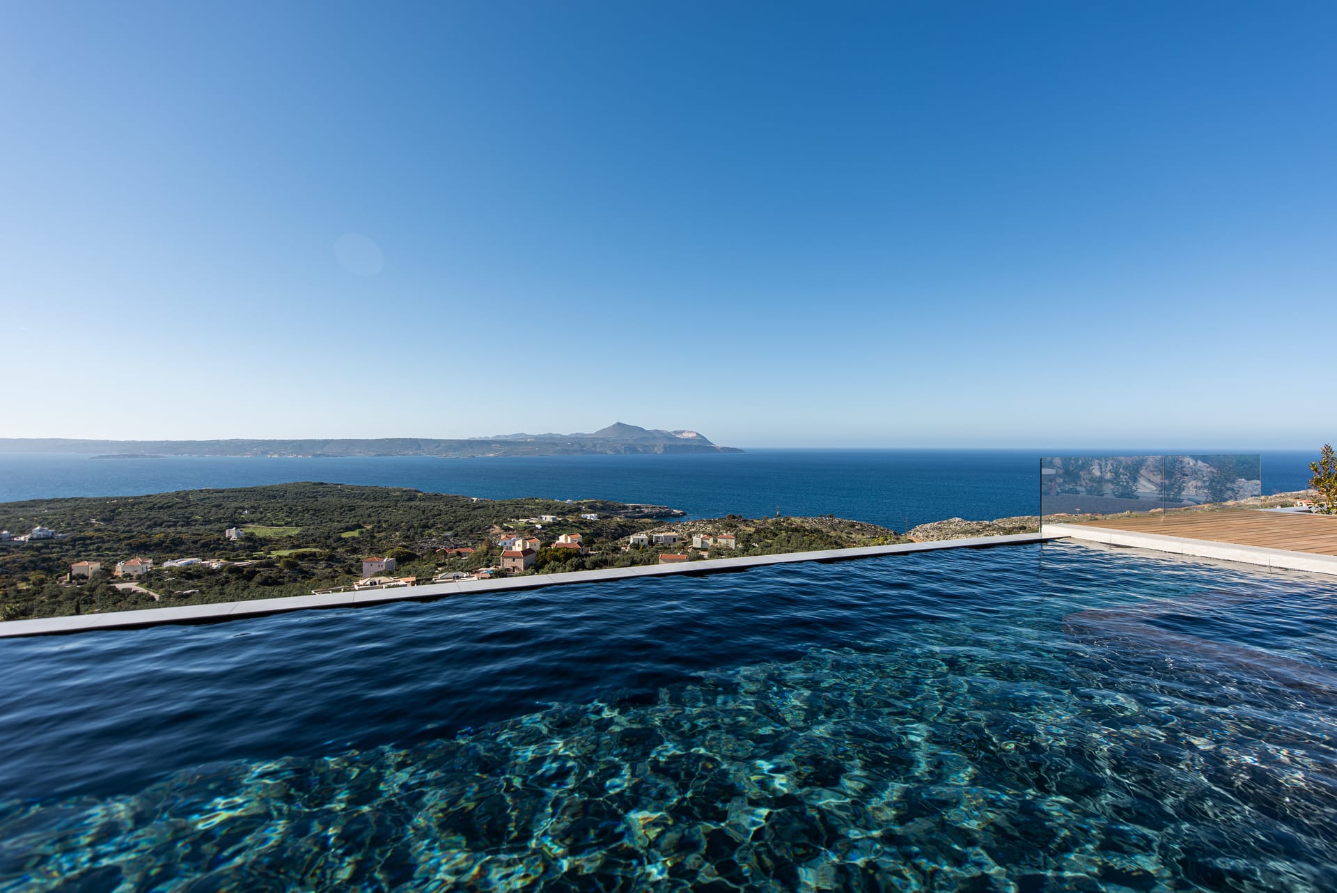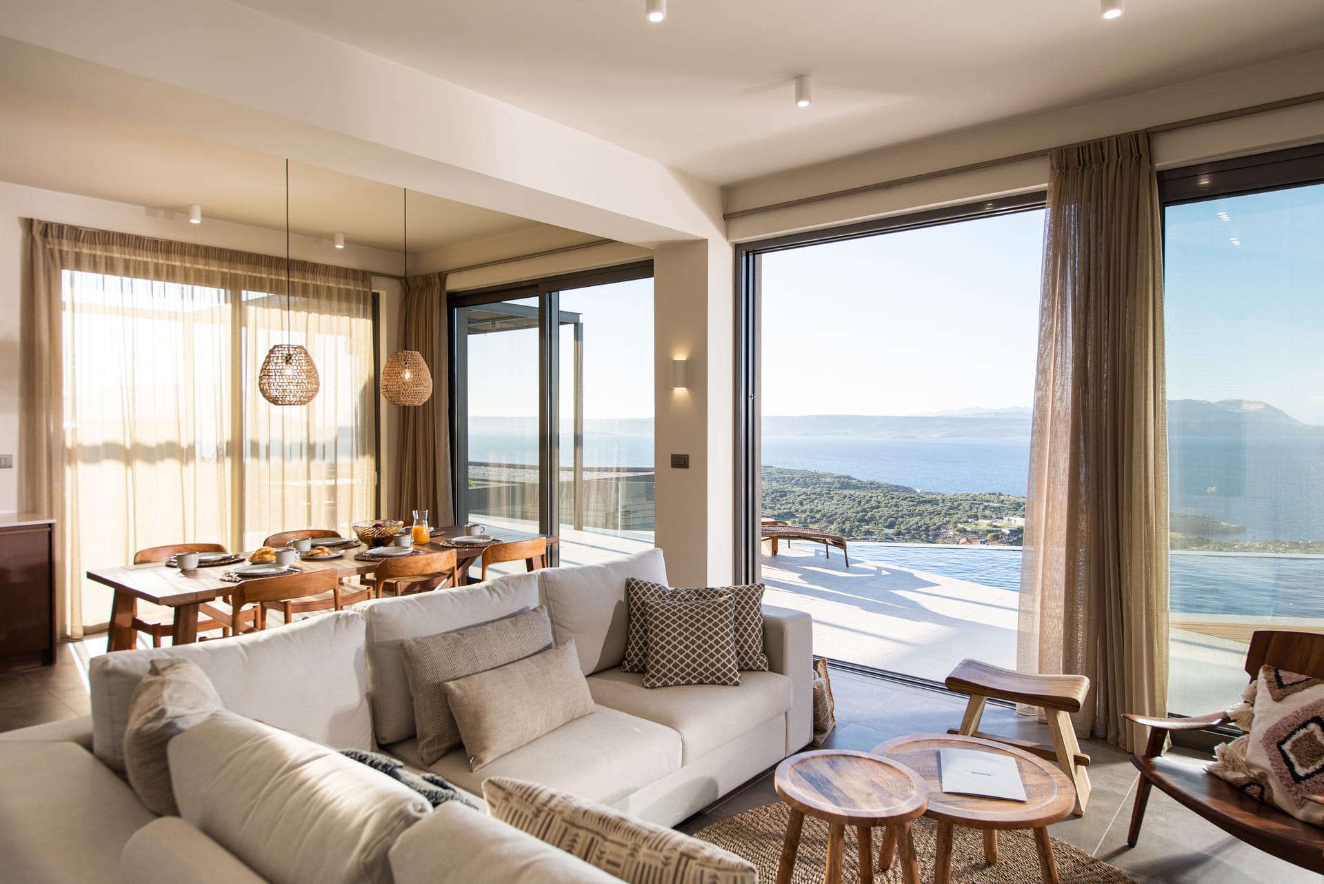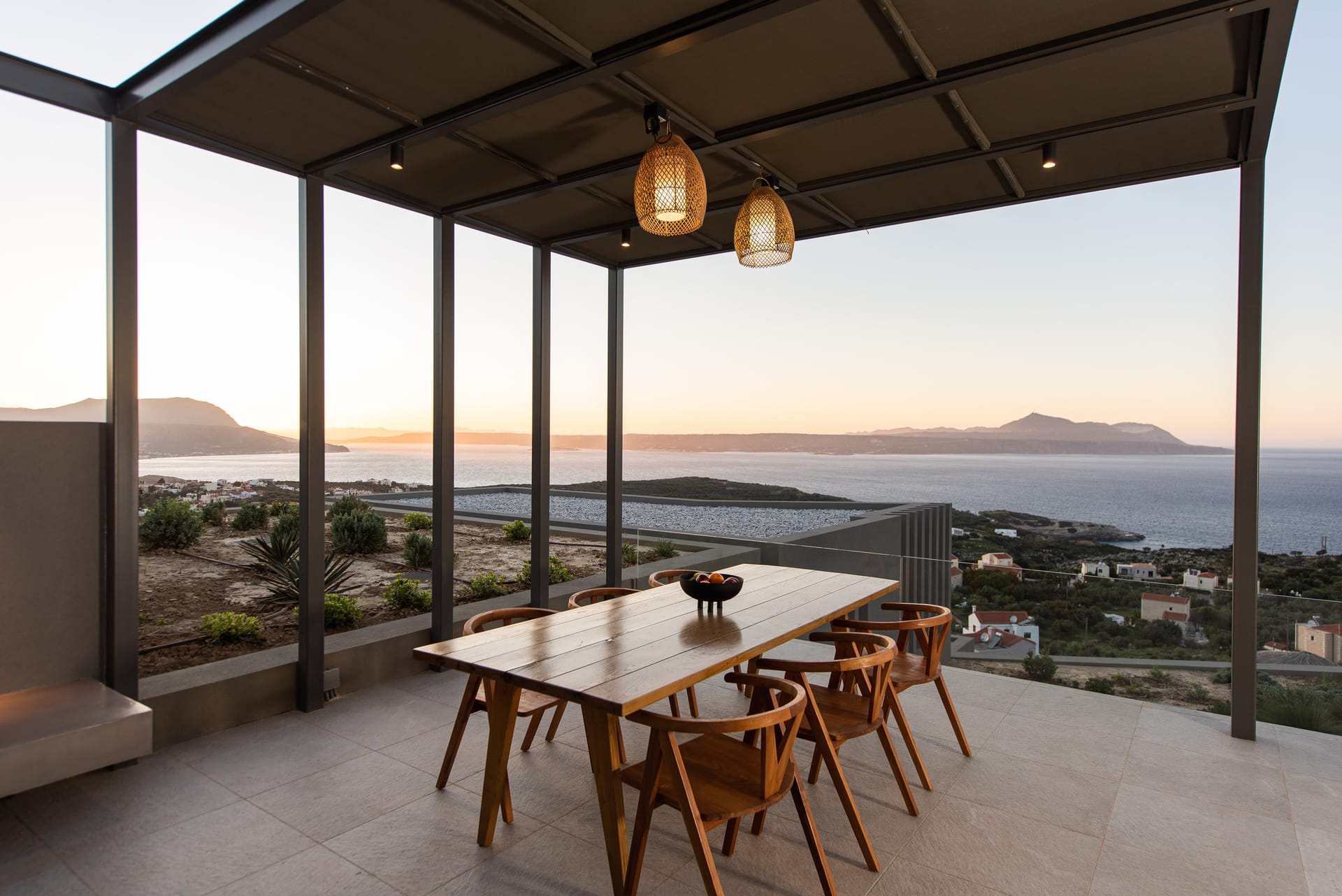 Inside, a spacious open-plan kitchen, dining, and lounge area complements the 5-star experience, providing the perfect haven for families and groups exploring Western Crete.