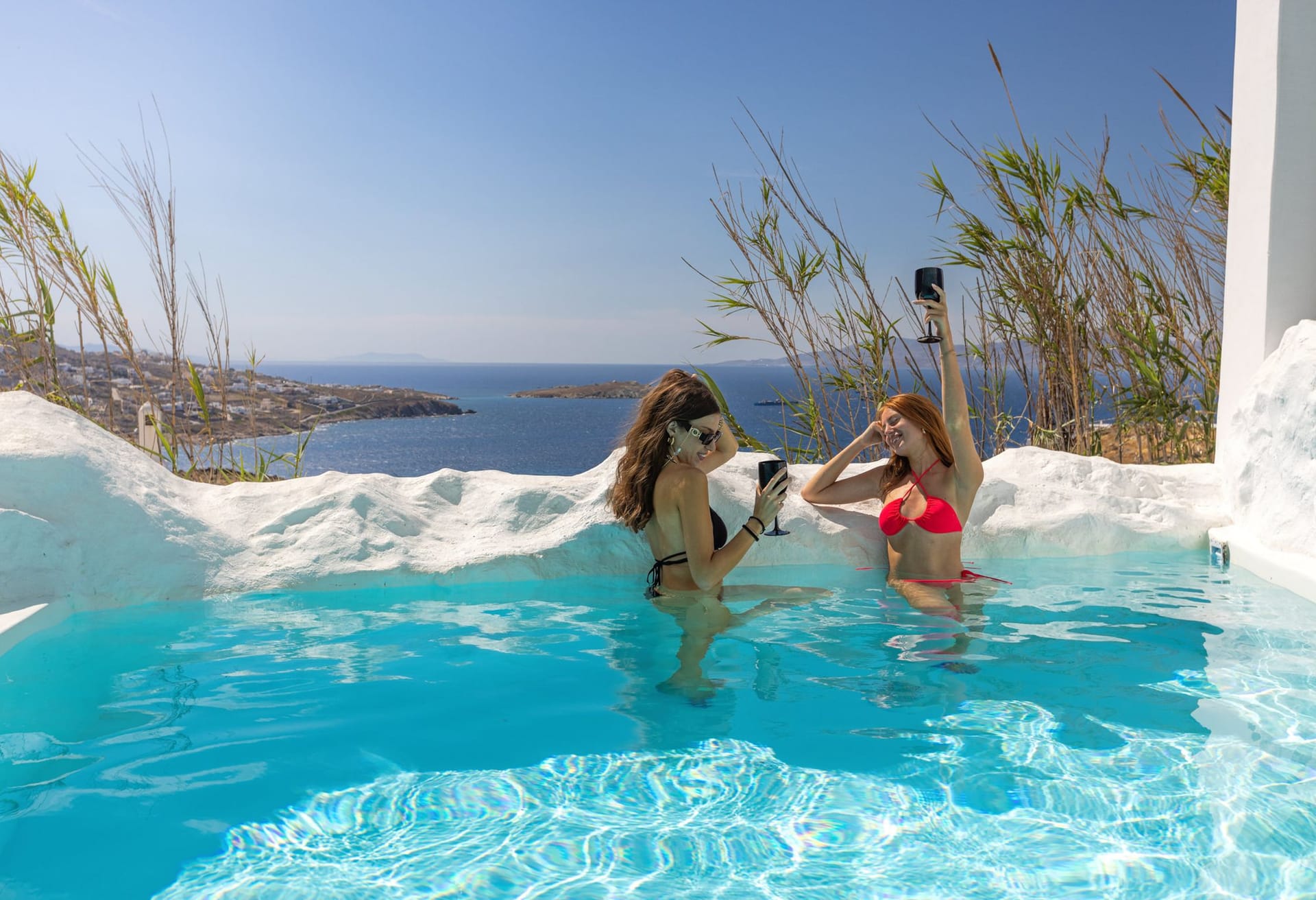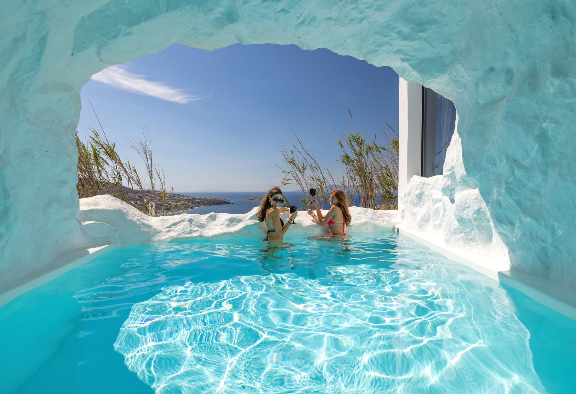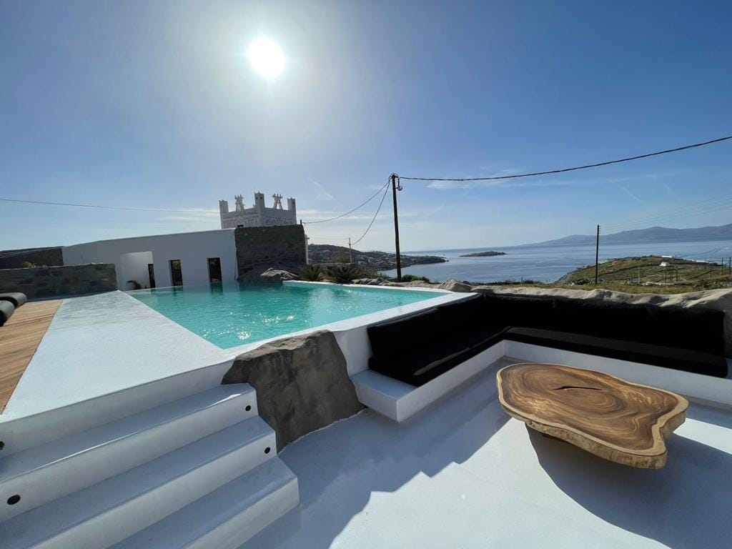 This luxurious Mykonos villa property features 6 deluxe en suite bedrooms with an outdoor private infinity pool, outdoor Jacuzzi and a cave heated pool allowing guests to relax and enjoy every second of their getaway to Mykonos in absolute zen.