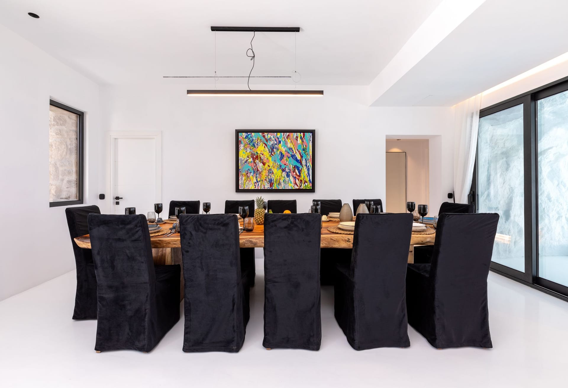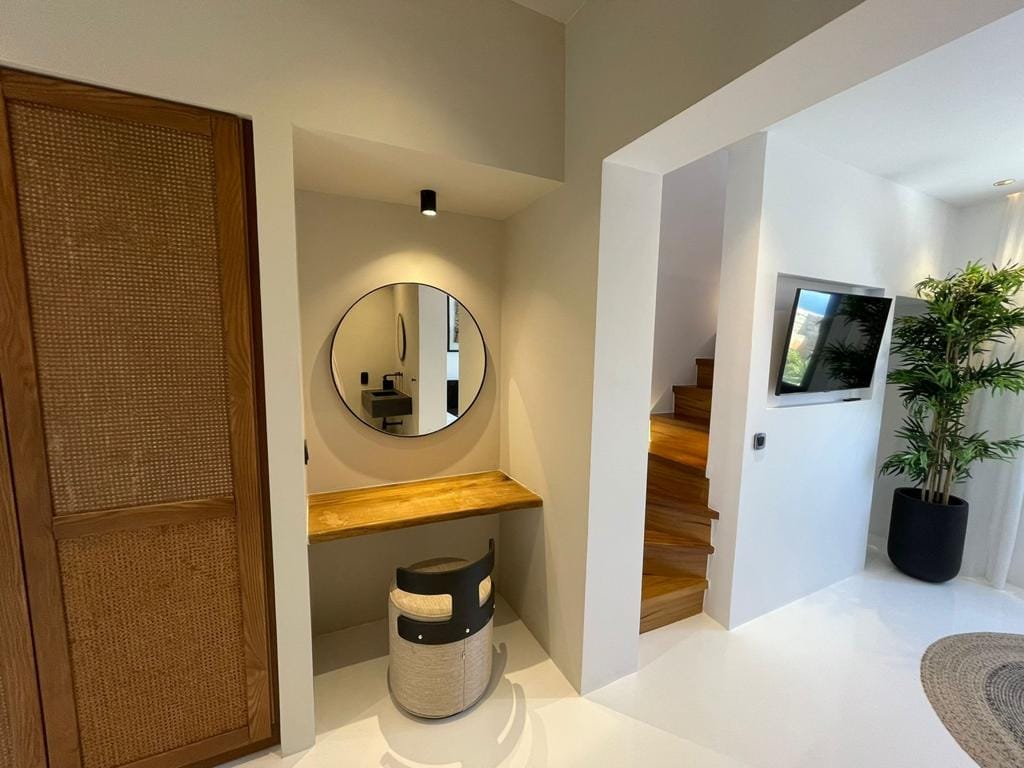 The inside of the property really speaks for itself. The villa ensures pampering moments and intimacy for its loyal quests by being fully equipped to the highest standards and boasting spectacular private and communal areas. All the home comforts you need for your villa are waiting for you. From king-size bed to a fully equipped kitchen.The minimal design and the unique decoration are the perfect excuse to get those fabulous Instagram photos.
