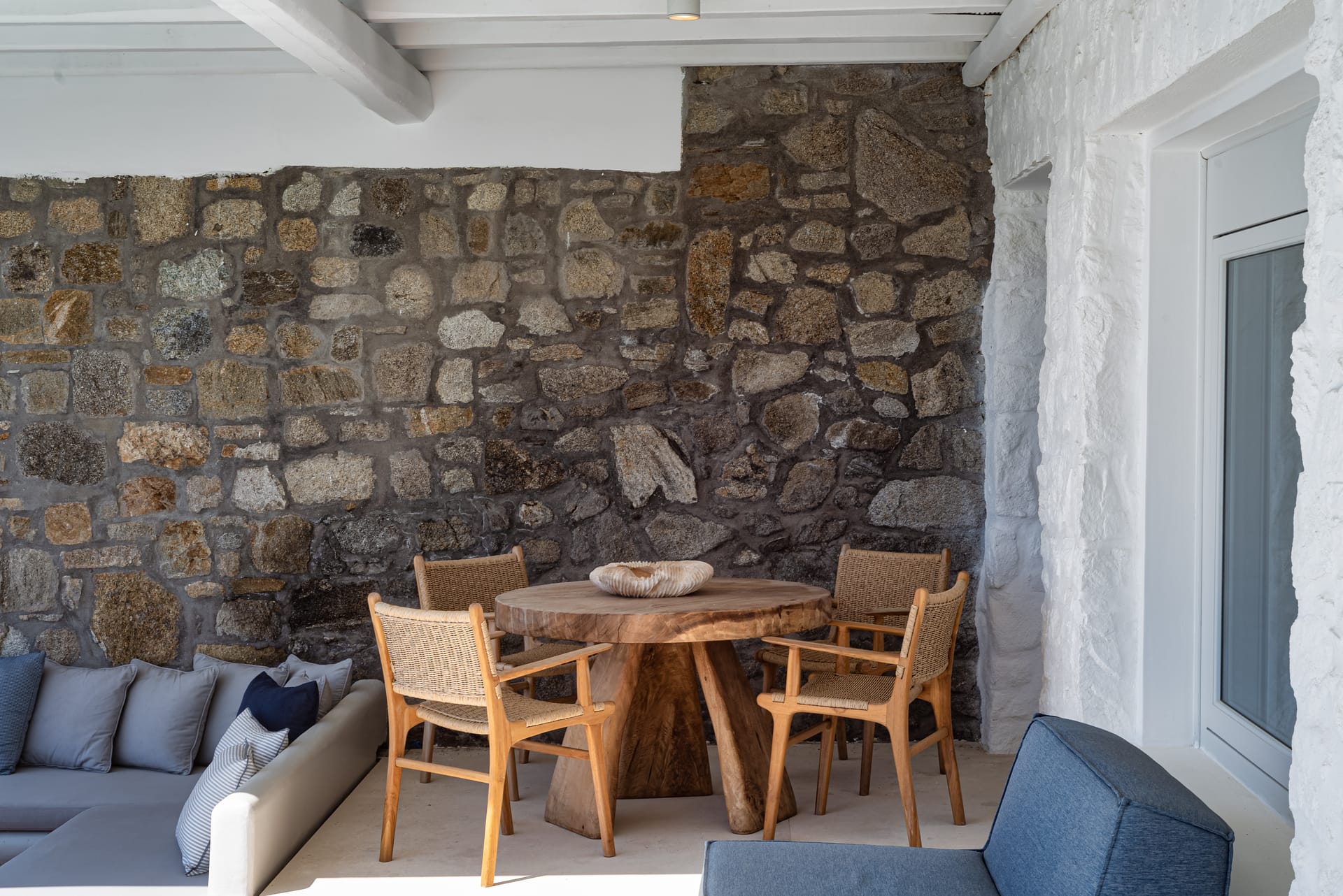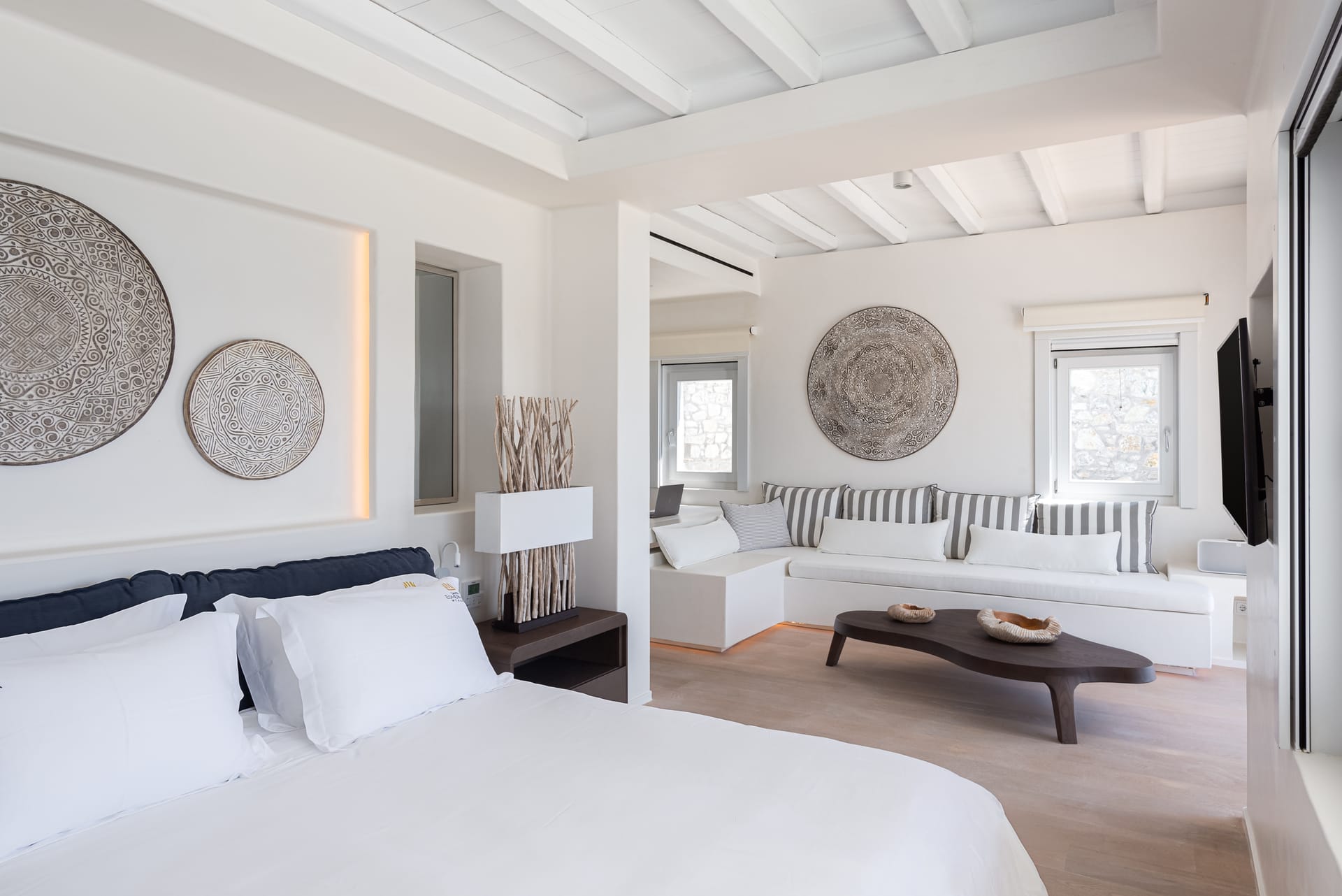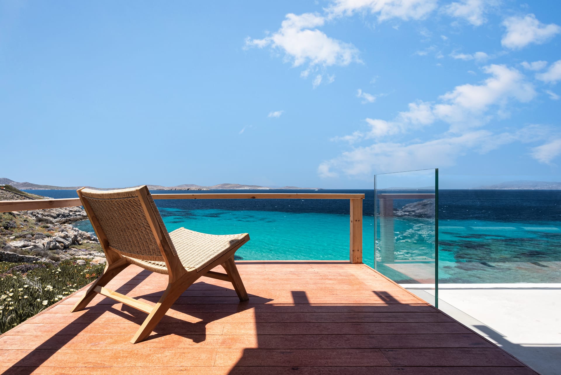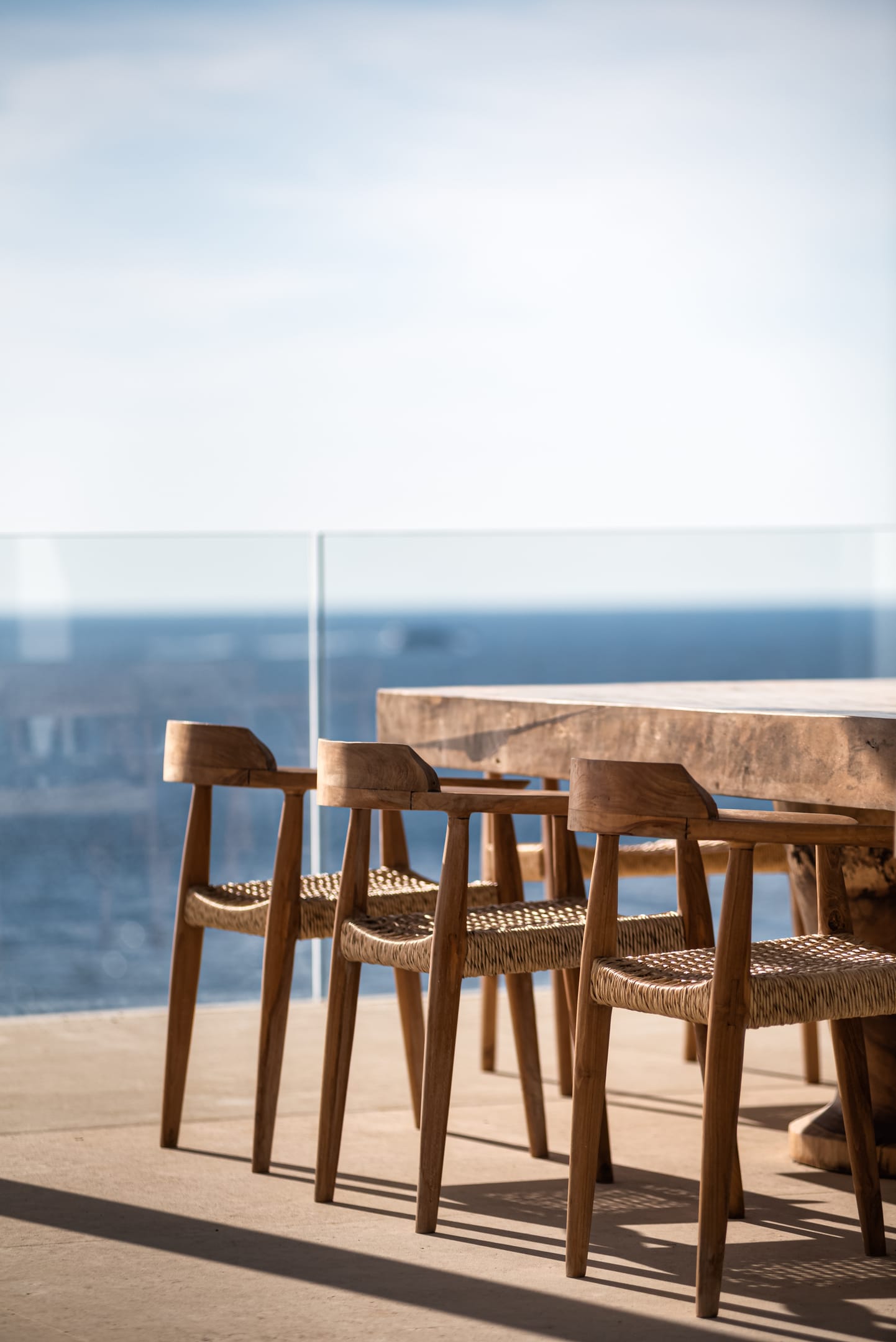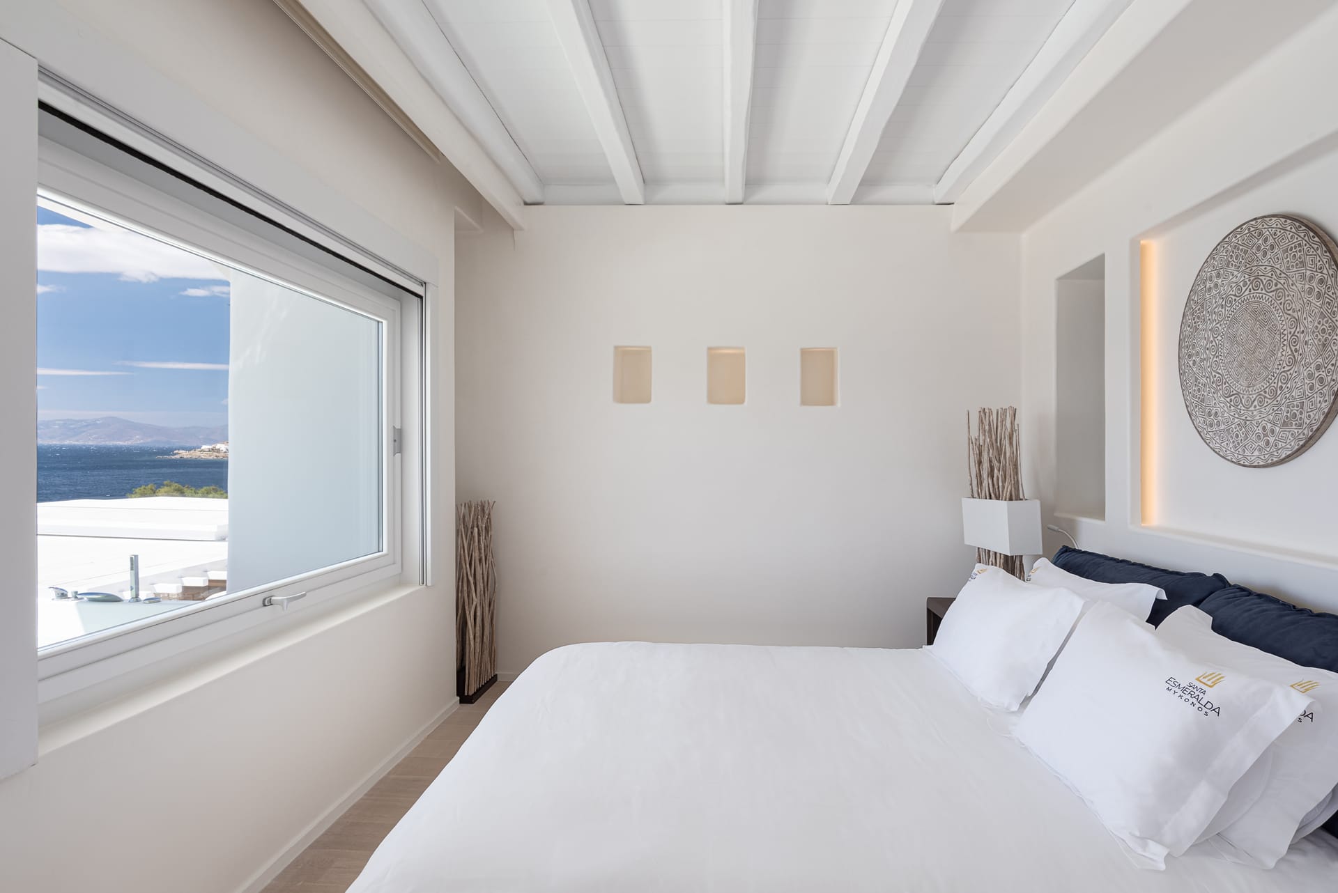 Spanning three levels, the villa comfortably accommodates up to 20 guests across 10 elegant ensuite bedrooms, many of which feature stunning sea views. The interiors exude warmth and refinement, with natural materials, handcrafted decor, and bespoke furnishings creating a serene ambiance.
