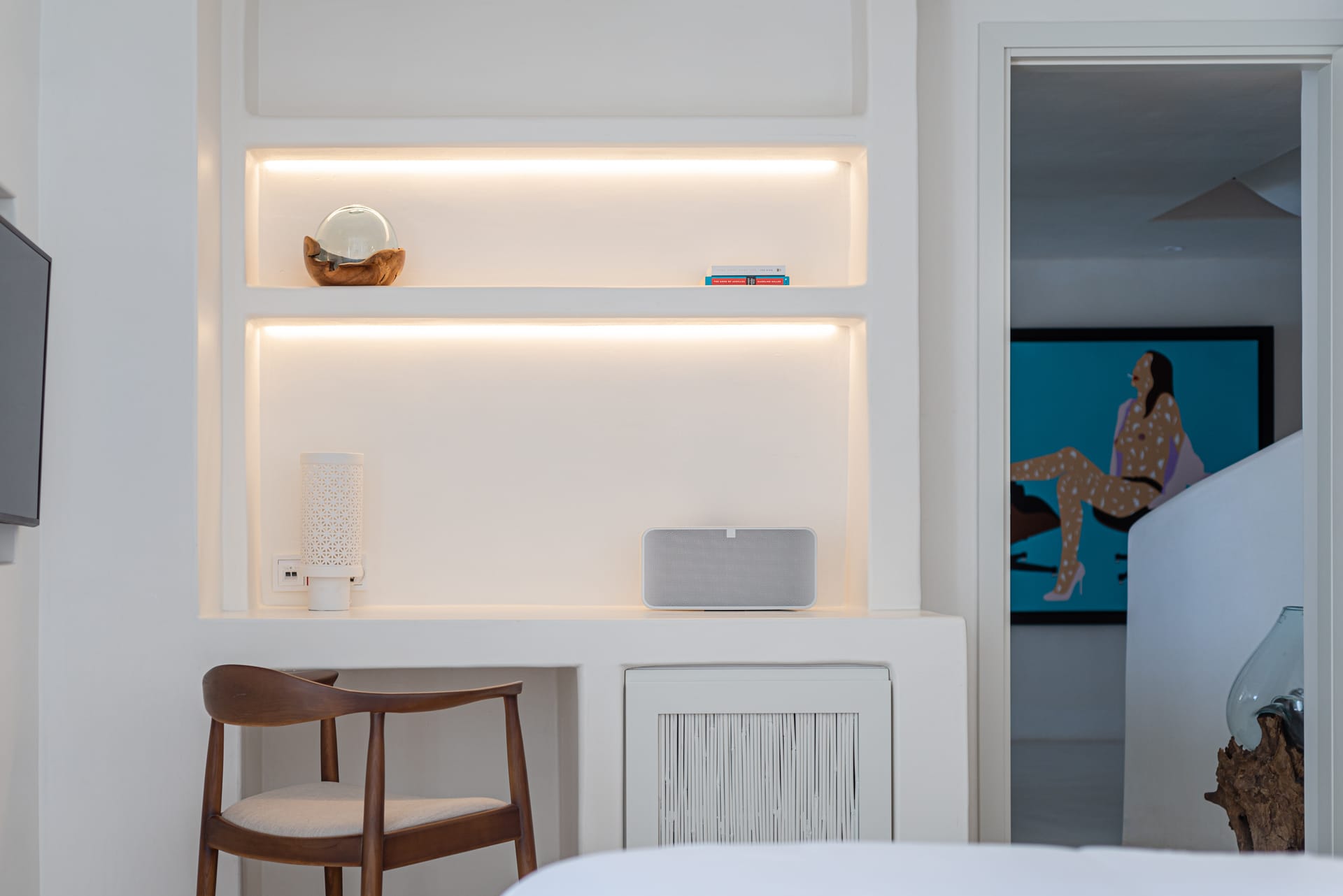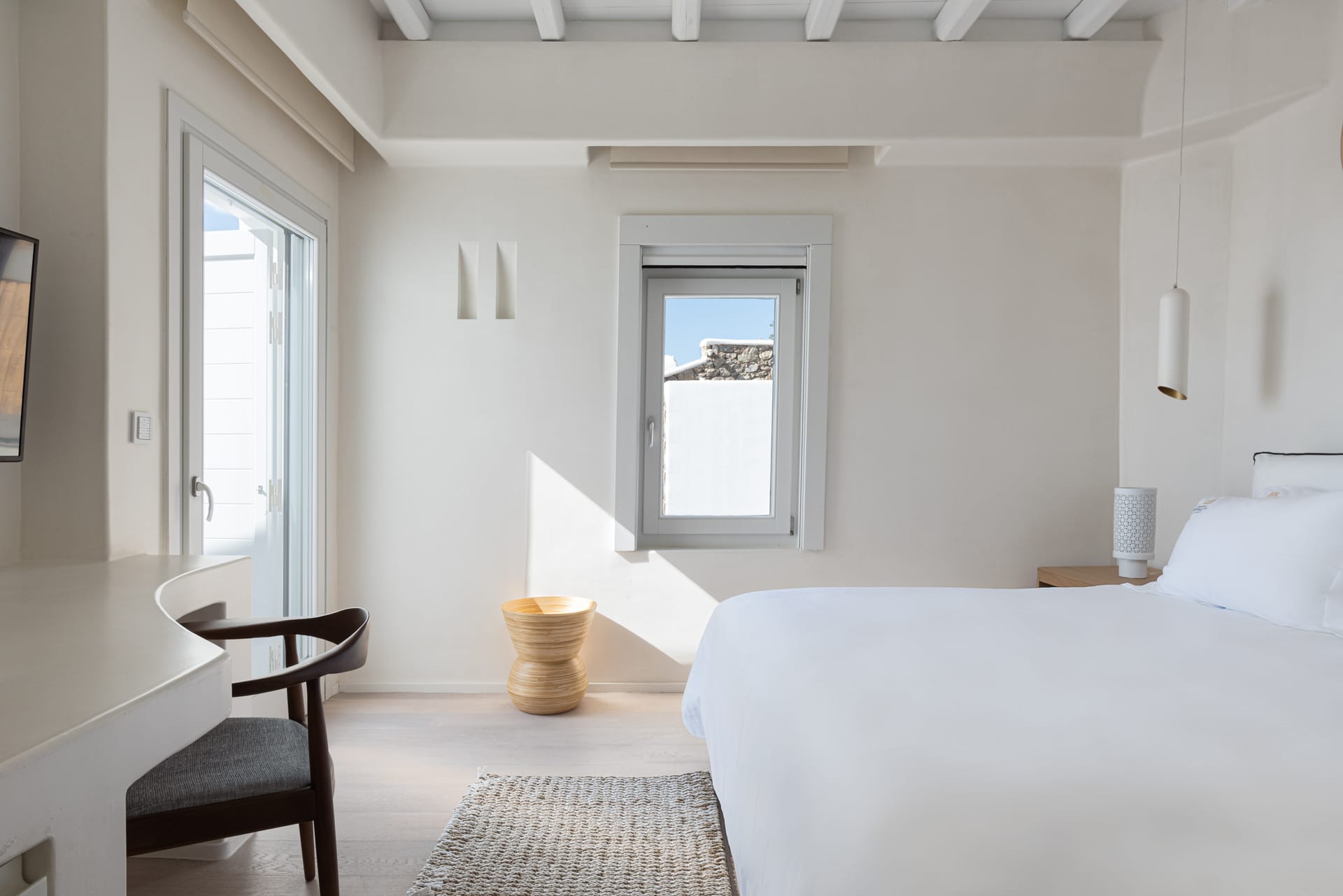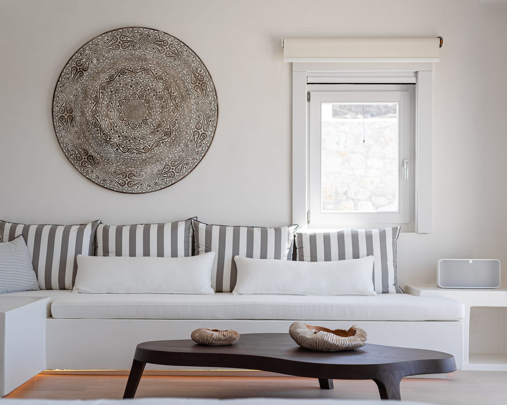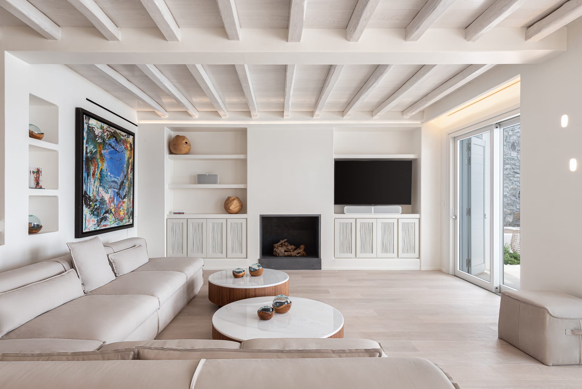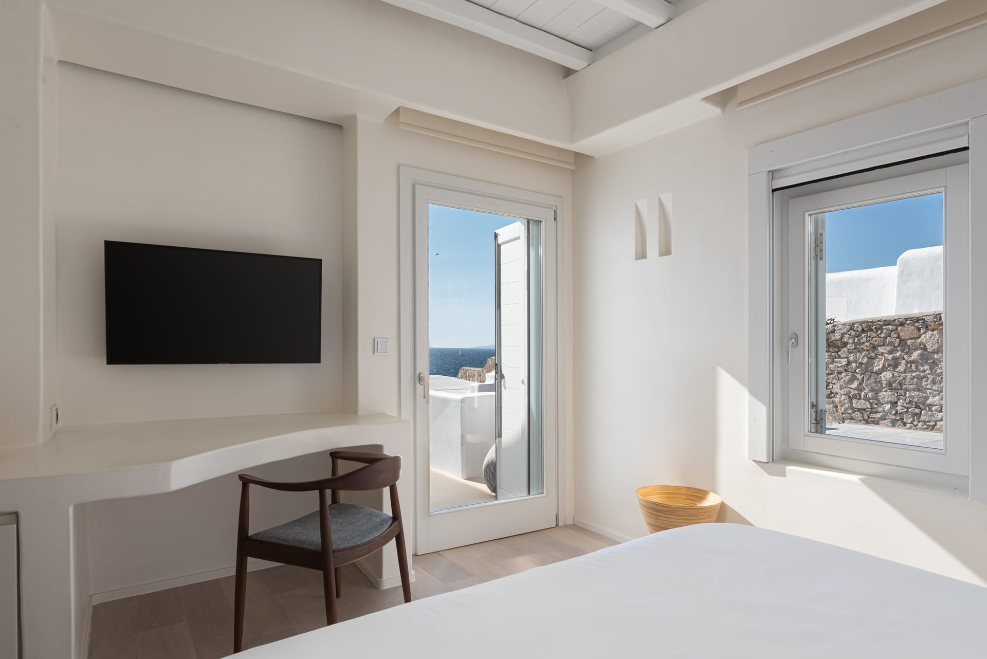 Spanning three levels, the villa comfortably accommodates up to 20 guests across 10 elegant ensuite bedrooms, many of which feature stunning sea views. The interiors exude warmth and refinement, with natural materials, handcrafted decor, and bespoke furnishings creating a serene ambiance.