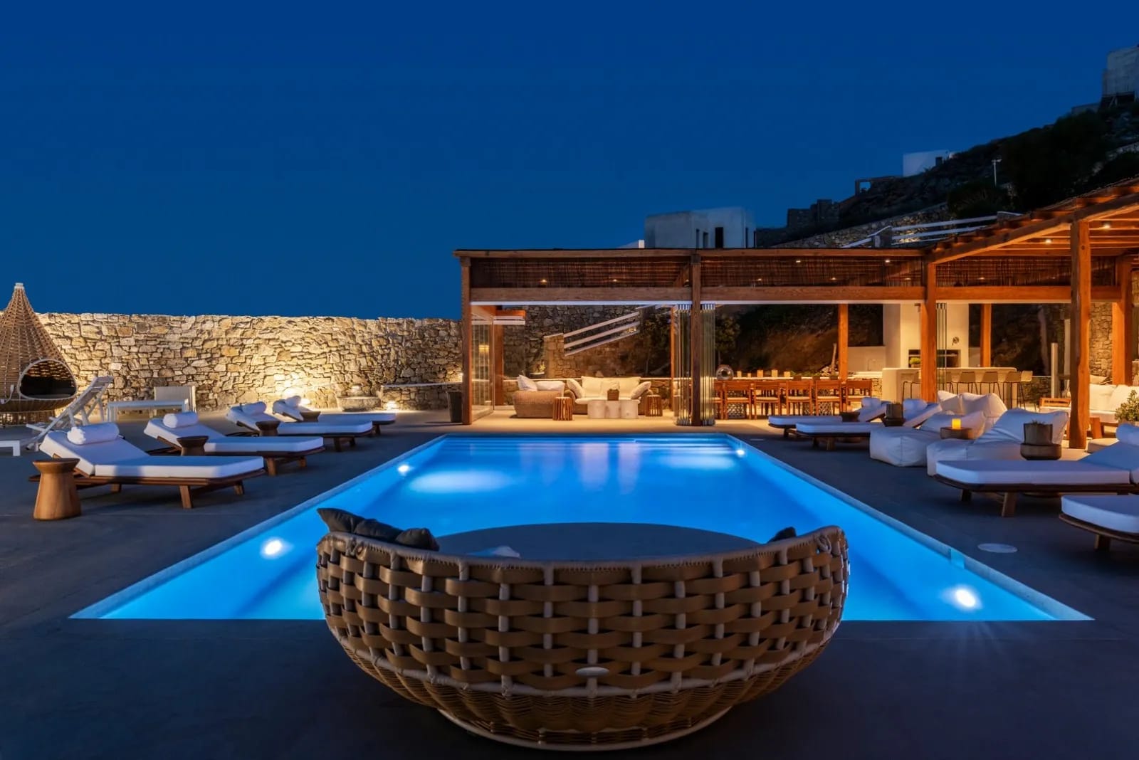 Perched atop a vantage point on the island, Villa Hilltop provides an unobstructed and awe-inspiring connection to the vast expanse of the Aegean Sea and the endless Mykonos skies. This modern architectural gem is a testament to refined design and meticulous craftsmanship, setting a new standard for luxury living on this renowned Greek island.