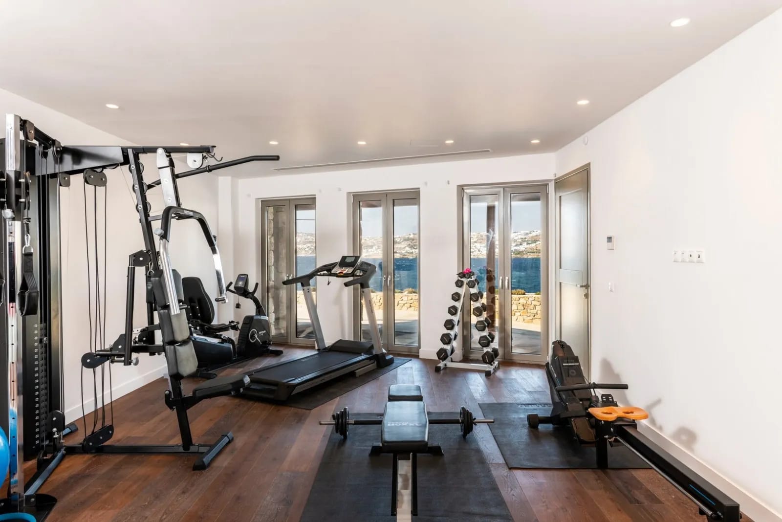 The gym room was designed to give the utmost experience to gym lovers by covering anypossible need. While the room sees over the Aegean Sea, we have furnished it with latest technology exercise equipment, flat tv, and sound system.