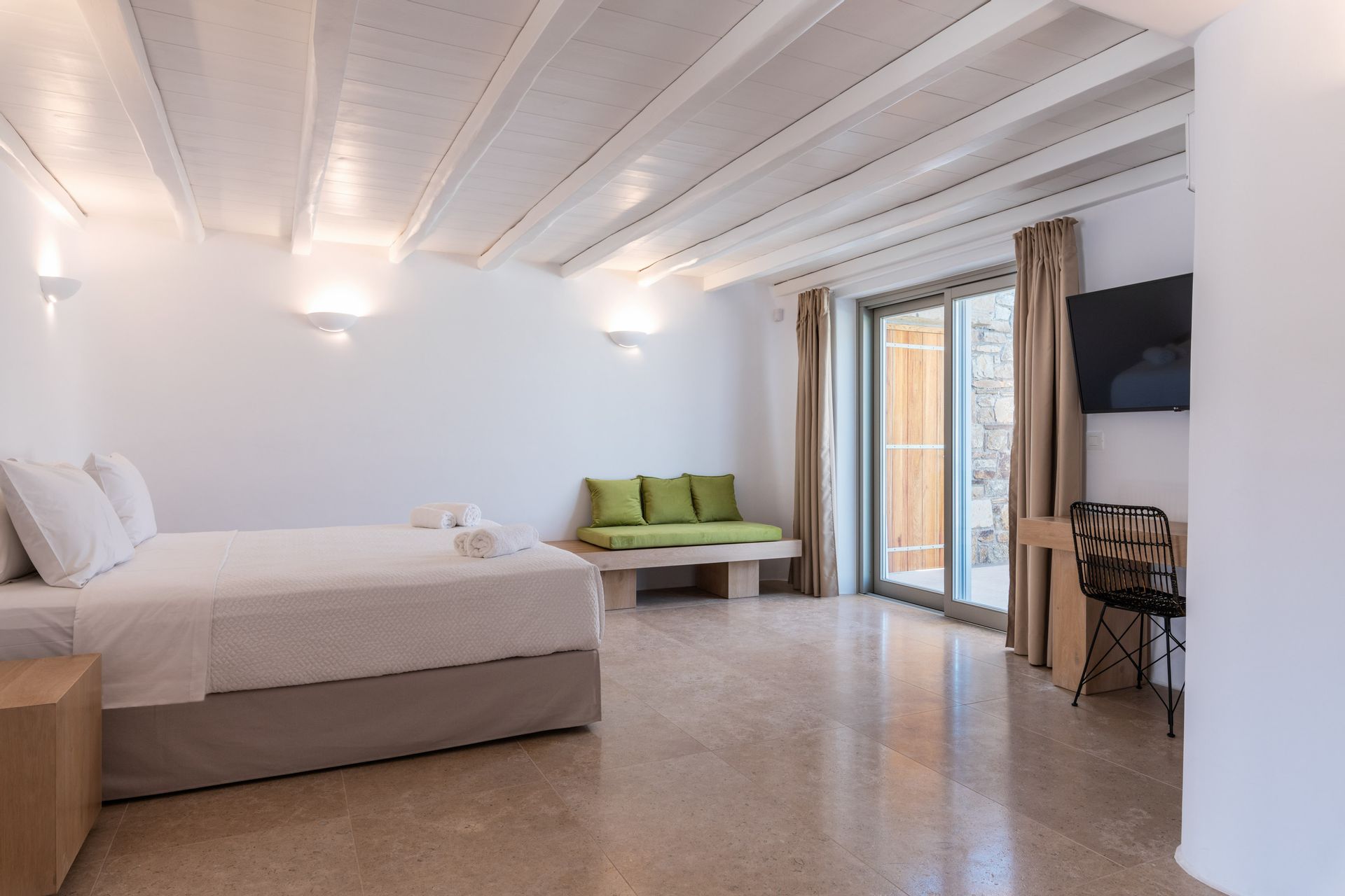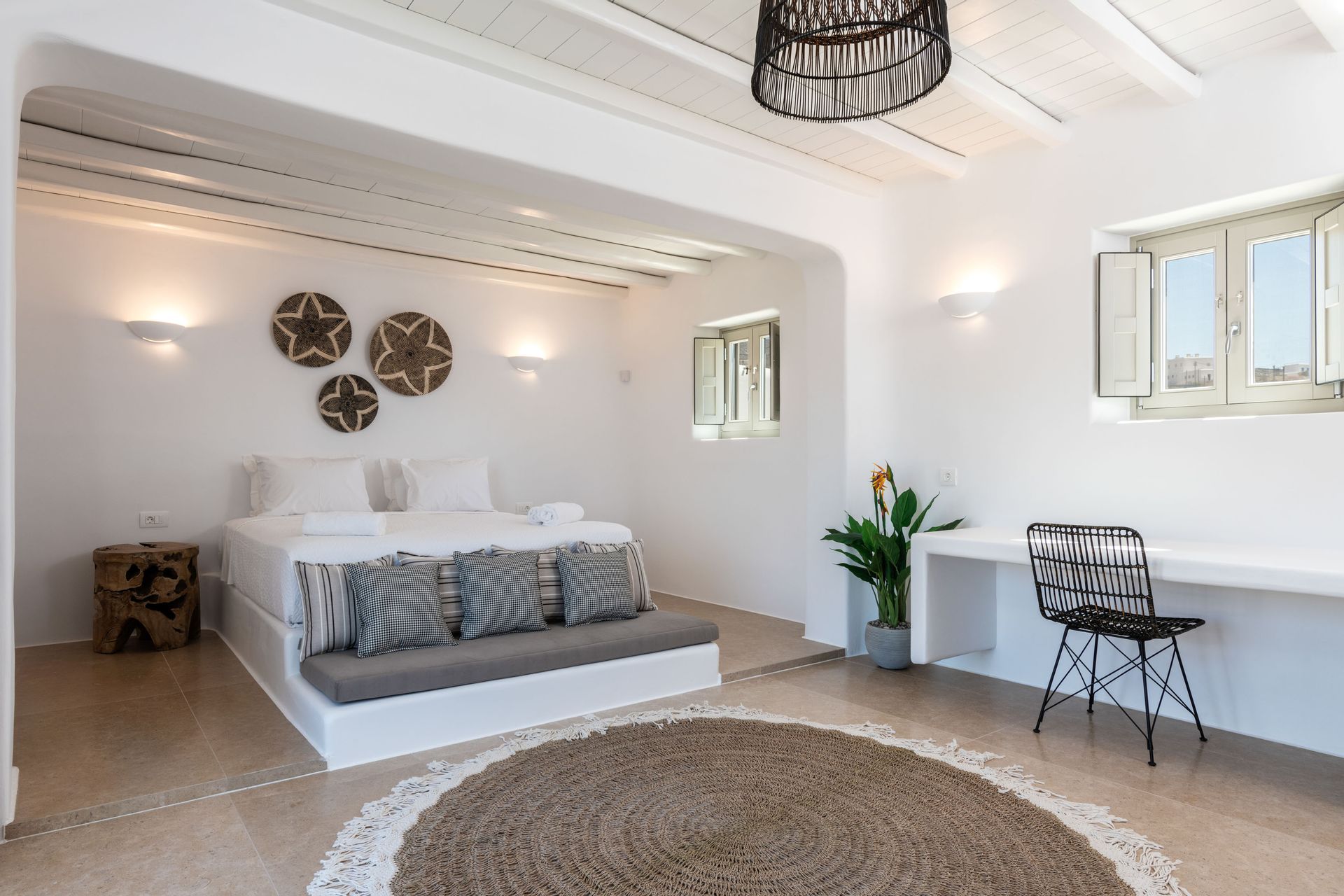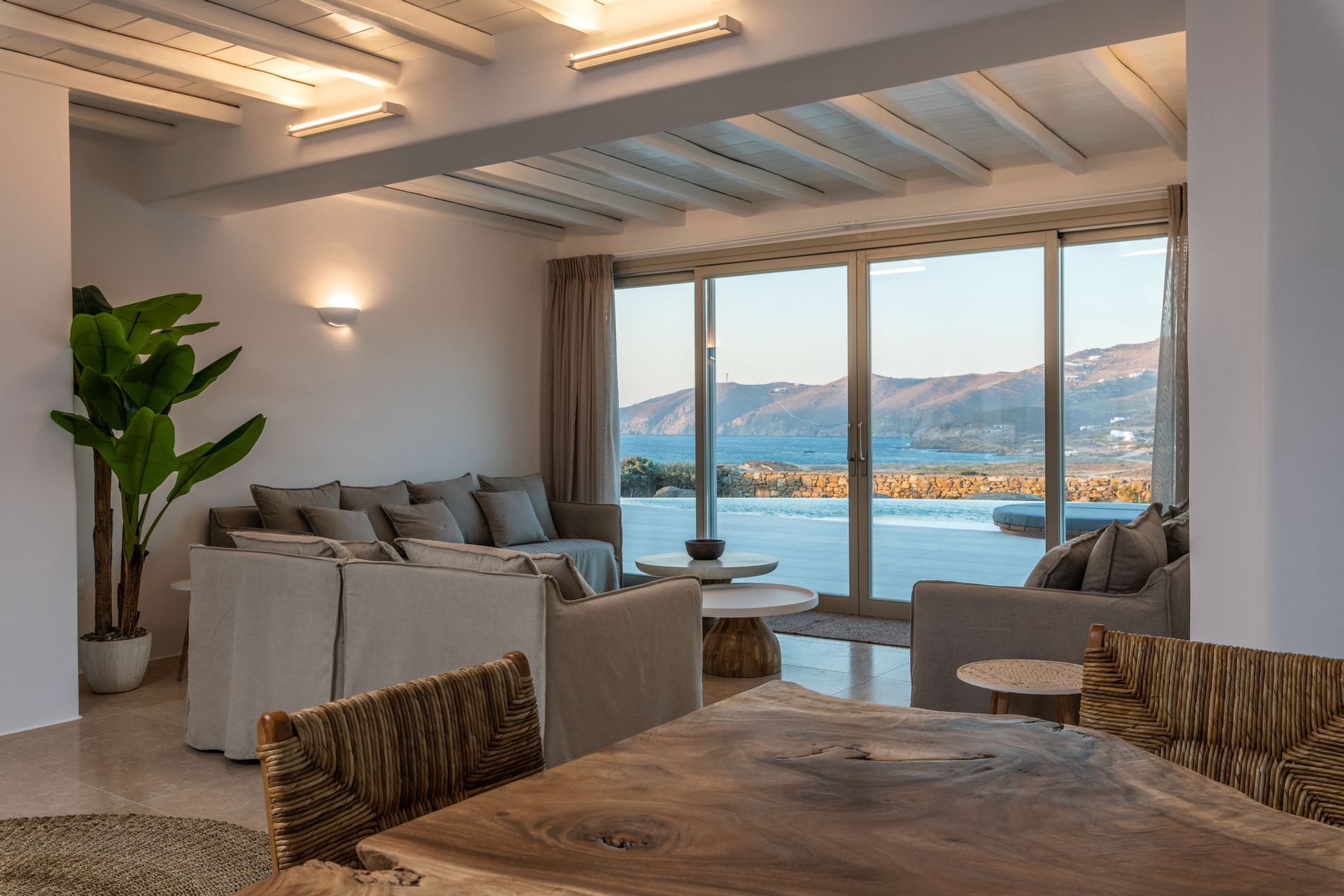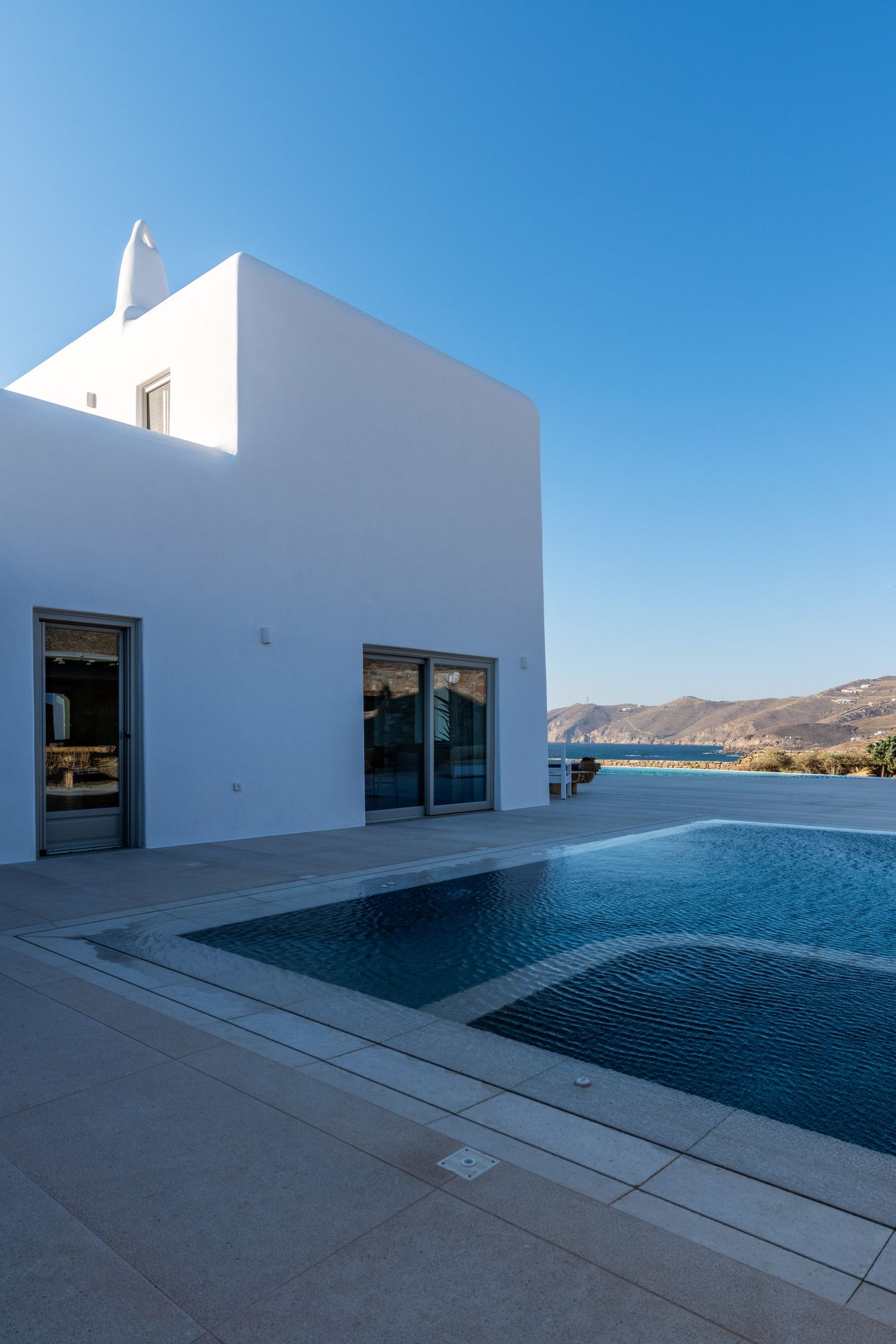 Villa Marylin is a brand new villa, which was built in 2020. Located among fields above Ftelia Beach 7 mins drive from Mykonos town. The property extends on a plot of 1500m2 with outstanding sea view the northern Aegean Sea.