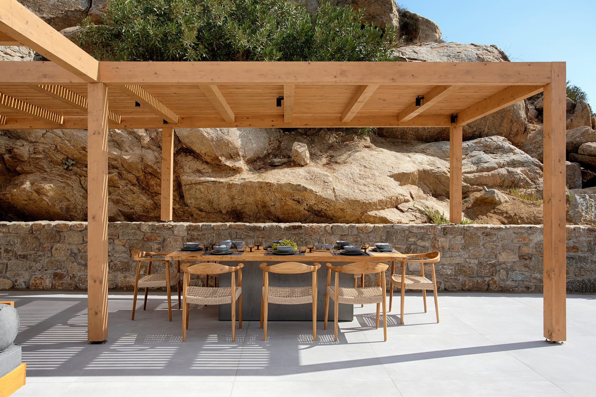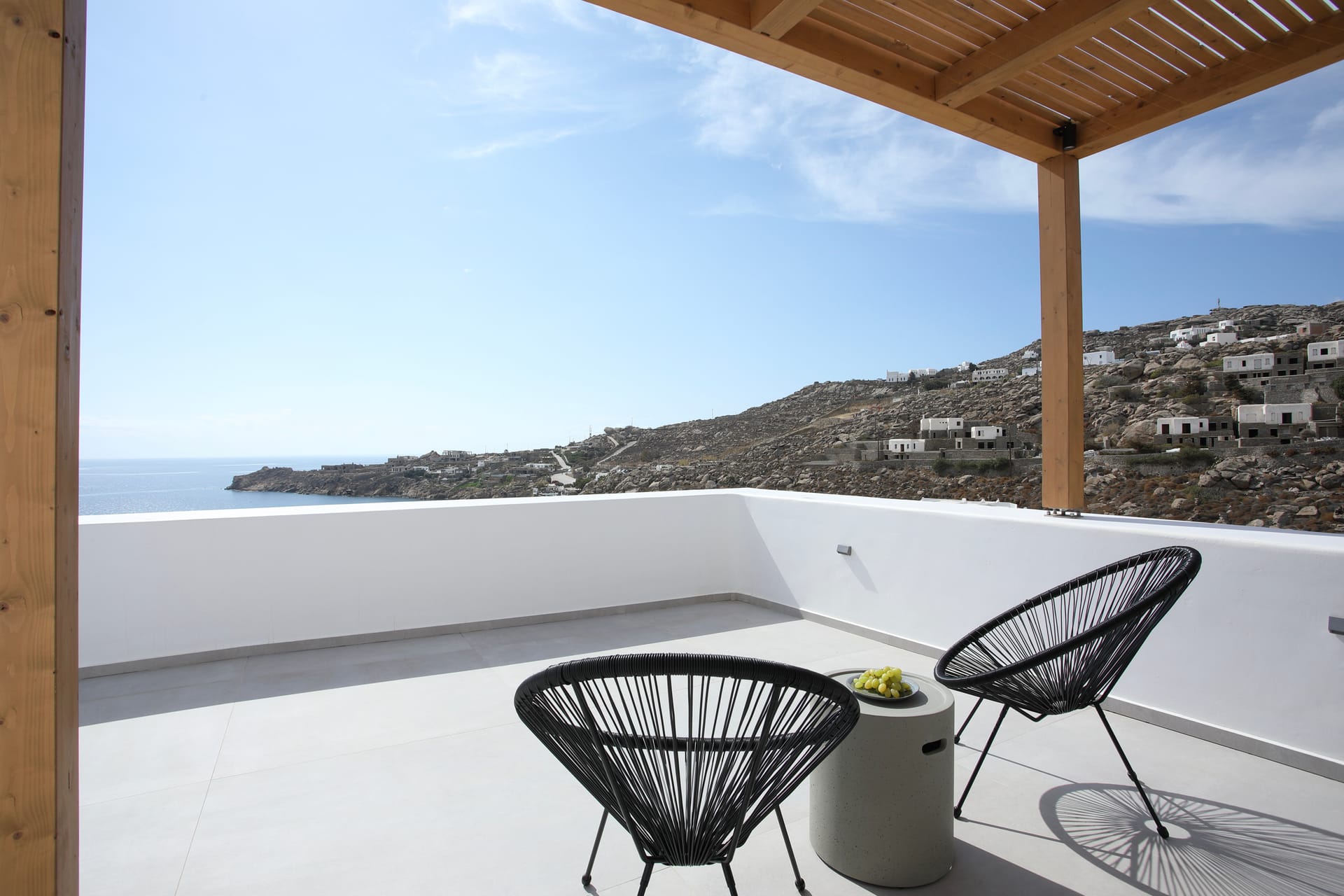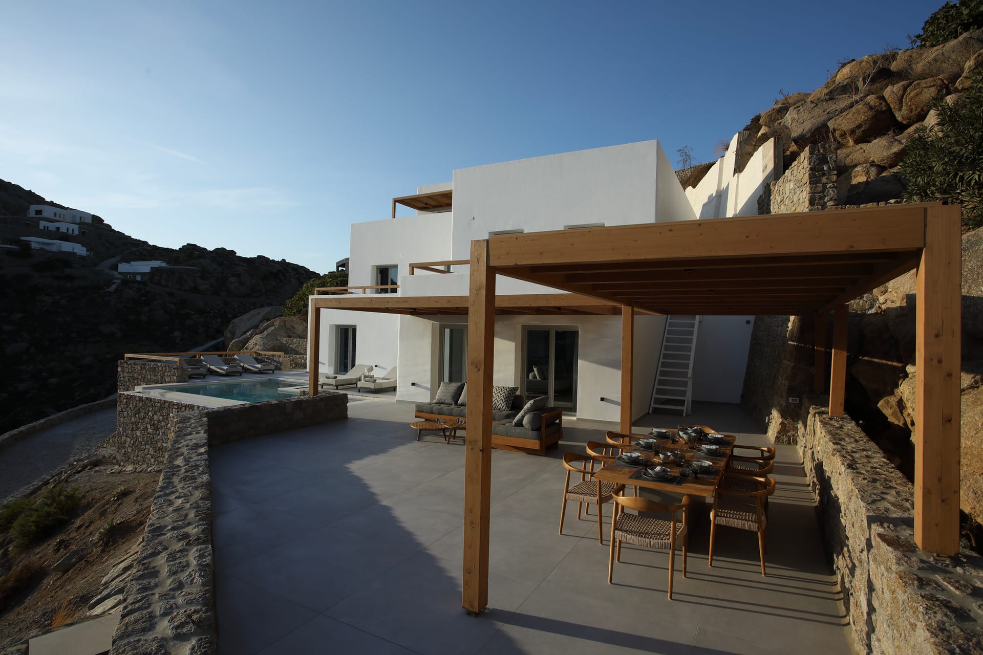 Perched on a rocky hillside just a short two-minute walk from the world-famous Super Paradise Beach, Villa Paradise is a brand-new luxury retreat that perfectly balances modern elegance with authentic Cycladic charm. Its elevated position offers uninterrupted, picture-perfect views of the shimmering Aegean Sea and the golden curve of Super Paradise below, stretching toward the distant island of Naxos.