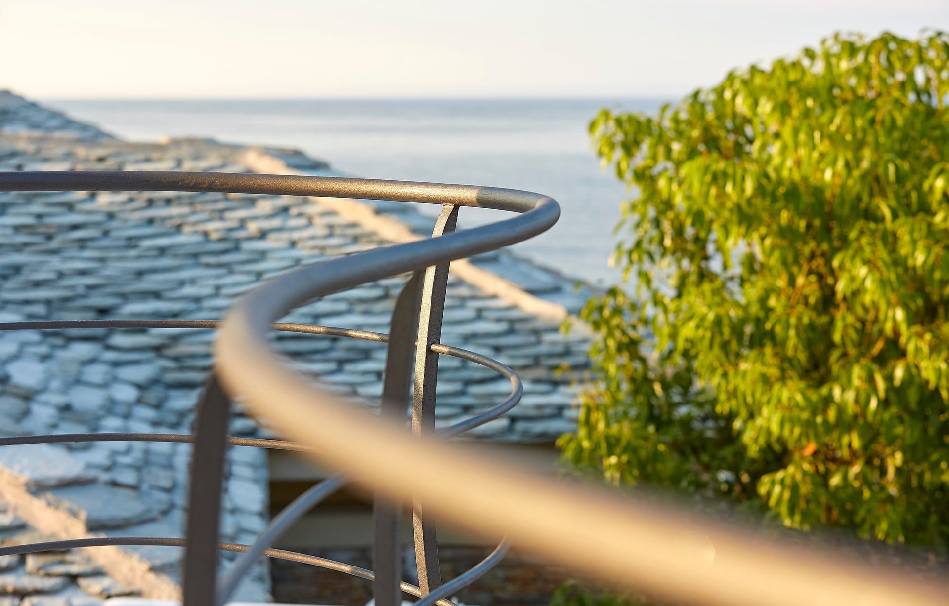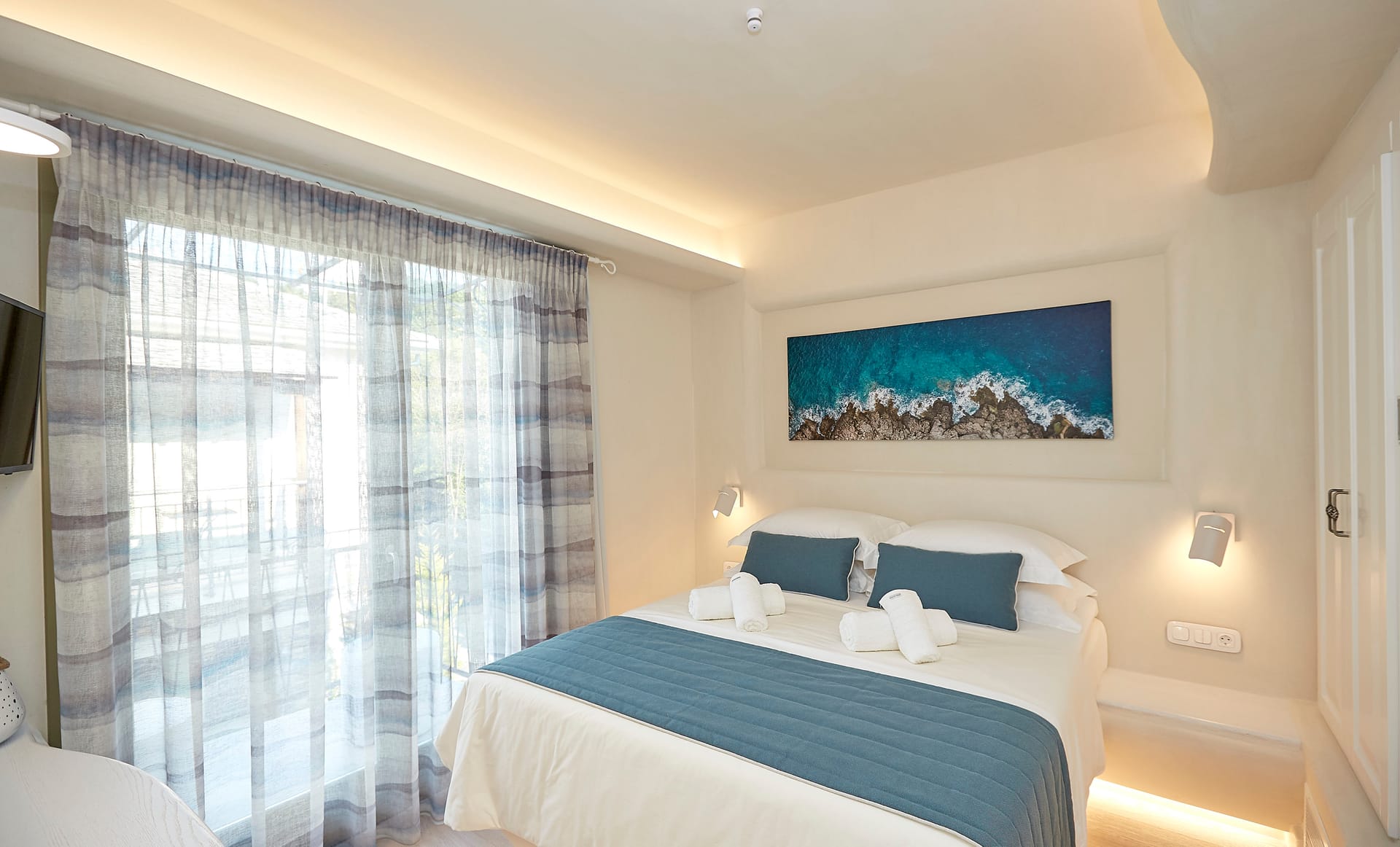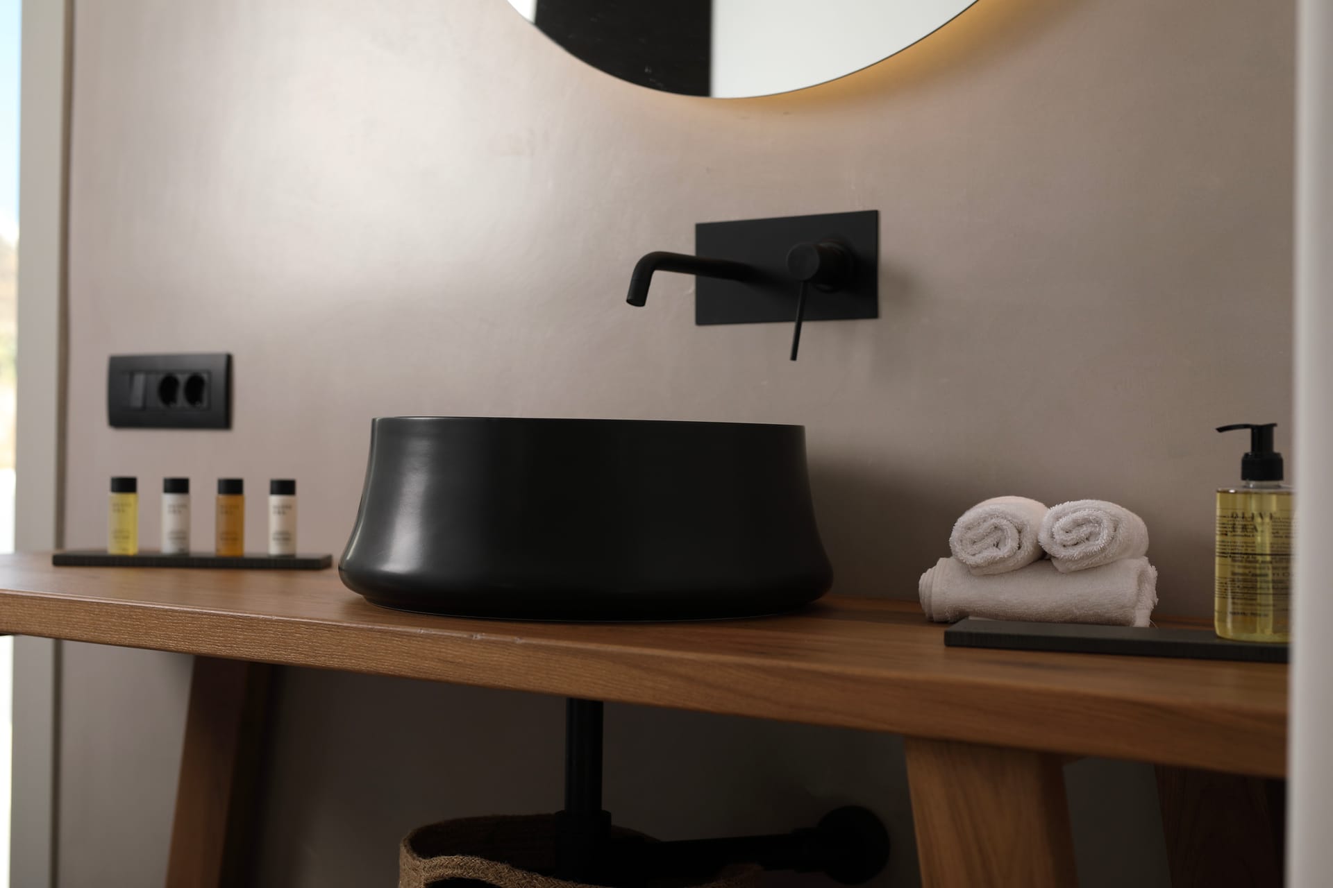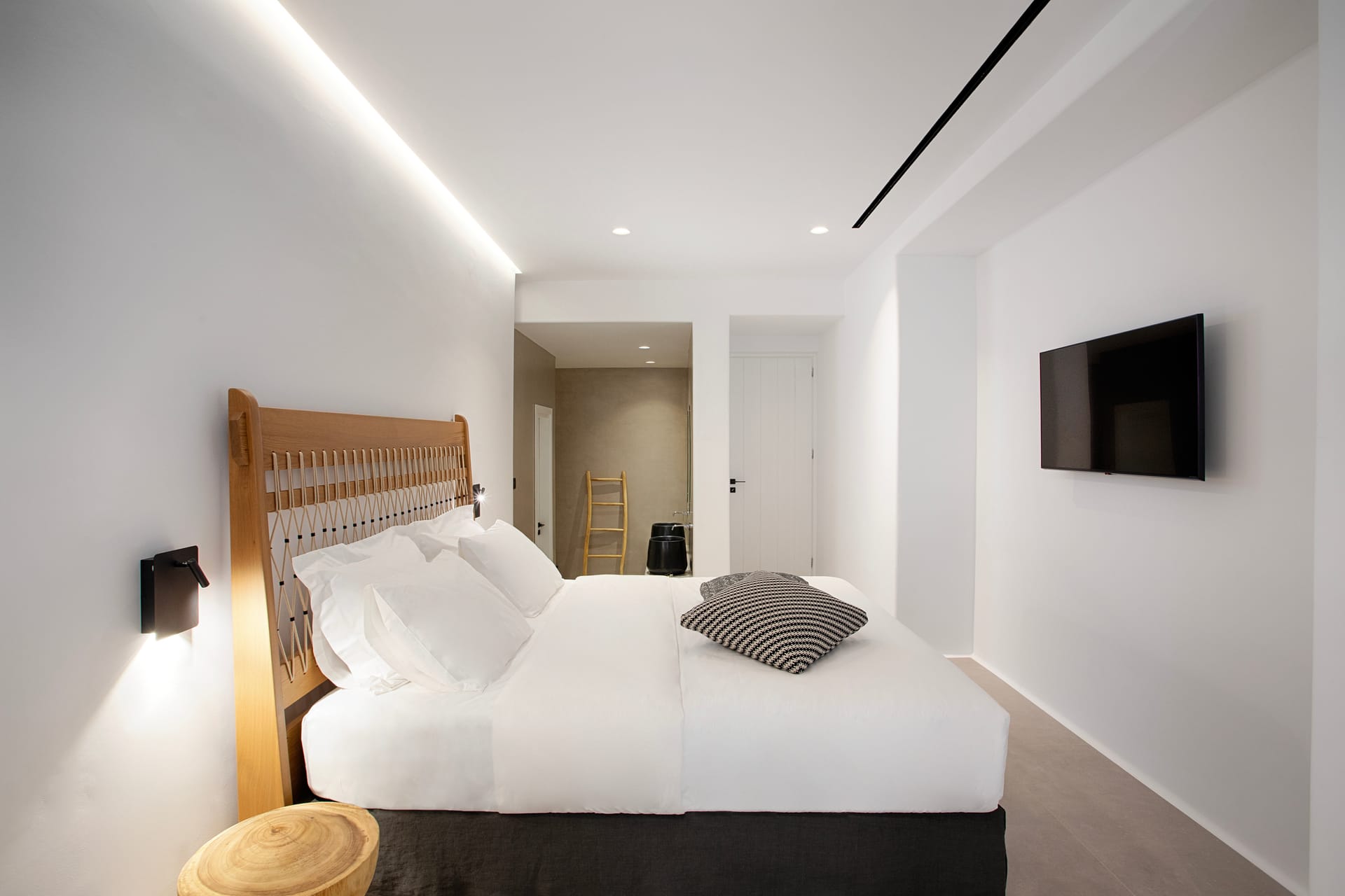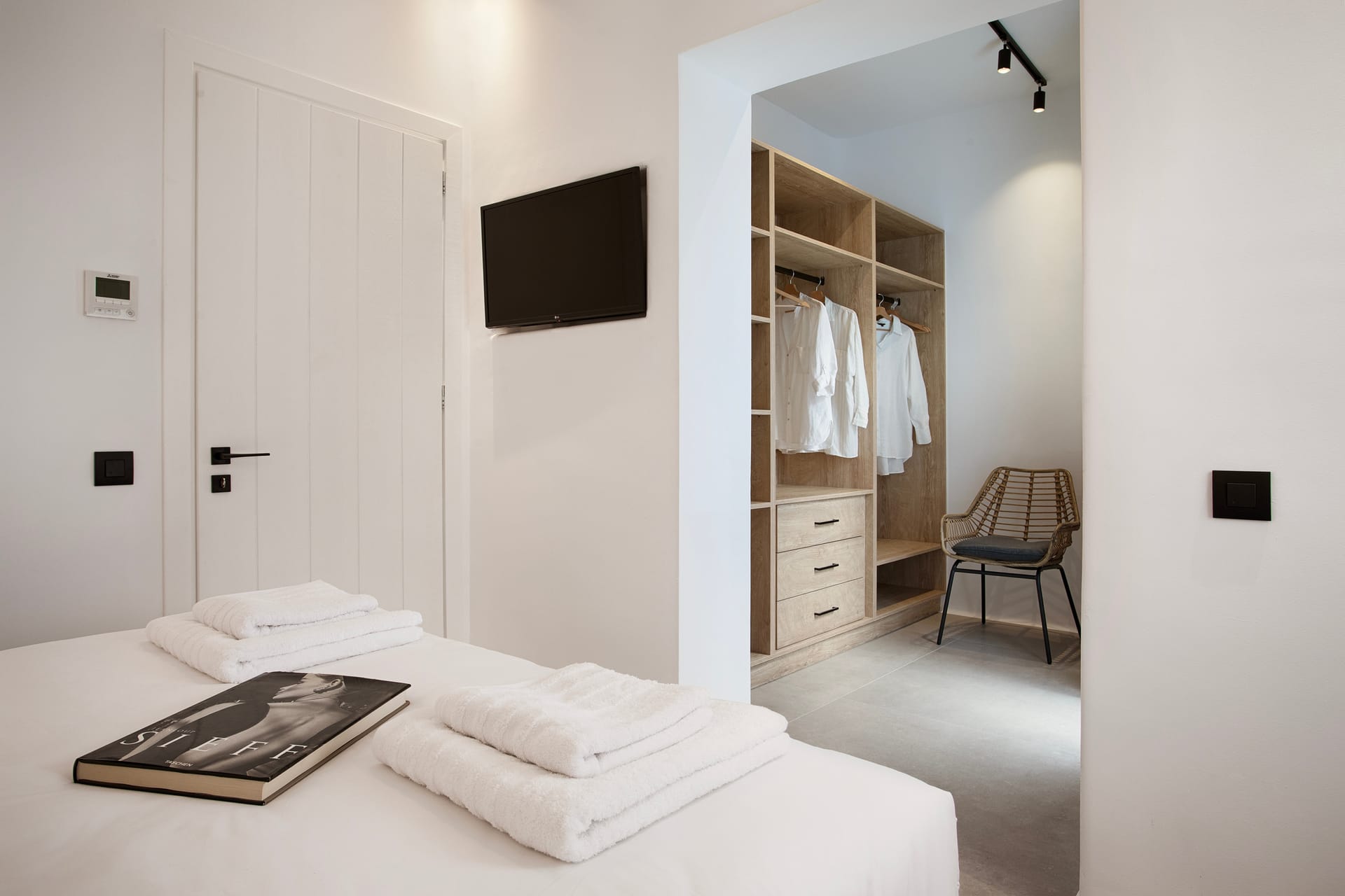 Designed in minimalist white and soft gray tones, accented by warm natural wood, the villa exudes a tranquil and airy atmosphere. Spread across three levels, it features five en-suite double bedrooms, three with private terraces and captivating sea views, plus a private single en-suite guest room with its own entrance for added privacy.