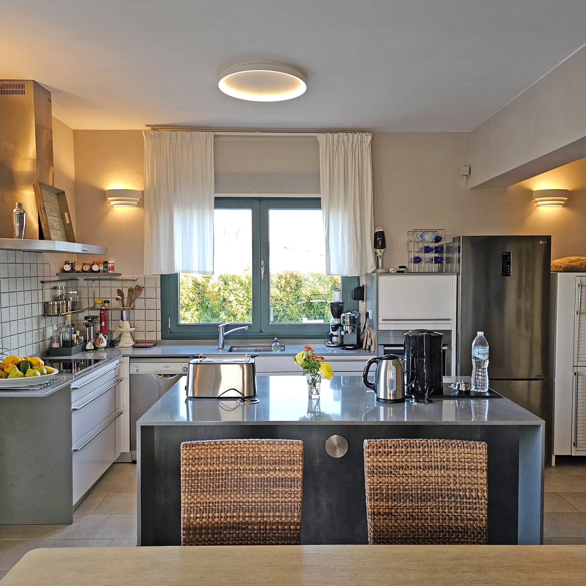 4 bedrooms, kitchen area, living room, basement, terrasses