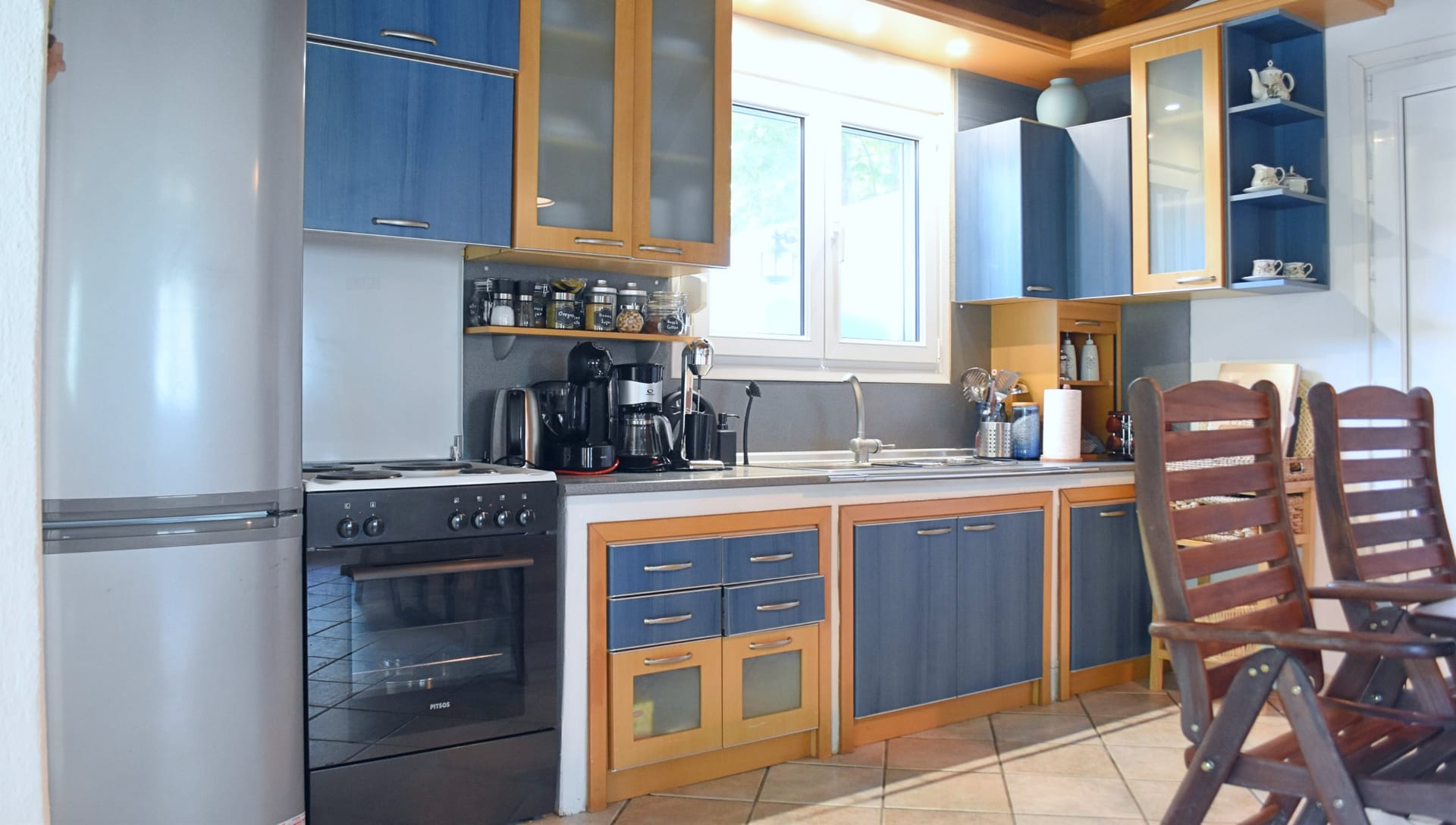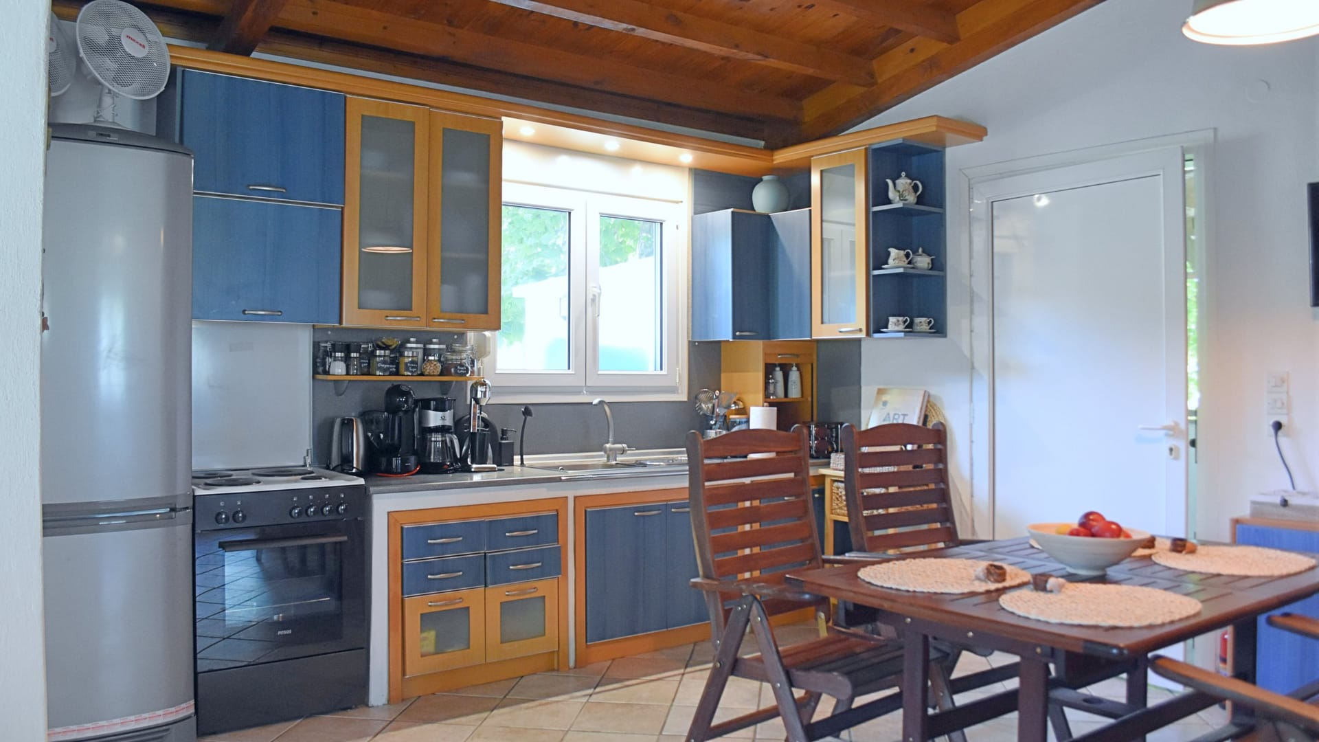 On the ground floor there is a spacious living room with a TV and a fully equipped kitchen.