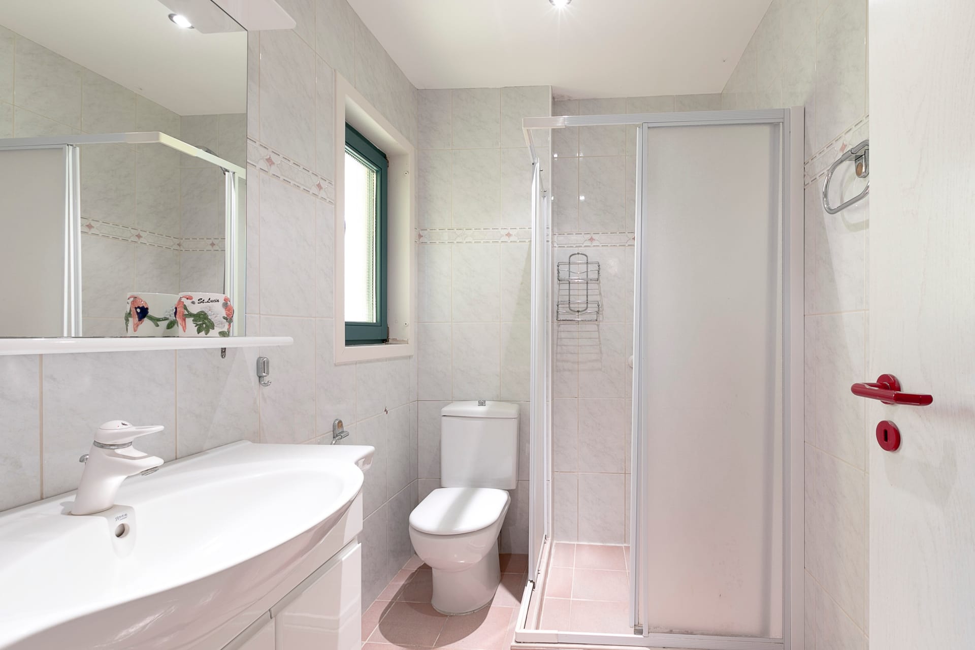 The master bedroom has a queen-size bed with en-suite bathroom with shower cabin. Bedroom 2 has 2 single beds and an extra bathroom with shower cabin is located next to it.